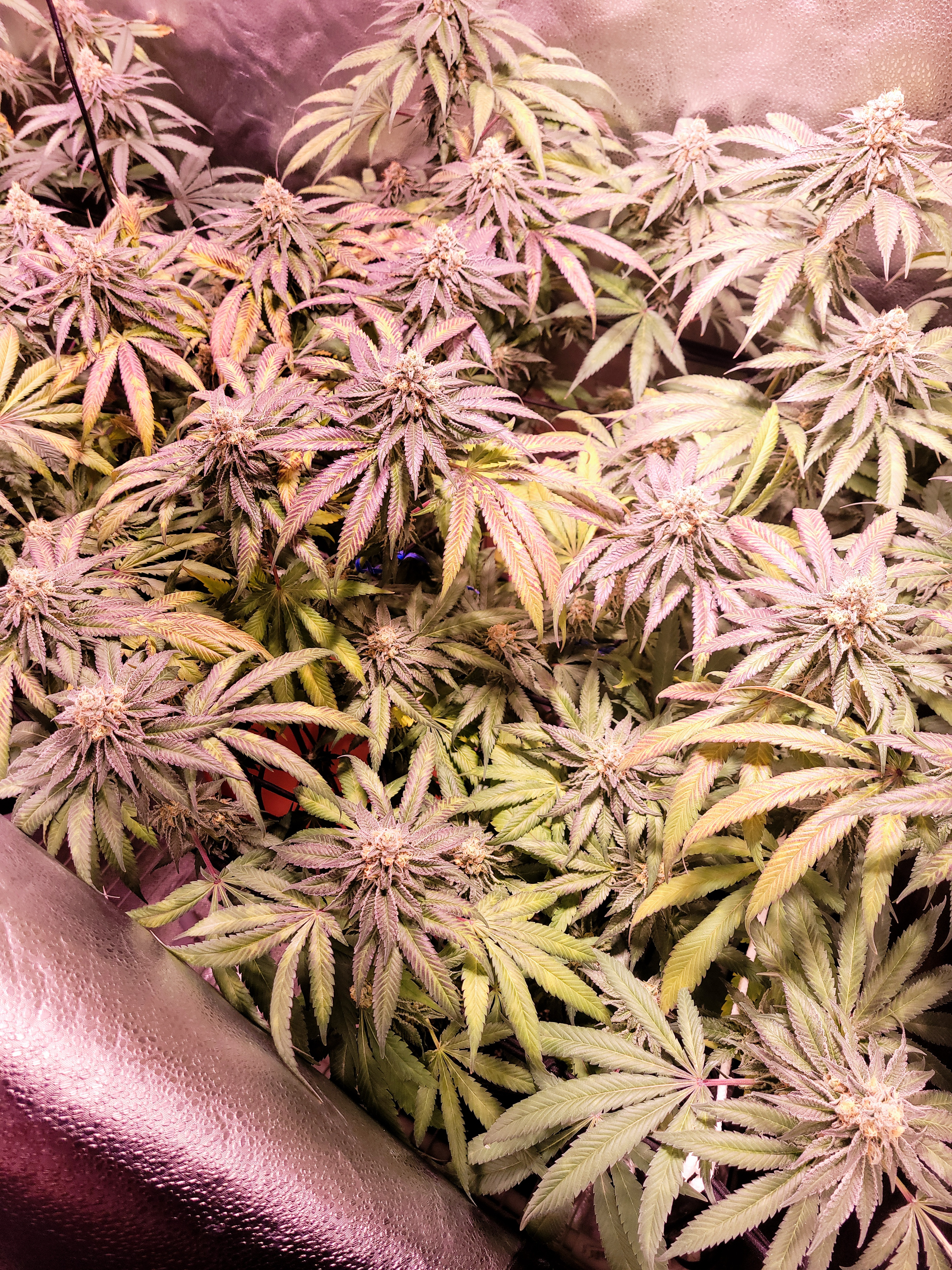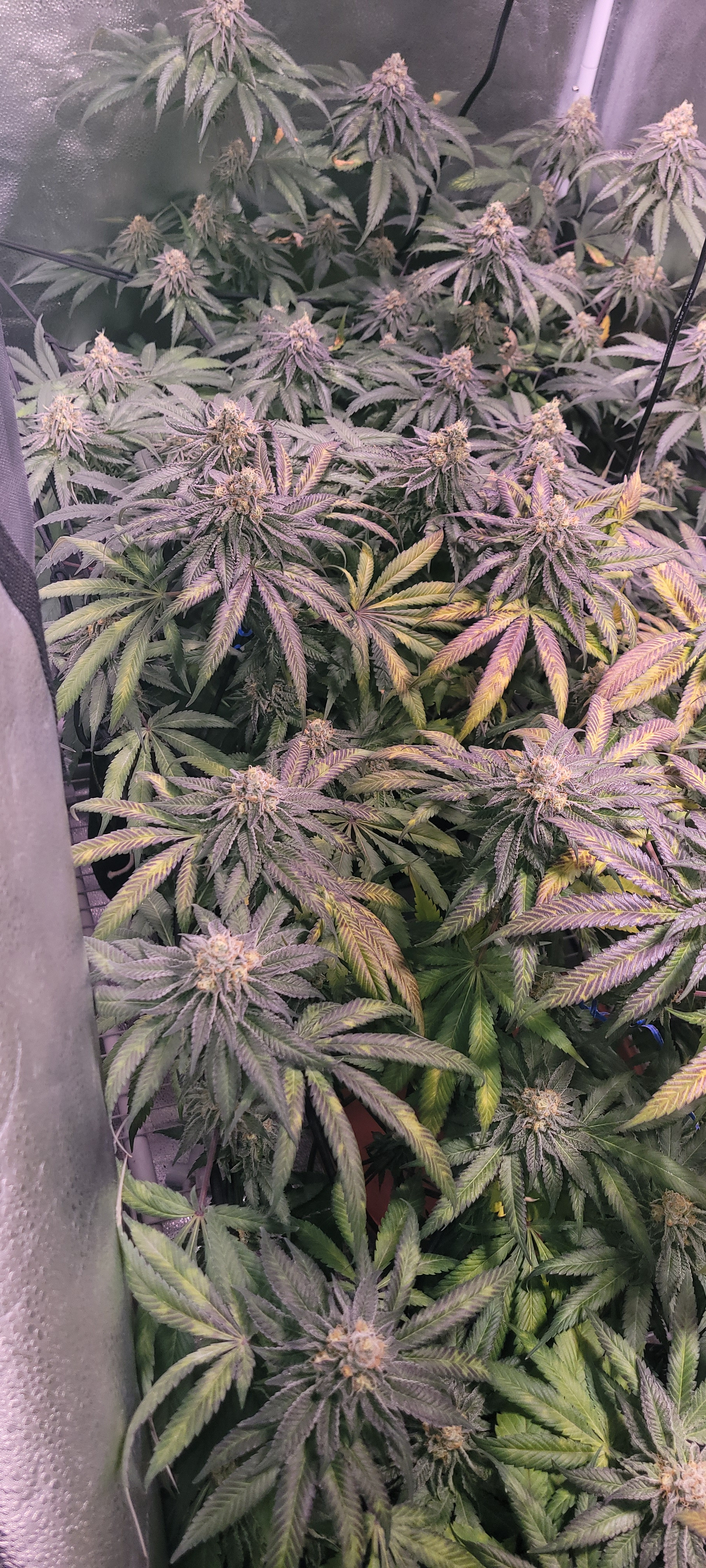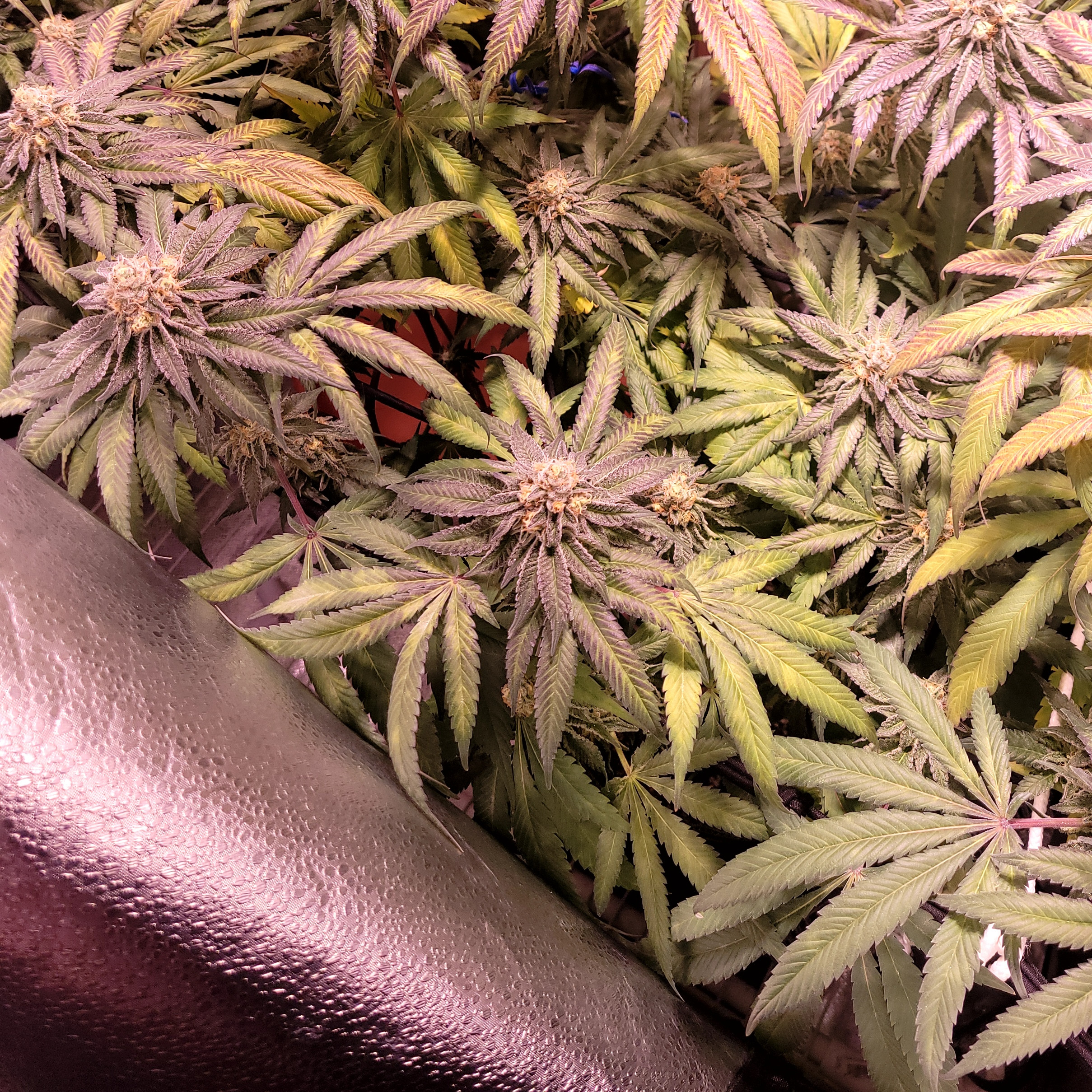hello My Friends, day 53 of flowering, and not nearly the yield I was hoping for. Although, the bud are small, the are very dense, and covered in trichomes.the last couple weeks i have been battling some type of Issue, and couldn't quite figure it out. Plants are 4 Master Kush clones. growing is soil. My goal was 1 gram per watt, but I'll be lucky to get .5 per watt. looking forward to the next grow, i have some Afgoo fem seeds!