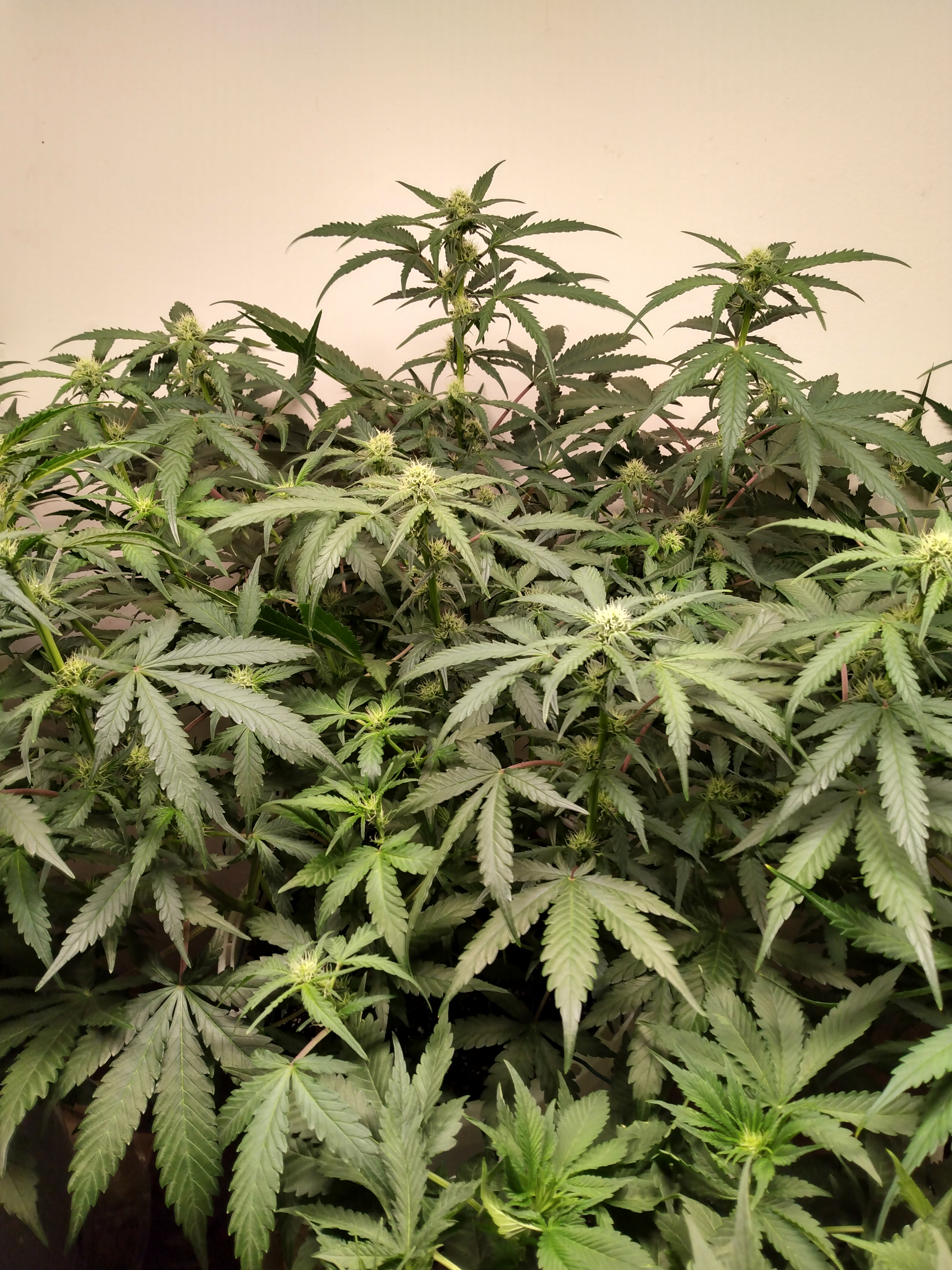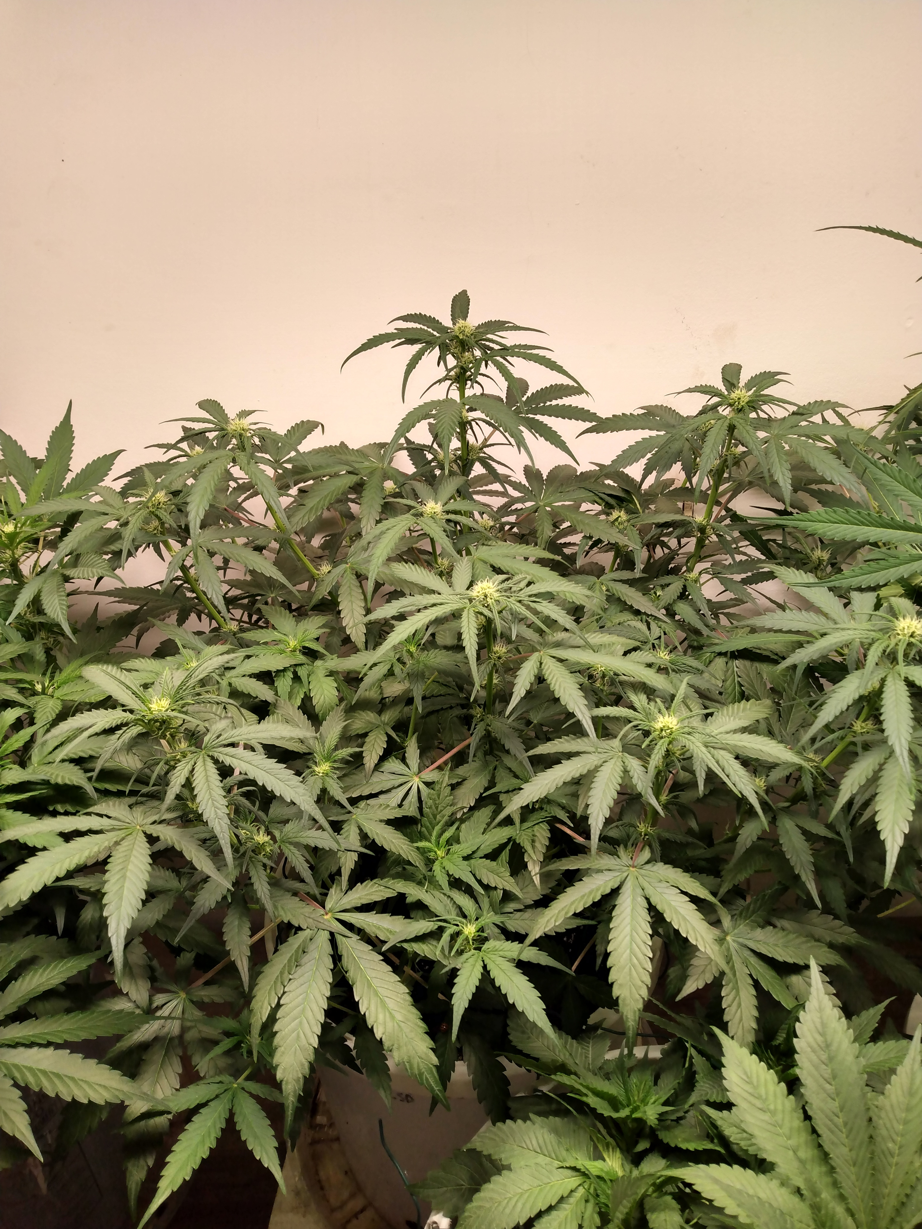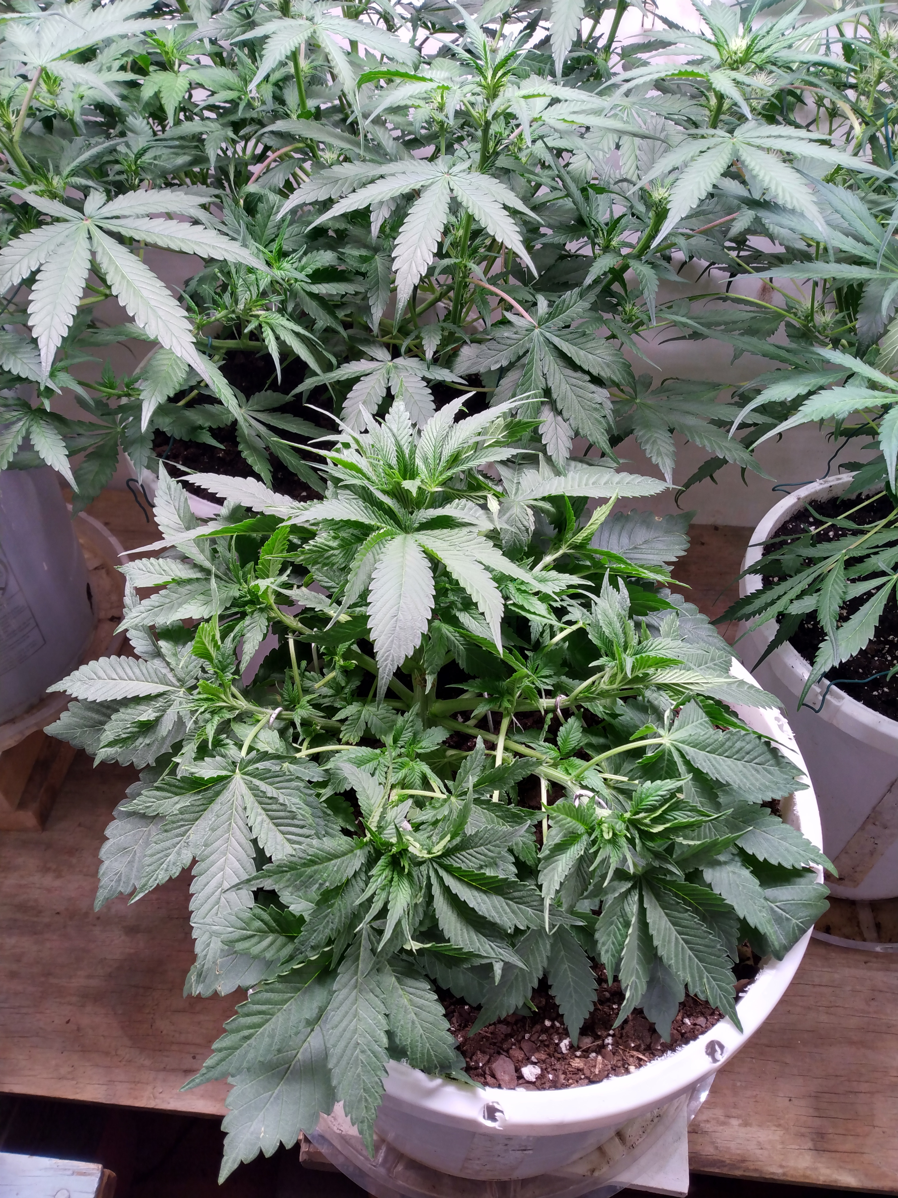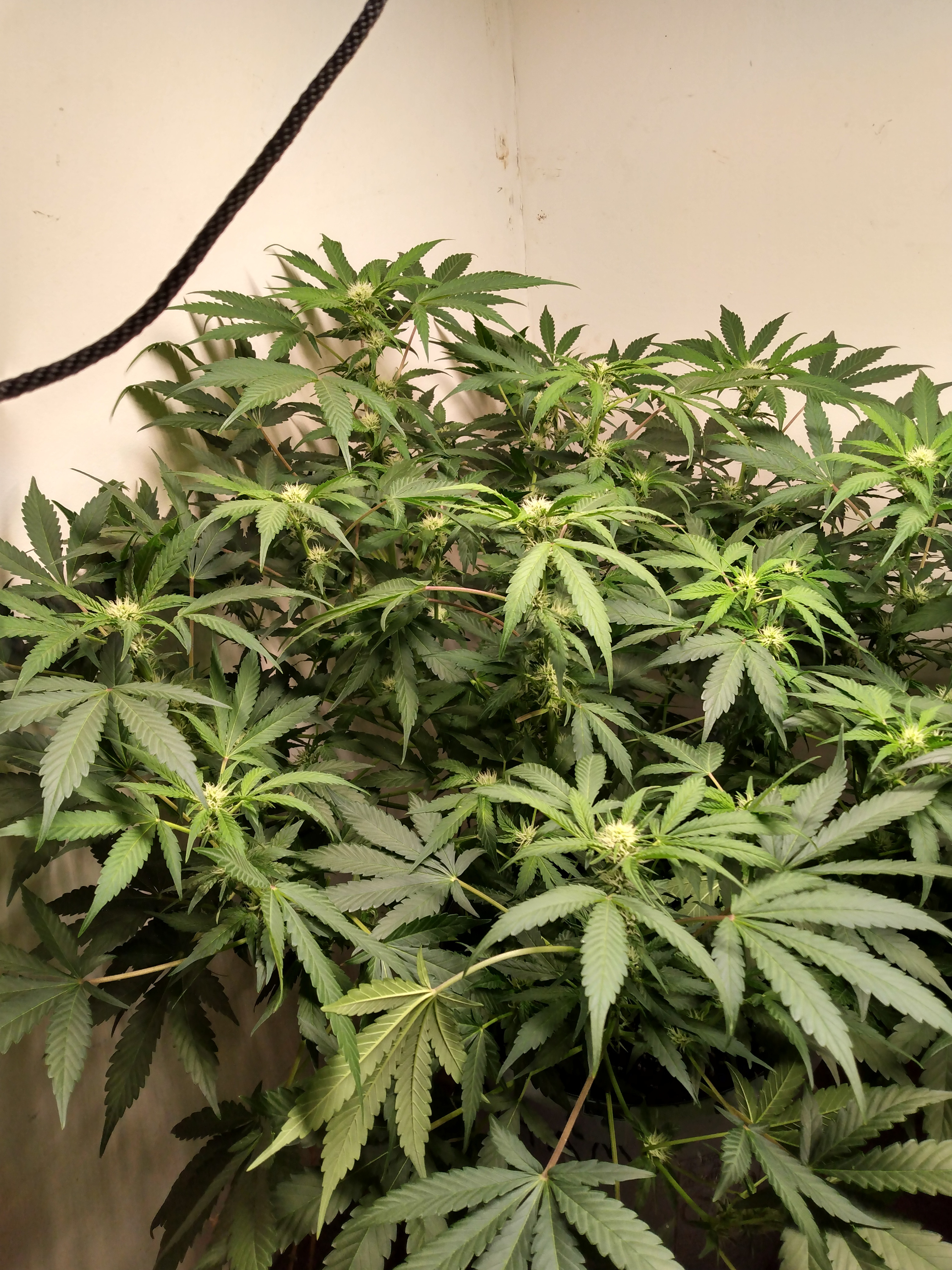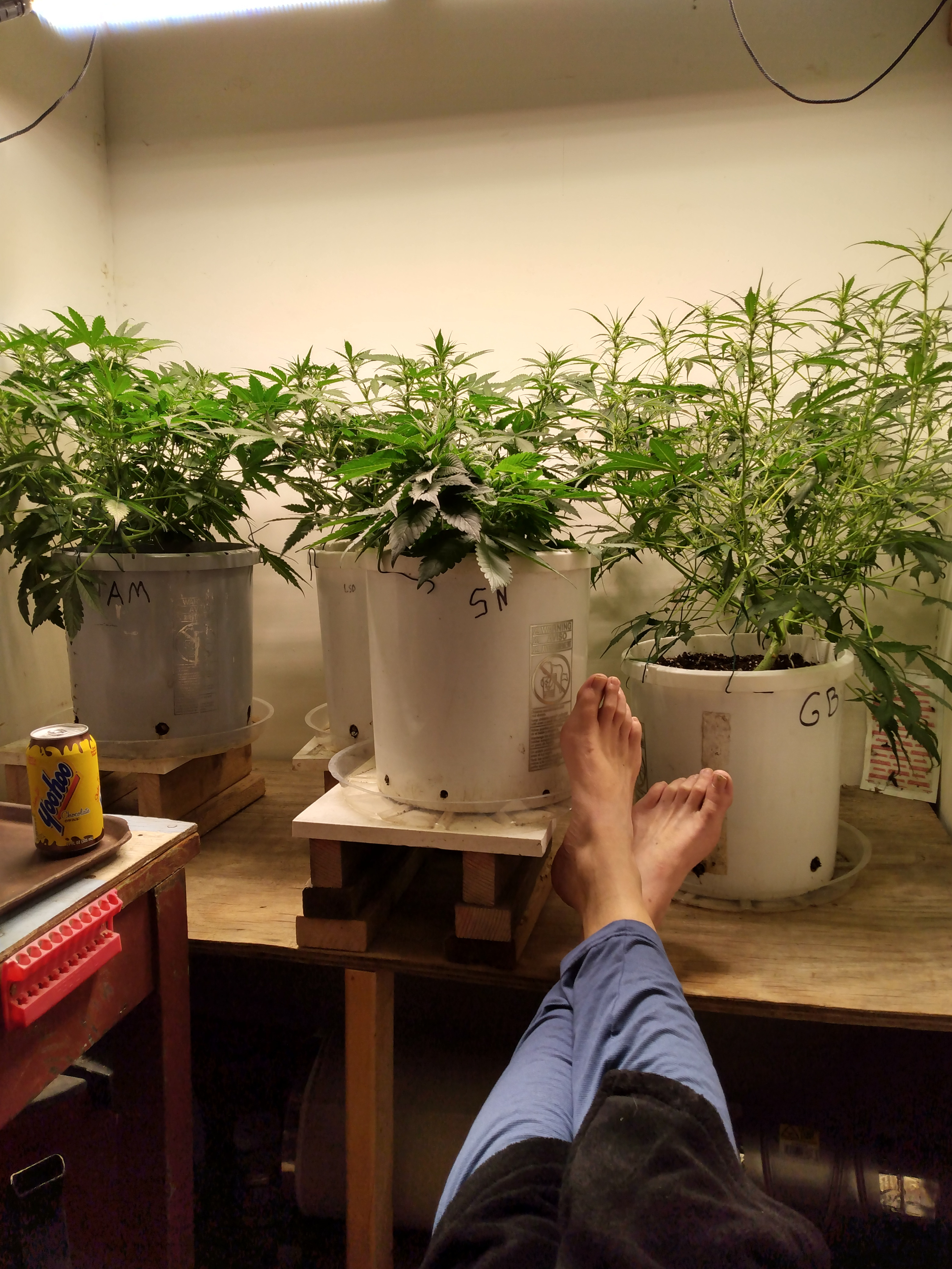 Happy Friday. We are well into stretch mode. Except strawberry nuggets. Accidentally snapped her stem about halfway up but again got lucky and it didn't snap completely. She's healing up fine. Squat little bitch got no flexibility. I like it. Have to say they look really happy. Done with lst. I like the footprint. Just some leaf tucking. Galaxy brain looks just like mango smile. Nice open structure. 4 assed monkey and blue dream have the same structure but 4am has the edge on size. Rooms starting to smell dank.
