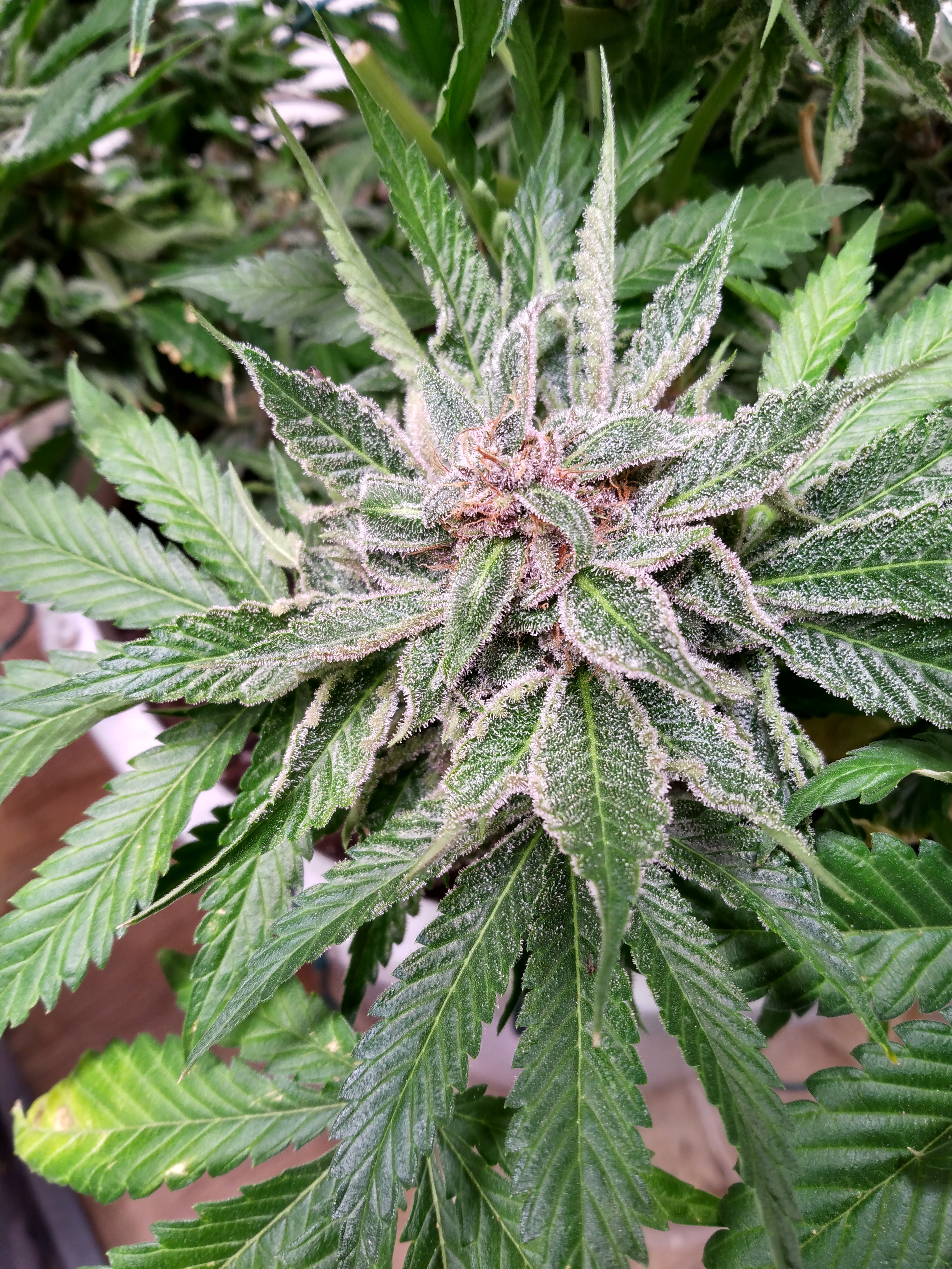 Happy Friday. Day 85ish for strawberry nuggets.she stopped drinking so it's chop time. Some pre chop pics. Cleaned her up for the big day. Very dense buds and a heavy strawberry scent with a gas background. Pic heavy cuz she's soo purdy. Can't wait to braapzai her this fall. Probably cut her Tomorrow.