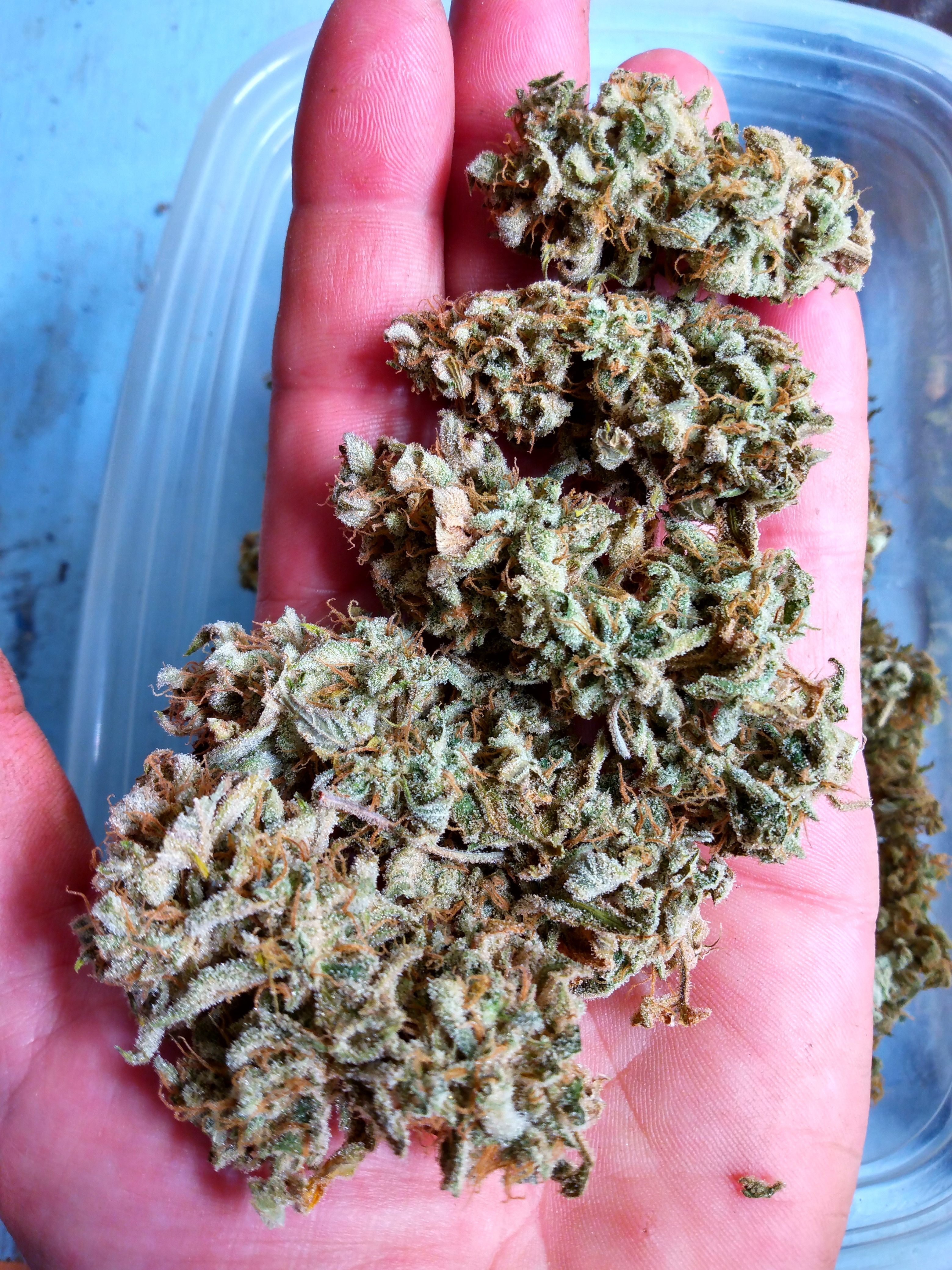 Got Galaxy brain all trimmed and starting the cure. This plant leaned heavily on the Zamaldelica side. Her nugs were torpedo shaped and loose but ohh soo sticky. She is still retaining the ripe mango smell. Test nug hit me right behind the eyes. Very energetic . Wanted to pound out a few laps on the mx track. Me likey. Give weight in a few days.