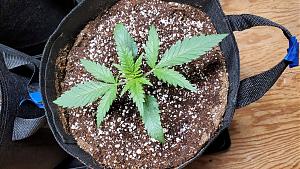 RP-1PS A gift of genetics from the universe, this plant is the progeny of one of the best plants I have enjoyed. I hope it lives up to the mother's reputation. Note how node #1 is 5 lobed instead of 3.