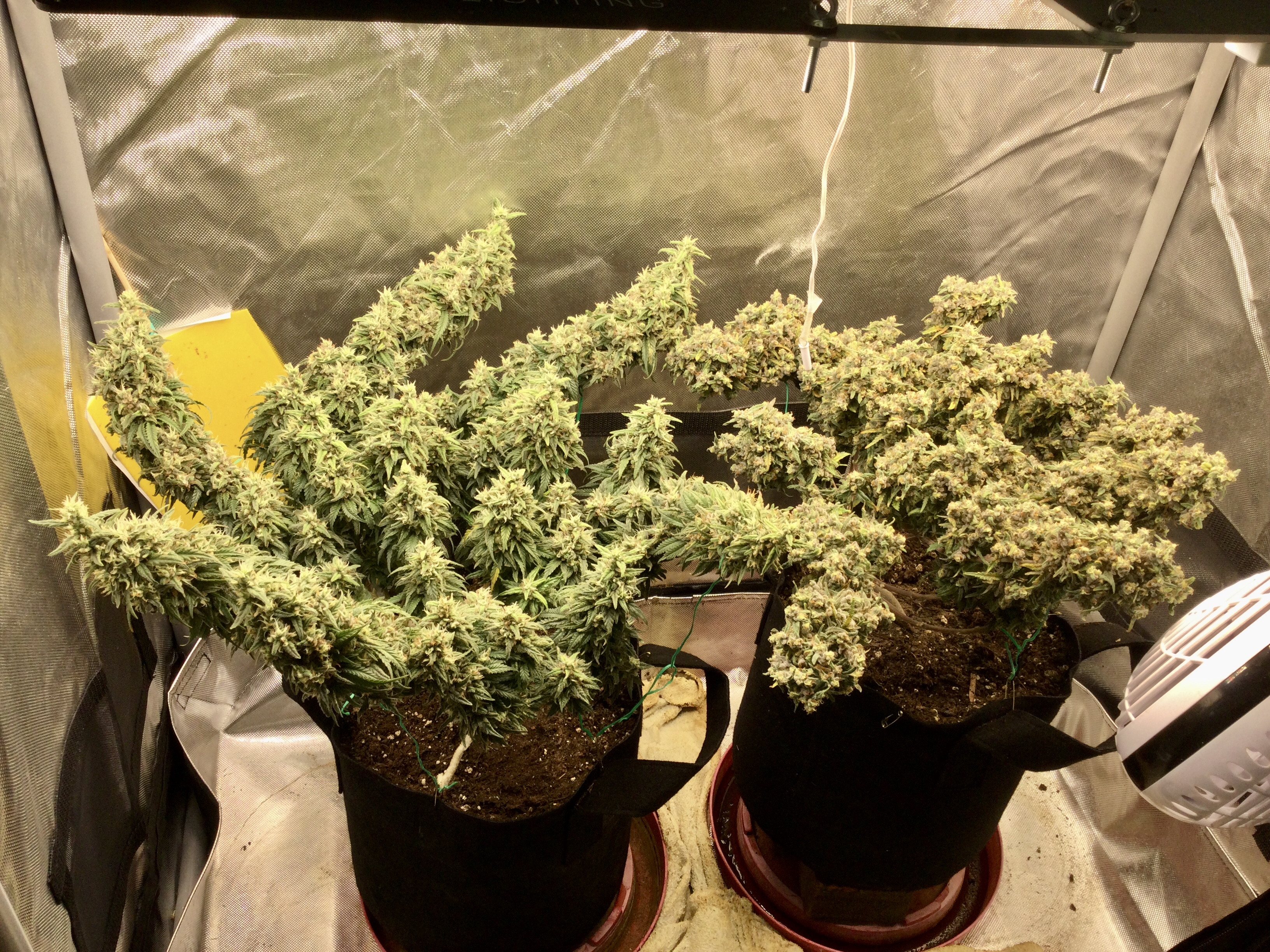 So, for each grow lately I’ve been doing experiments on couple of the plants… some basic stuff like extreme mainlining, trying to FIM the non-primary central stem (failure,) removing fan leaves underneath every other main to see if it really restricts growth, playing w bonsai tools, tying a knot in a main, etc… right now I have 2 quad-lined plants that I’m playing around with… because many of you may not want to take the time to read the entire below paragraph, here is the gist of it… I’m trying to “shade” the center shoots so that the outer ones receive full light and catch up on growth to that of the central shoots… I tried researching shading parts of a plant or restricting growth but found nothing… hoping someone has had experience here and/or could point me to some info on shading or stunting growth of a portion of a plant (or of a whole plant.)