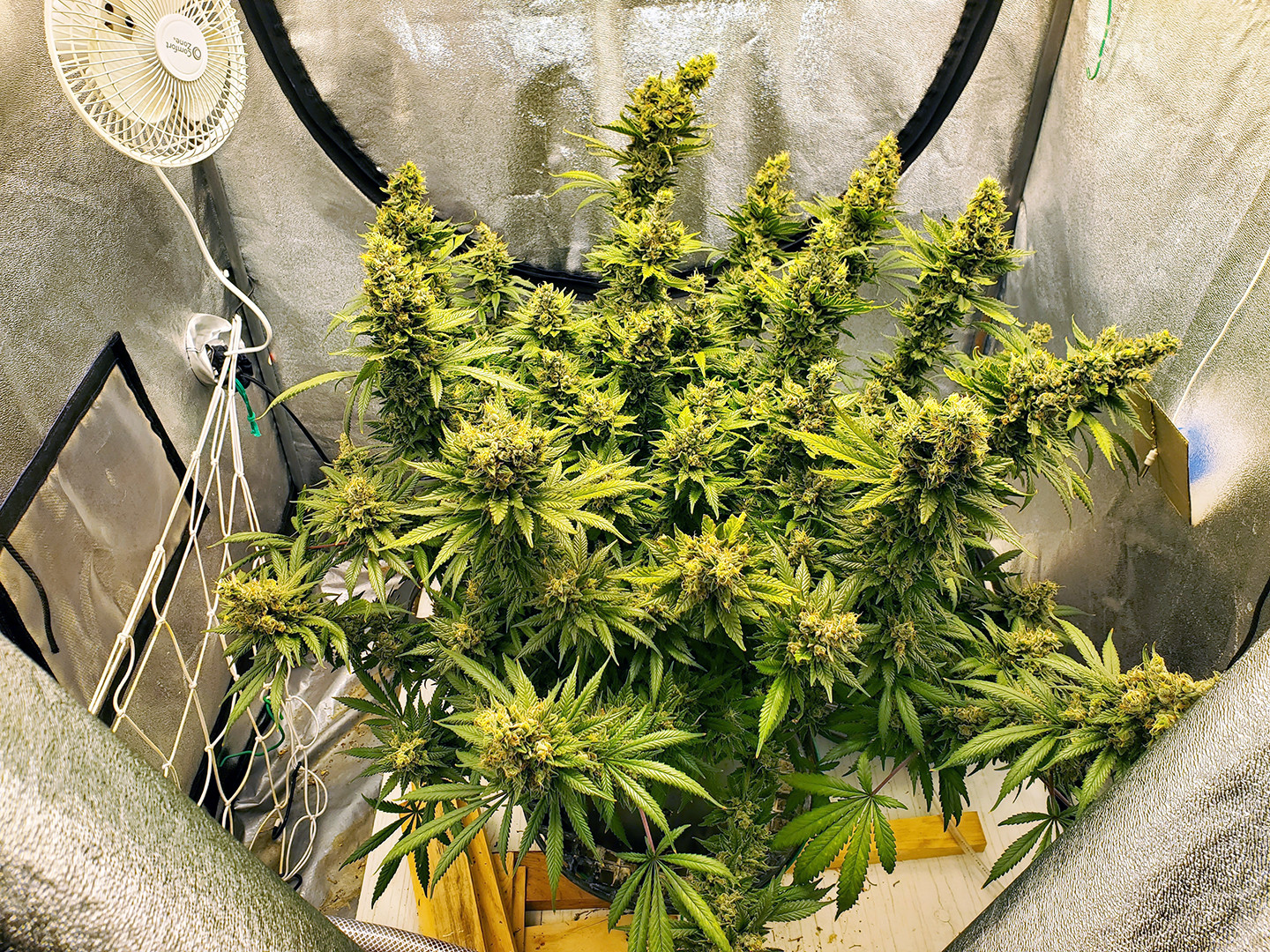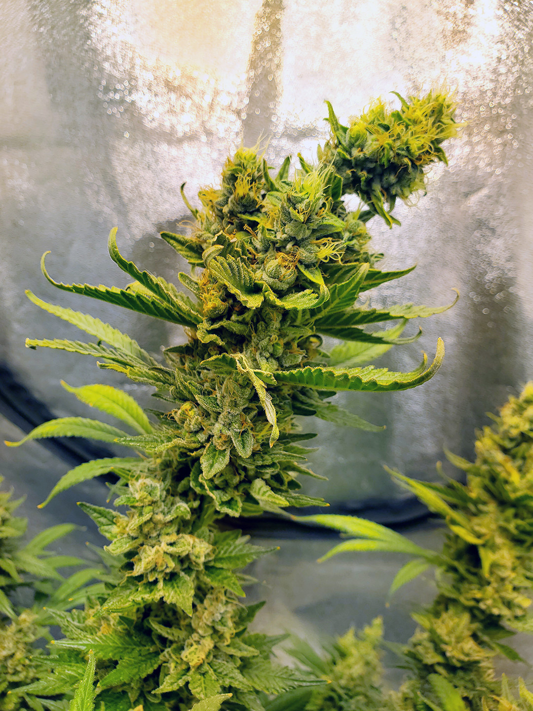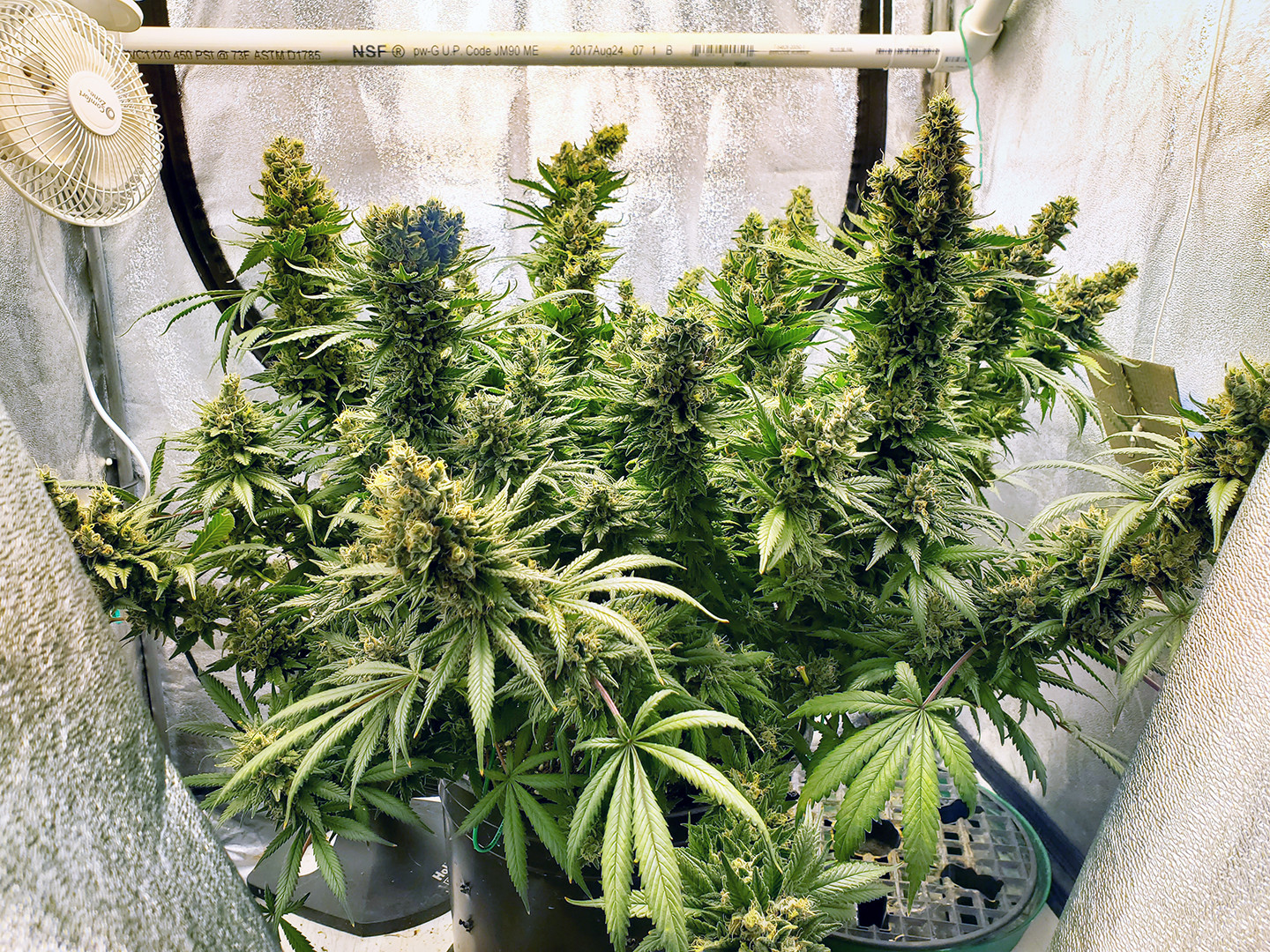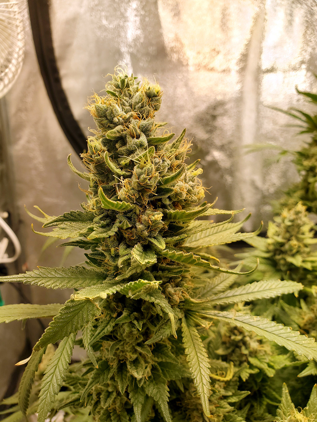 This is a Sour Strawberry Kush nearly ready. All trichs are cloudy with some amber on the small sugar leaves. The buds are not as full as I would have liked but I think that's because of all the mistakes? Not sure.