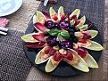 LOL. Garlic ( lotsa garlic) queezed in feta cheese with tomato...scooped into Belgian endive. Can't wait to make fan leaf spring rolls