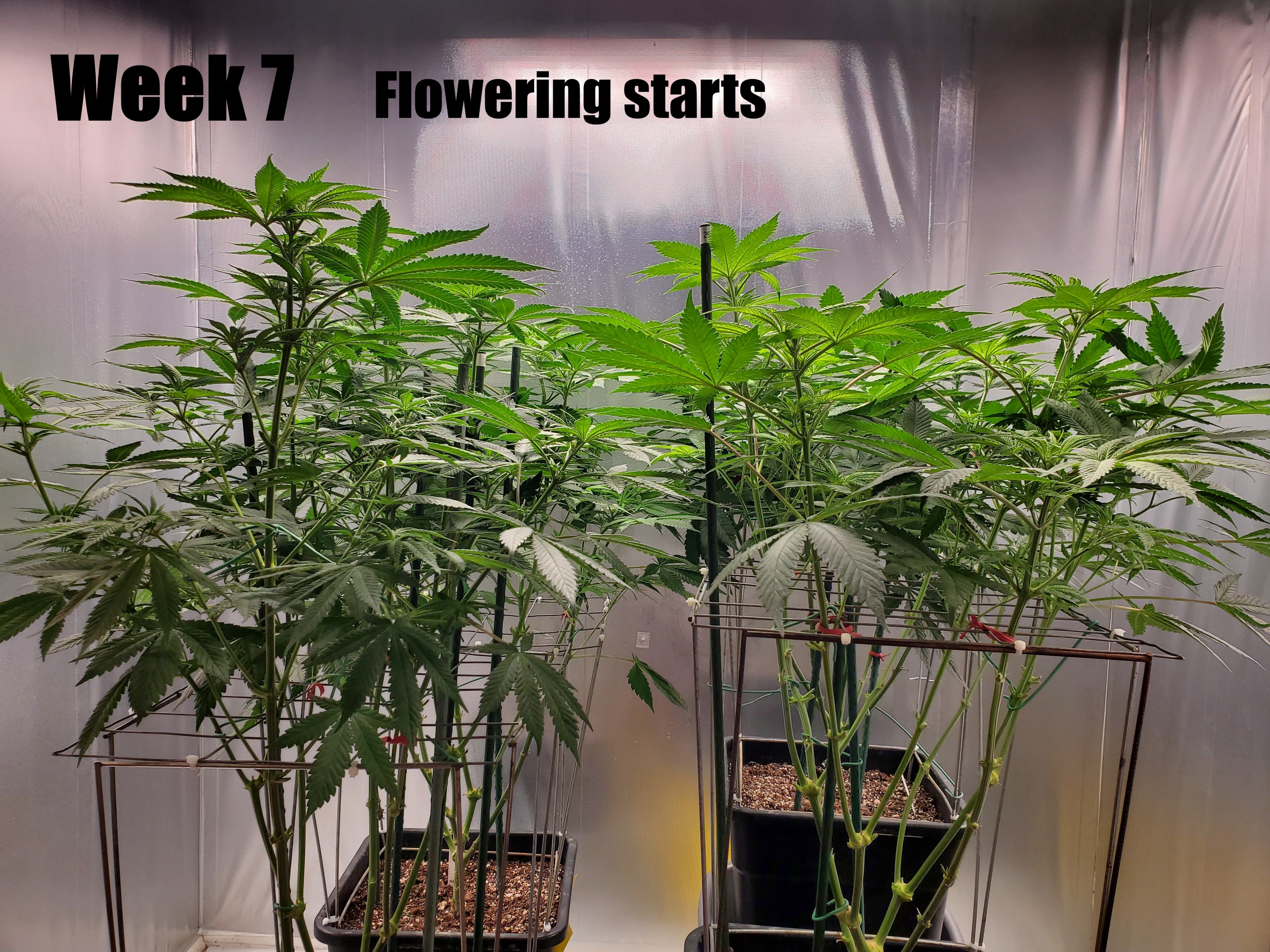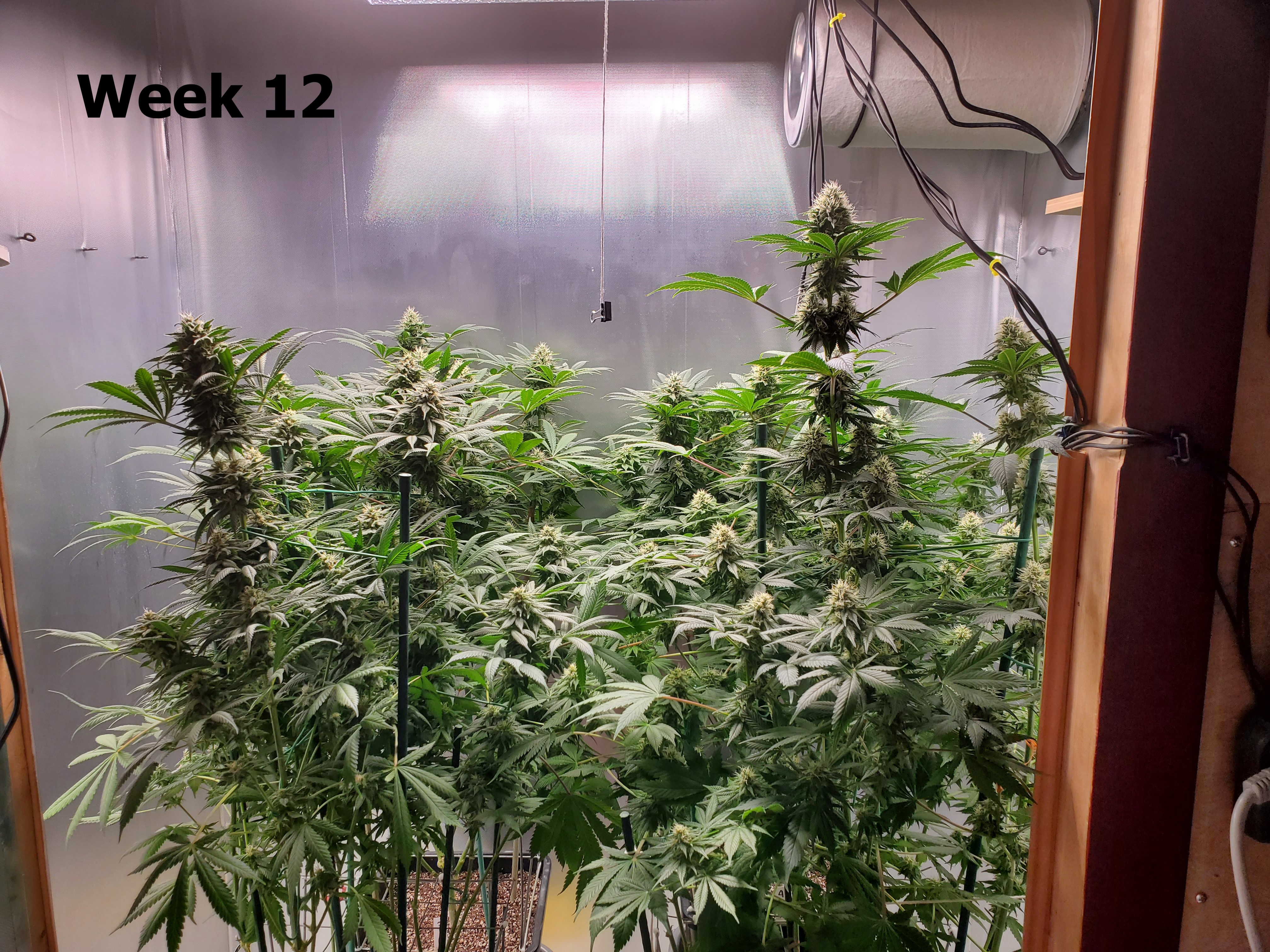 Manifold growing style with aluminum SCROG set 14 inches from base of plant.