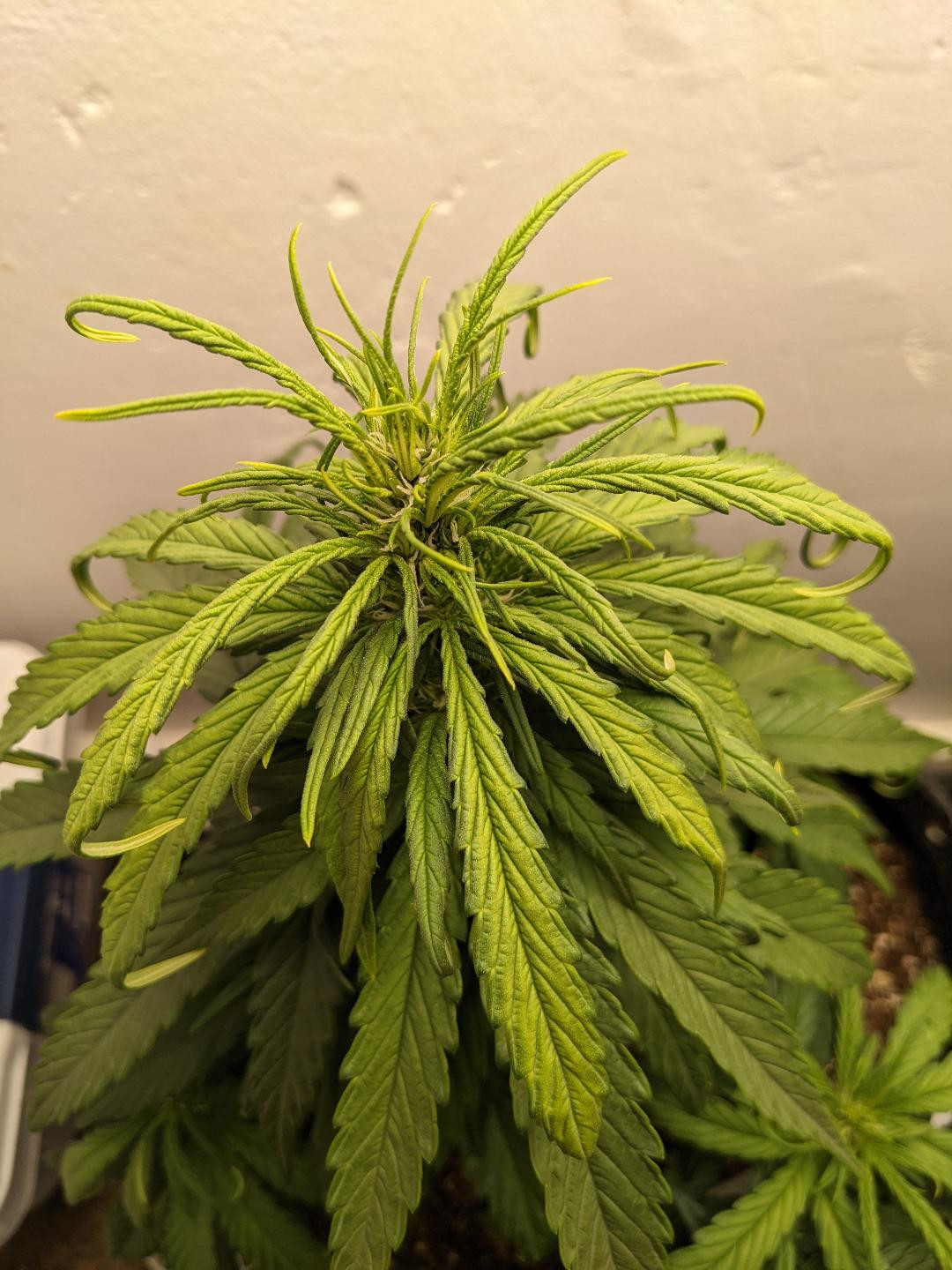 Hi everyone. This is one of my Blue Dream autos. Can any of you tell me/suggest what's possibly wrong here (leaf tips curling and leaves as a whole are lighter but have slightly darker veins) Is it a Cal Mag issue, nute burn, nitrogen toxicity, a watering issue or ALL of them ? :