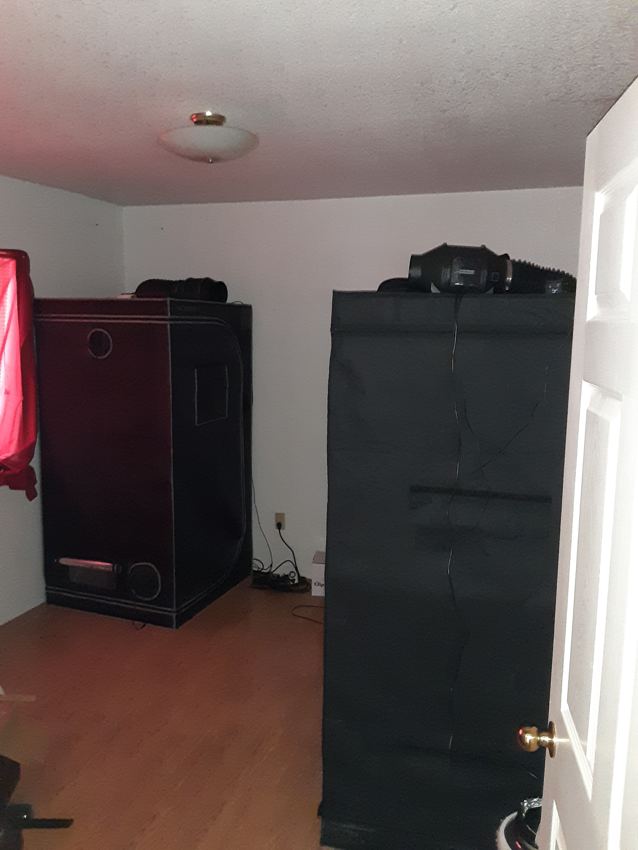 Switched from grow closet to grow tent. It's going to take time to get used to. Tent is a little warmer. That could be a plus or a minus depending on the weather. Folding doors on closet much easier to get into or out of. I'll have to get some shelves for the grow tent. Tent footprint is nice but still need trays or saucer. Cats cannot climb the closet doors but no problem with the grow tent. Now cats aren't allowed in the room without supervision.