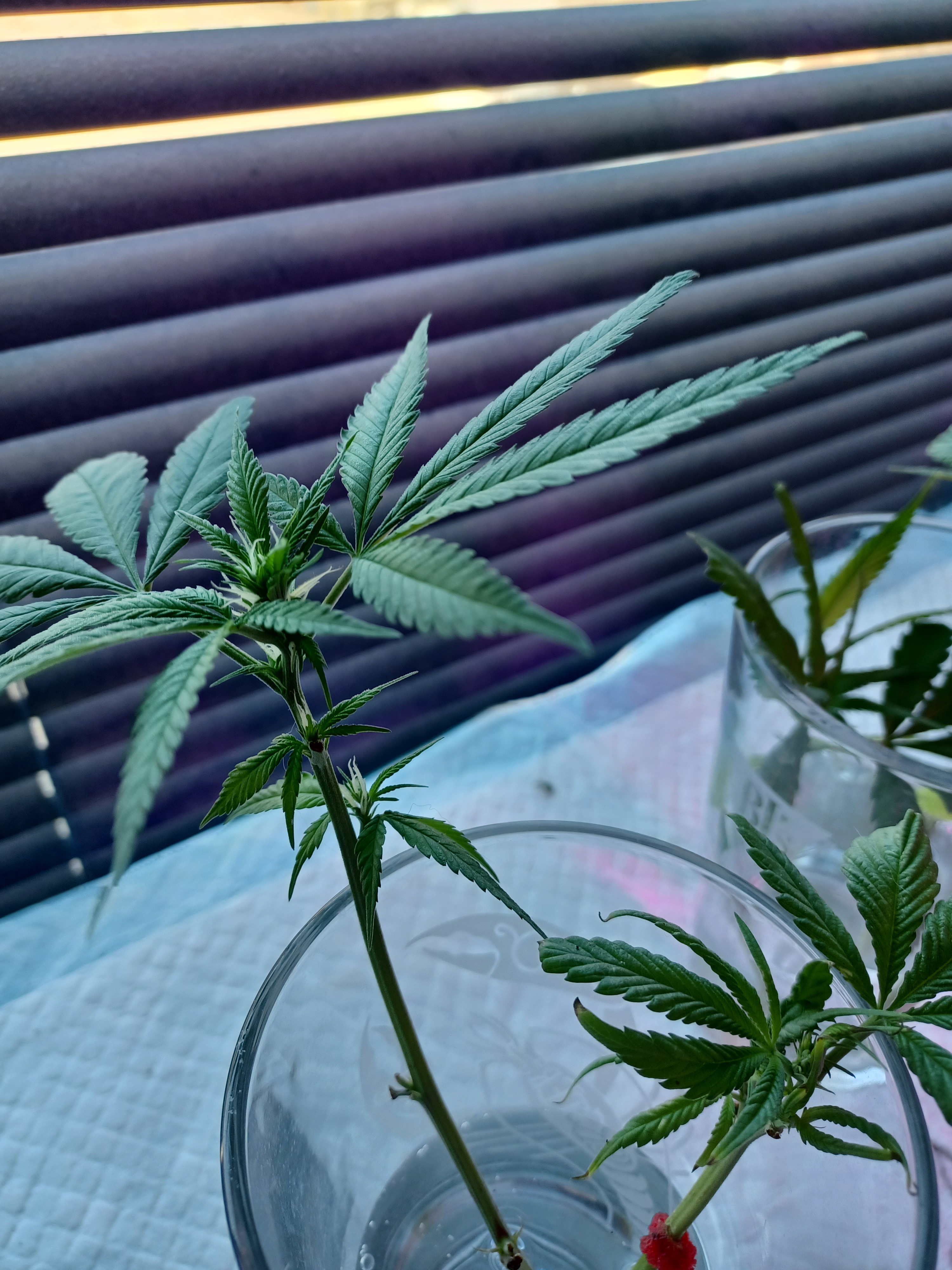 Plants dont just go to flower theres a transition period either the plant they were on or they've been deprived of atleast 14.5 hours of light. Transition takes around 2 weeks some less. Or as mentioned you pulled that off a auto. I'd open those blinds for direct light that partial light isn't doing anything. Getting cuttings to take root like that can take a very long time considering other methods. That's how I root potato slips and other cuttings in the past.