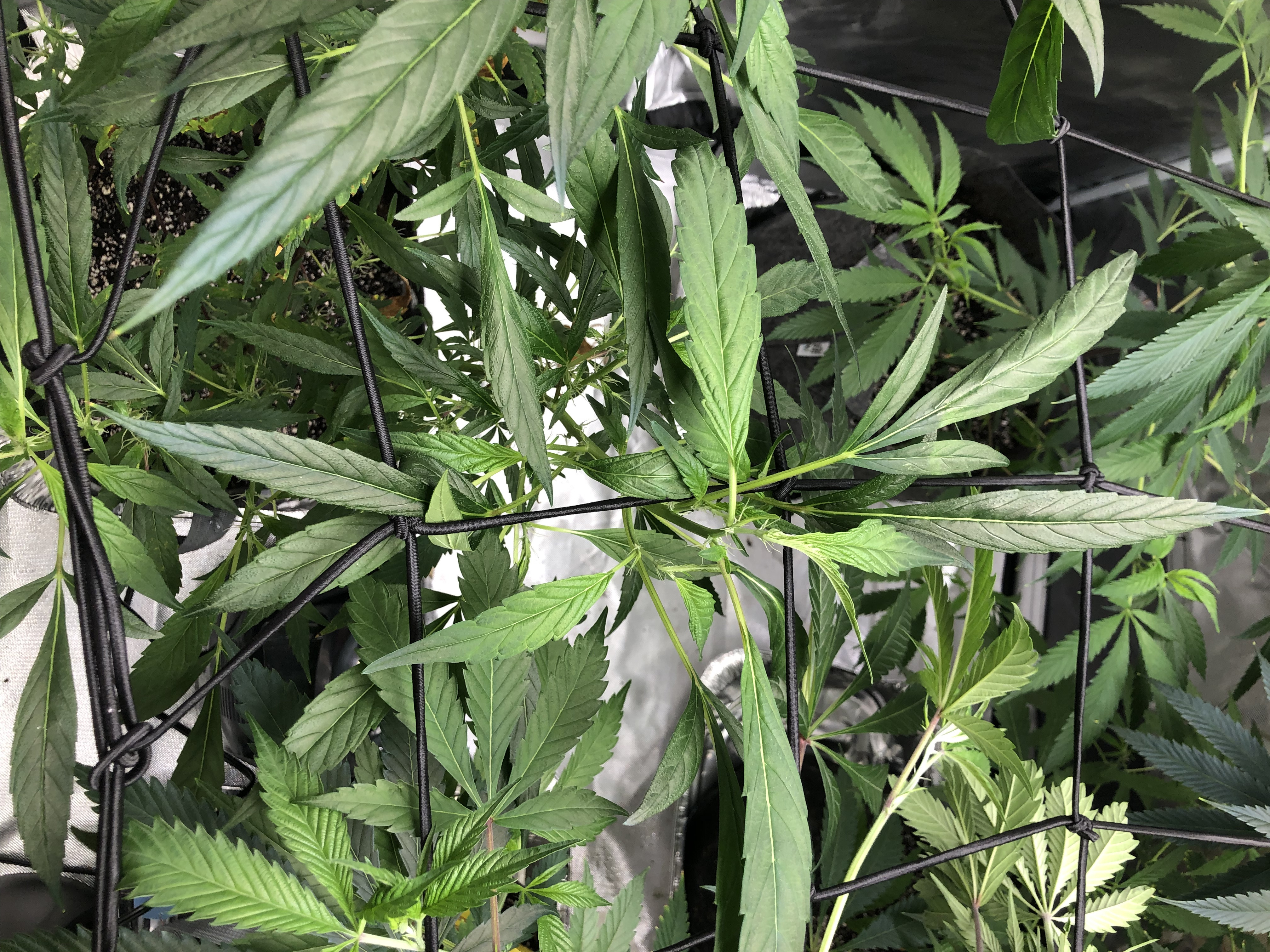 New grower few grows in still getting by the hang of it . I’m in soil fox farm nutes and soil bloom plus xp4000 led .I have temp and humidity controls and ro water with cal mag . I have one clone from cookies and it’s always had a weird structure but a lot of bud sites so I kept her . I’m about to flip to flower but this one never got layer of 4 or 5 leaves all the way up . Is this a bad thing ? Should I remove from others ? Or is this just mutation . She’s green looking good in temrelis but looks so weird . Almost like that strain freak show , also some leaves look like they have bumps but not bugs checked all over no damage either . Please let me know if came across this
