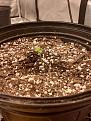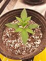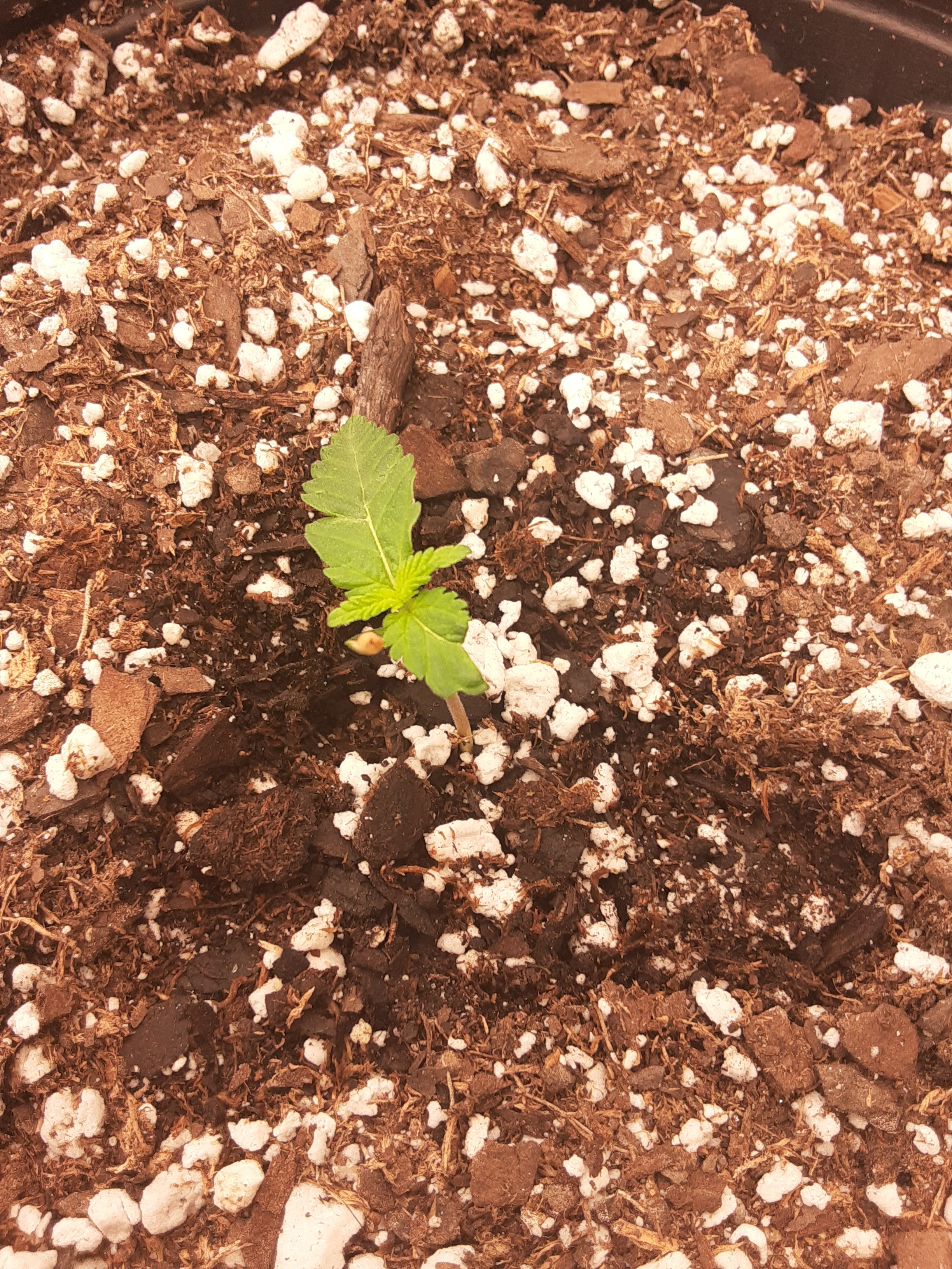 seed planted 23june watered using ph;d water with tiny amount of nutrents. lights LEDs app 12 ins above plant. tips going broen and curling. botton leaf been like that since started growing, othe leaves started fine now this in last couple of days.look at leaf problem pages but no idea which one this is. ty in advance