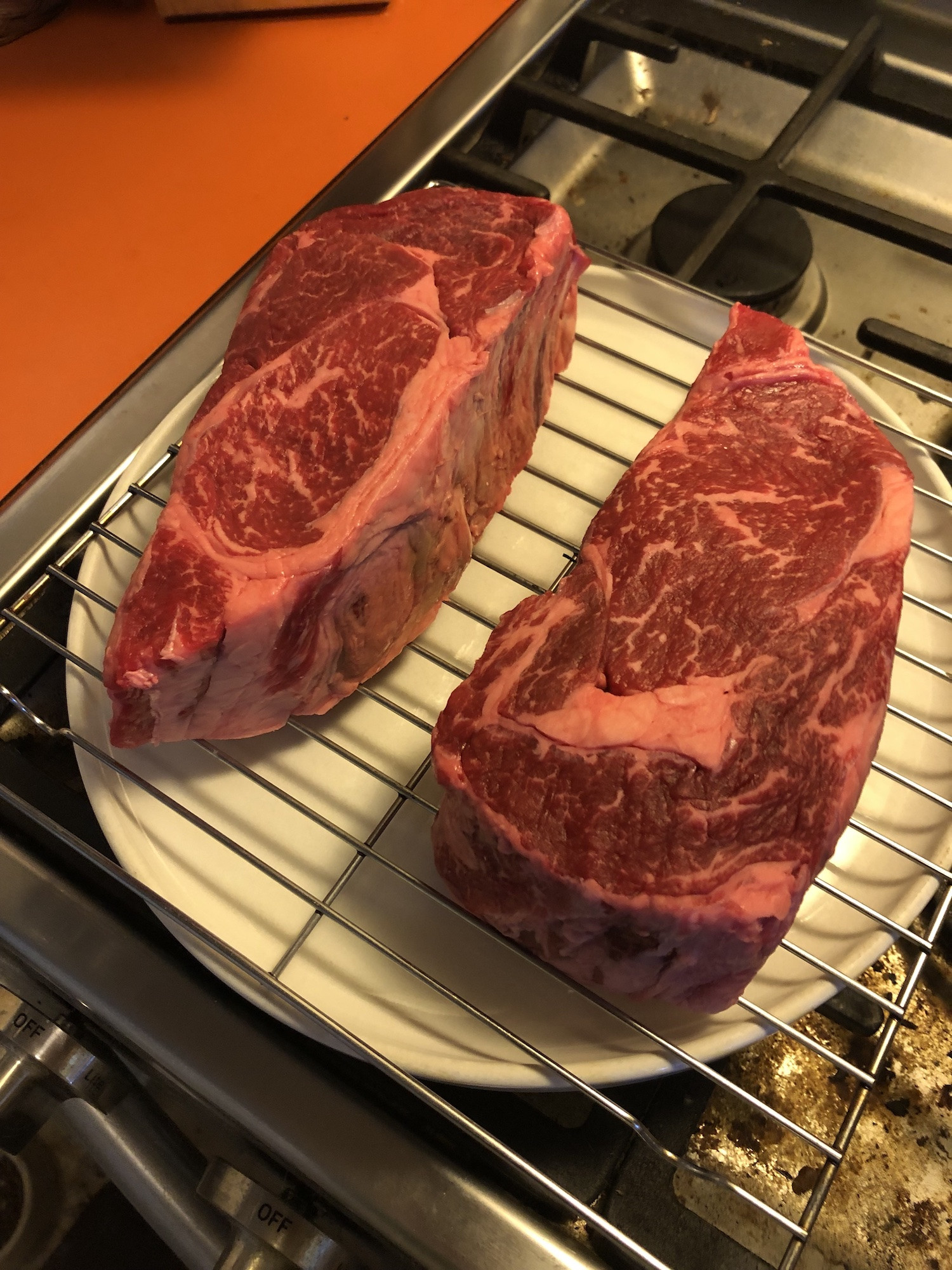 You gotta have some time for this process, but it's worth it. This will help seal up the steak and retain its goodness. Then finish in a pan to sear and get them to 130-135°(if medium rare is your thing, like myself).