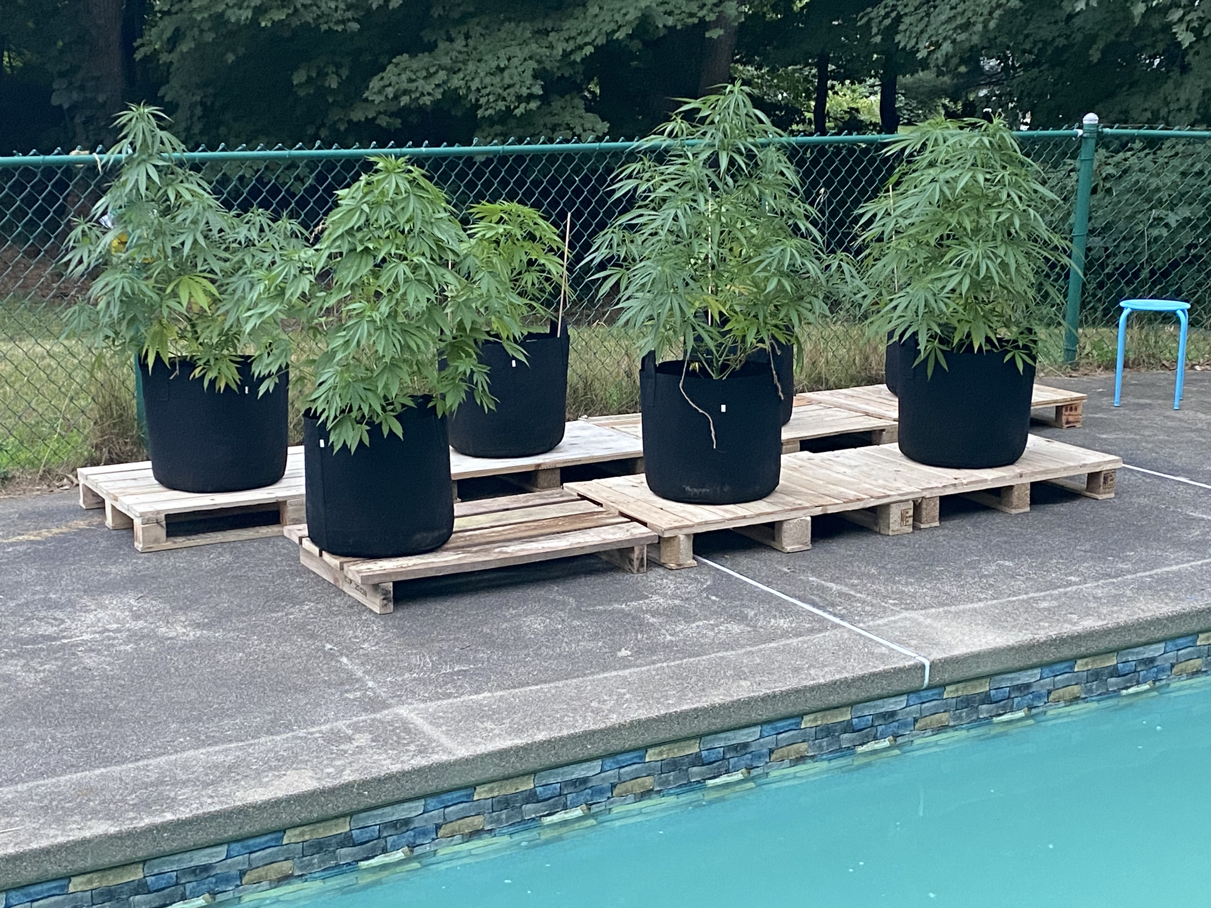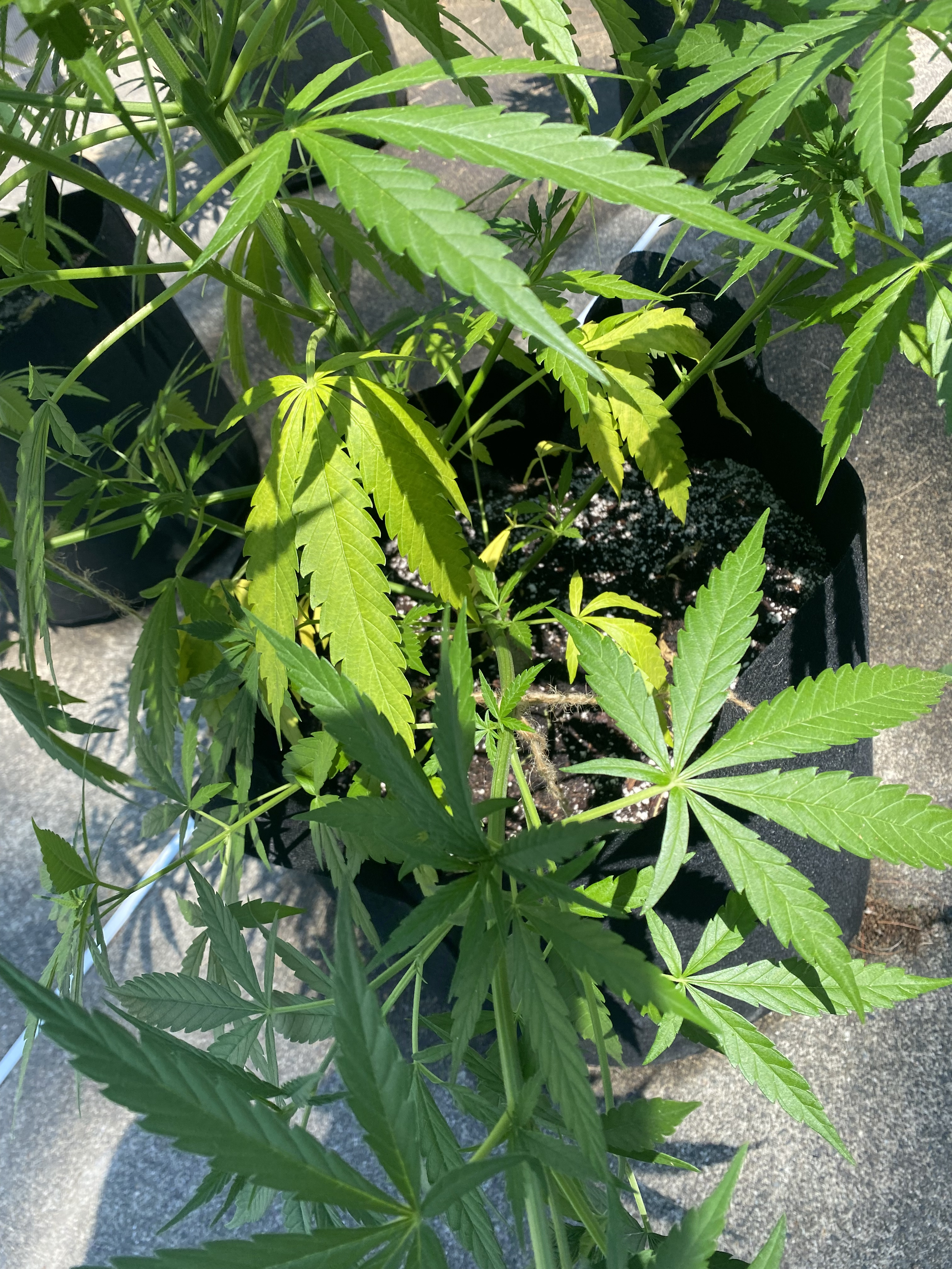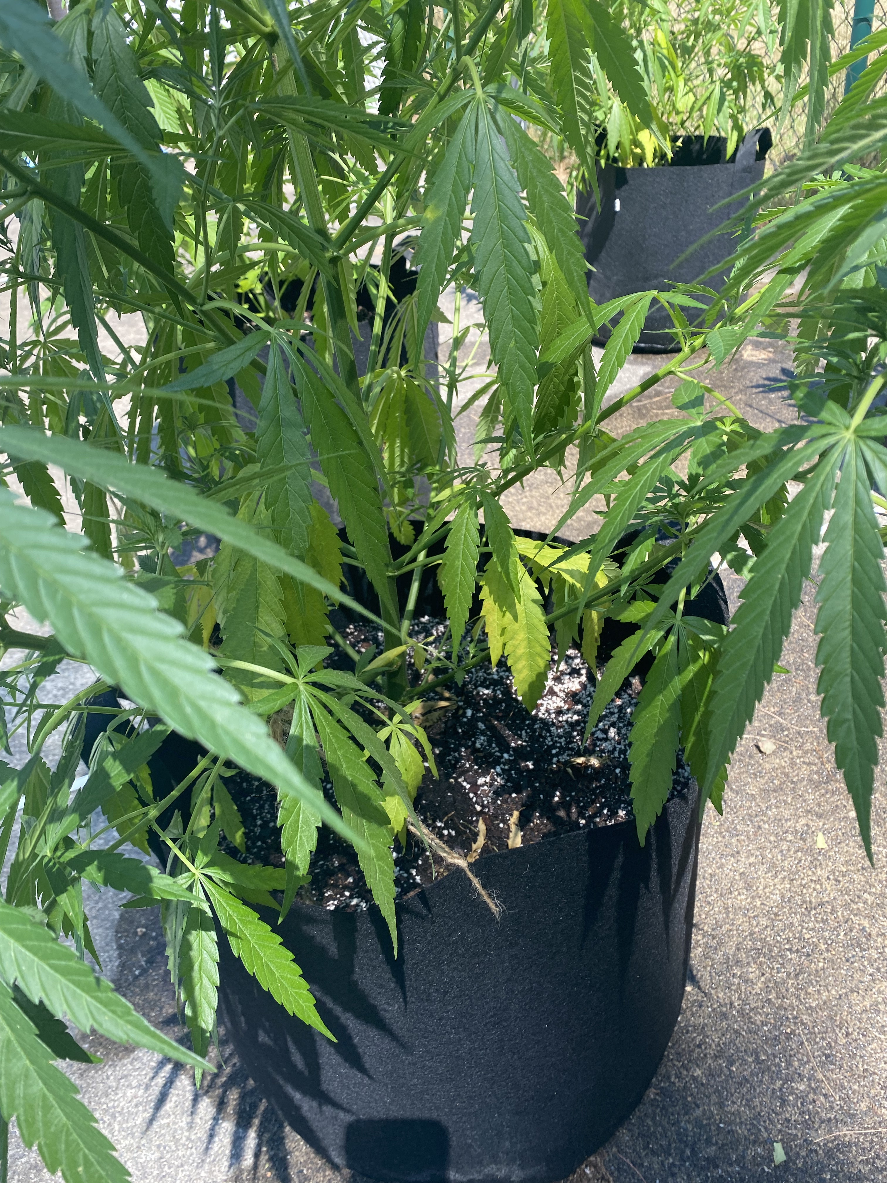 If they are sitting on cement and it's 100f i'd raise them up off the ground. Half of my containers are sitting above soil and cement. I put 4x4 blocks under them or a milk crate something like that. You could be cooking da roots. I'm watering 2xday because it's dehydrating the plants an pots i got abit of wind all the time too.Smoke Ganja create Peace Respect Nature don't trash the Planet
