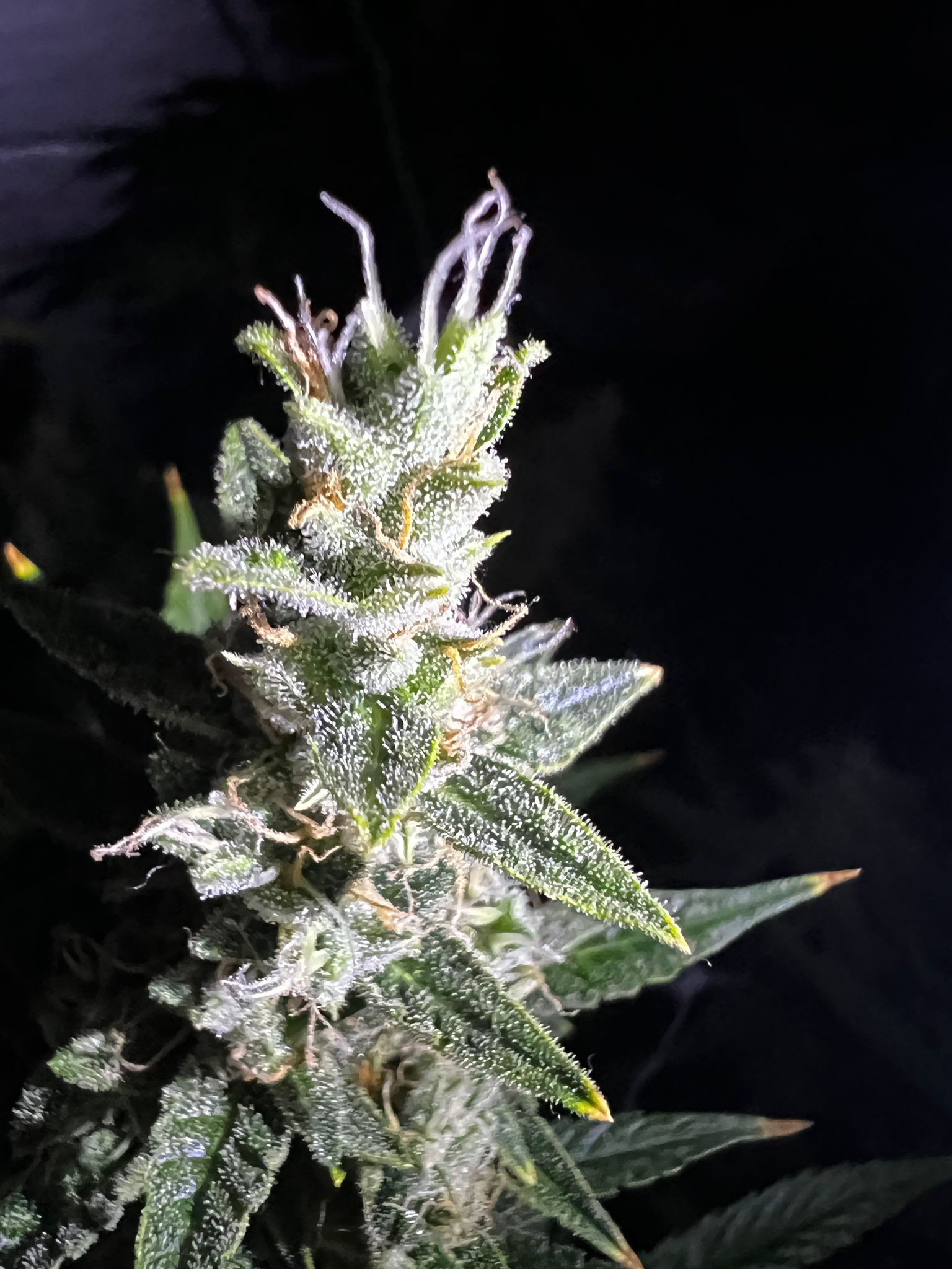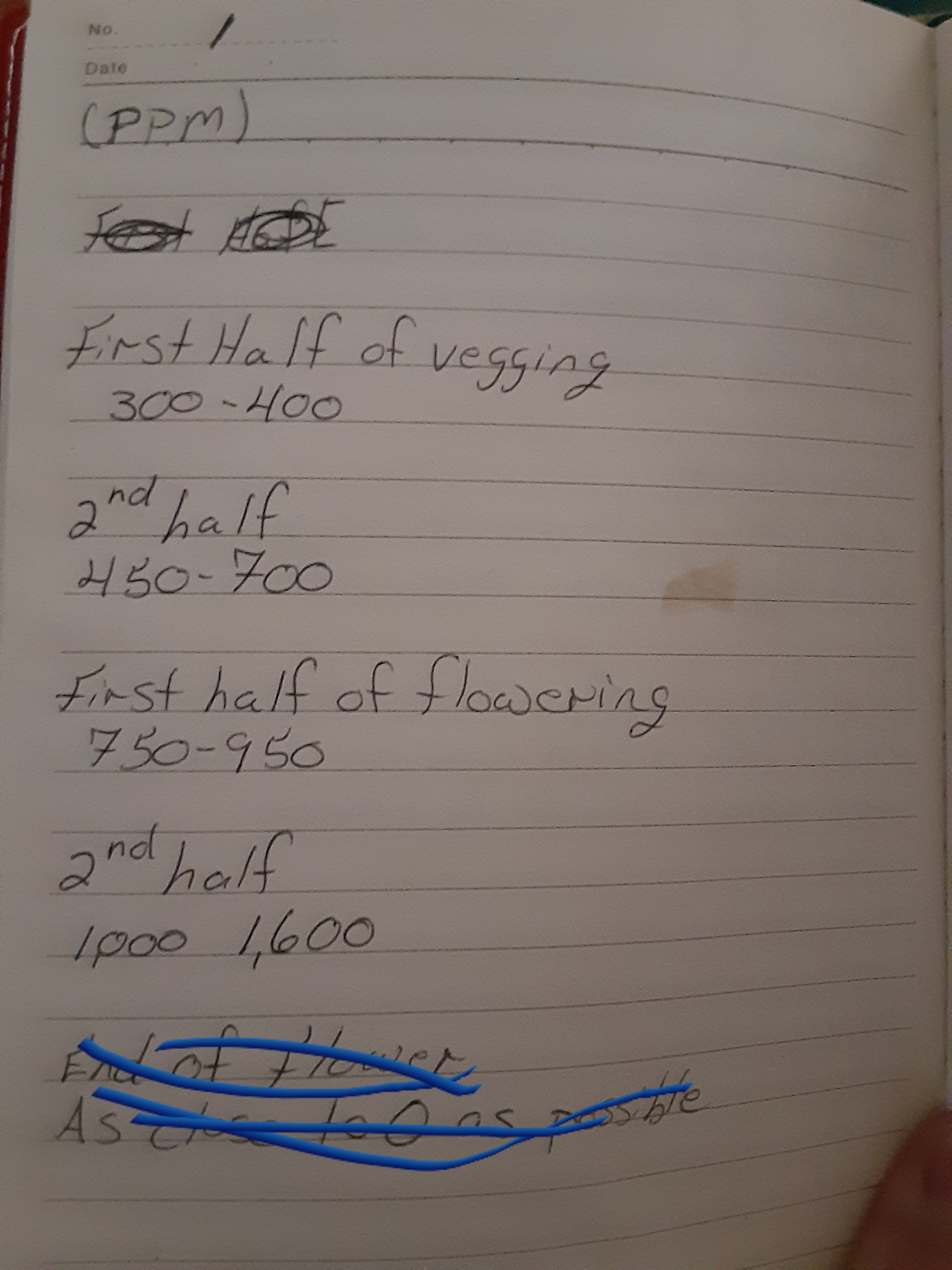 Showing signs of nutrient burn, where you feeding by ppms or suggested serving on bottle at 1/4, half amounts? From that pic, looks like another couple to few weeks. Stop feeding giving plain water is just as good as flushing. Flushing compacts medium, chokes roots, flushes oxygen out of medium smothering roots. So close to harvest none of that probably matters just something I and countless other growers prefer not to do. Feeding by ppms gives plants what they need no more no less. Getting run off readings on fresh water days will give you an idea of how much or little the food you gave they ate. Once a understanding of plants appearance is achieved the runoff readings are irrelevant you can feed ppms by plants size, growth rate, and appearance. Personally when I used this method I would only give ppms needed to get me back to a good ppm level. Like if I gave 600 ppms fresh water reading was 550ppms plant ate 50ppms over 2 days by the next watering I'd assume they ate 100ppms if I'm watering every other day. I'd only give that 100ppms not another 600ppm every feeding. Getting the run off reading will allow you to see if nutrients are stacking up allowing you to only give plain water until ppm levels dropLast edited by GroBuddy; 07-24-2022, 04:19 PM.
