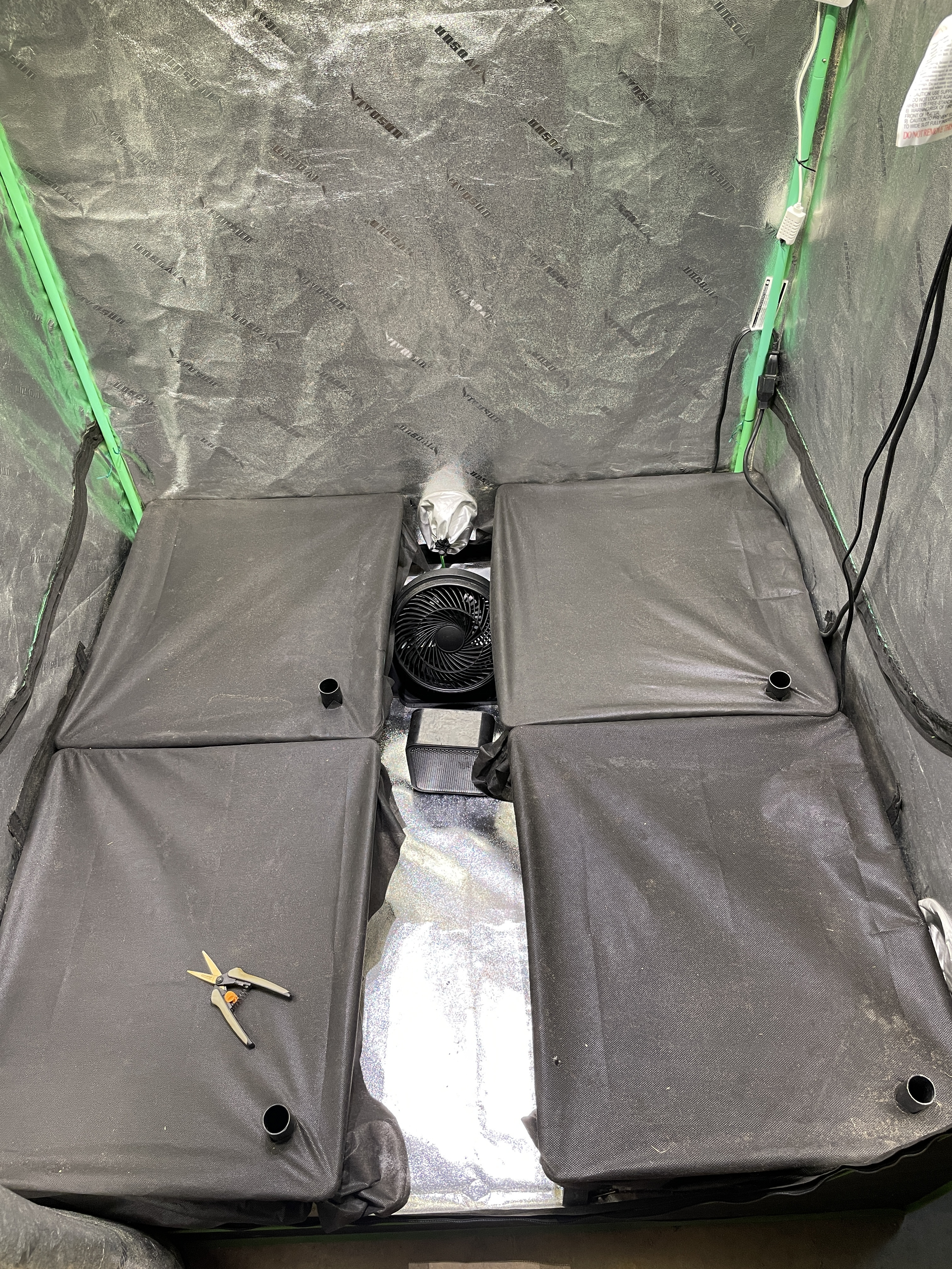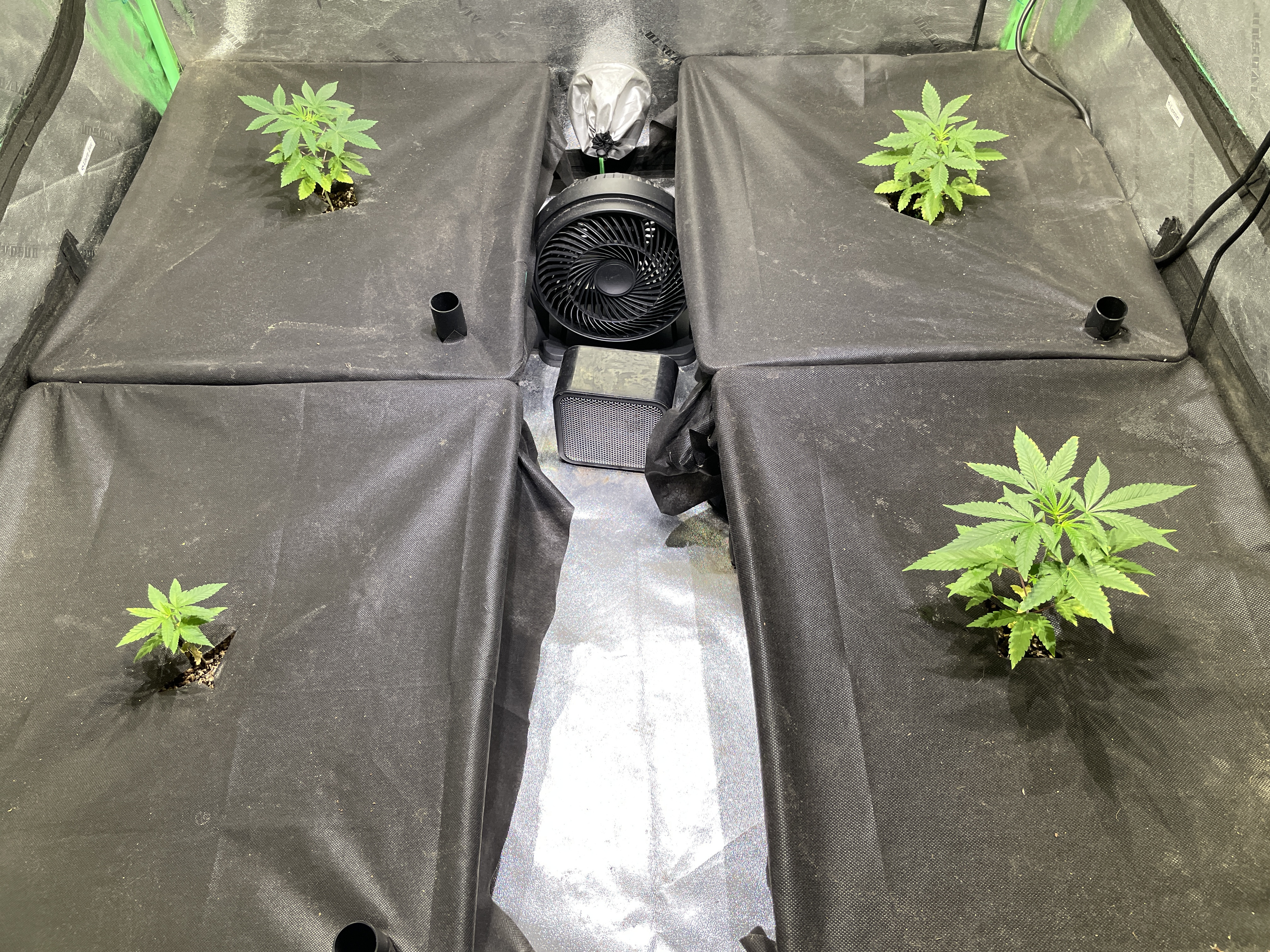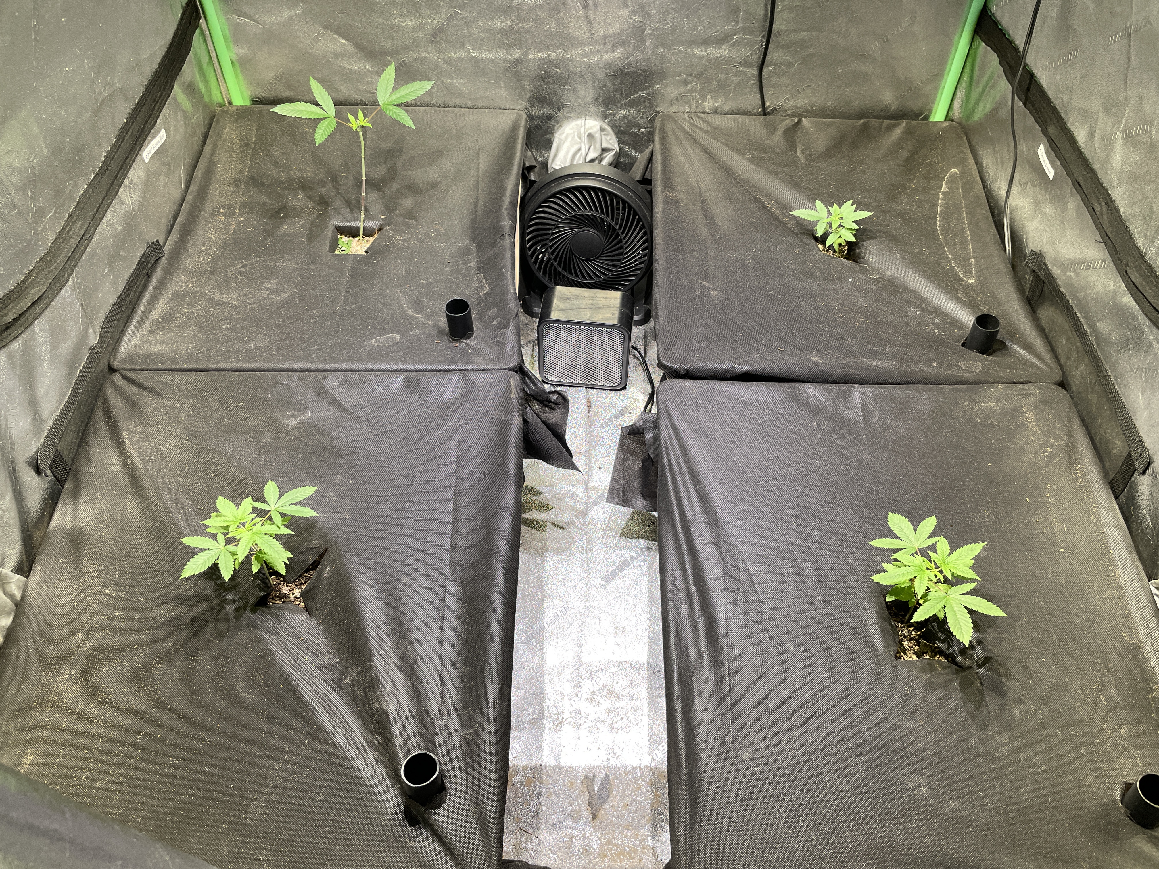 It's about time for a new grow post! It's been weeks since I chopped the last one in the 4x4s. I've been feeding the soil (and the worms) with more organic amendments, worm compost, bokashi and sprouted grain and of course keeping the soil from drying out. I'm using the mulch covers over the pickers this time around instead of cover crop. In living soil, you can just cut the plant down, hang it to dry and not worry about getting rid of the root ball. Two weeks after chop, all that remained was the stem bit at the top. Seedlings for the next round are slow in coming, so I've taken advantage of the down time to rearrange cords and equipment as well as change the orientation of the cross bars in one of the tents so the lights have more support. I will start four seedlings ahead of the rest because of the unevenness of their sprouting or even not hatching at all. I'm starting to think I'm never going to get Train Wreck to grow for me from seed. My Malawi sprout is looking a bit weak too. I went slightly mad and pulled four regs out from my accidental crosses - I might have sprouts by tomorrow. Here's what I'm going to try to grow in this heat and humidity. Train Wreck (I'm 0-4 so far), Super Lemon Haze (1-0), Malawi (0-3), Liberty Haze, Lavender (1-0), Acapulco Gold (1-0), Sweet Amnesia Haze and Durban Poison. I'd planned for all sativa dominant feminized varieties but now there are four alternates: two Tangie x Blueberry, Laughing Buddha x Ghost Train Haze and Purple Haze x GTH. I've got fingers crossed for no males in my pickers.
