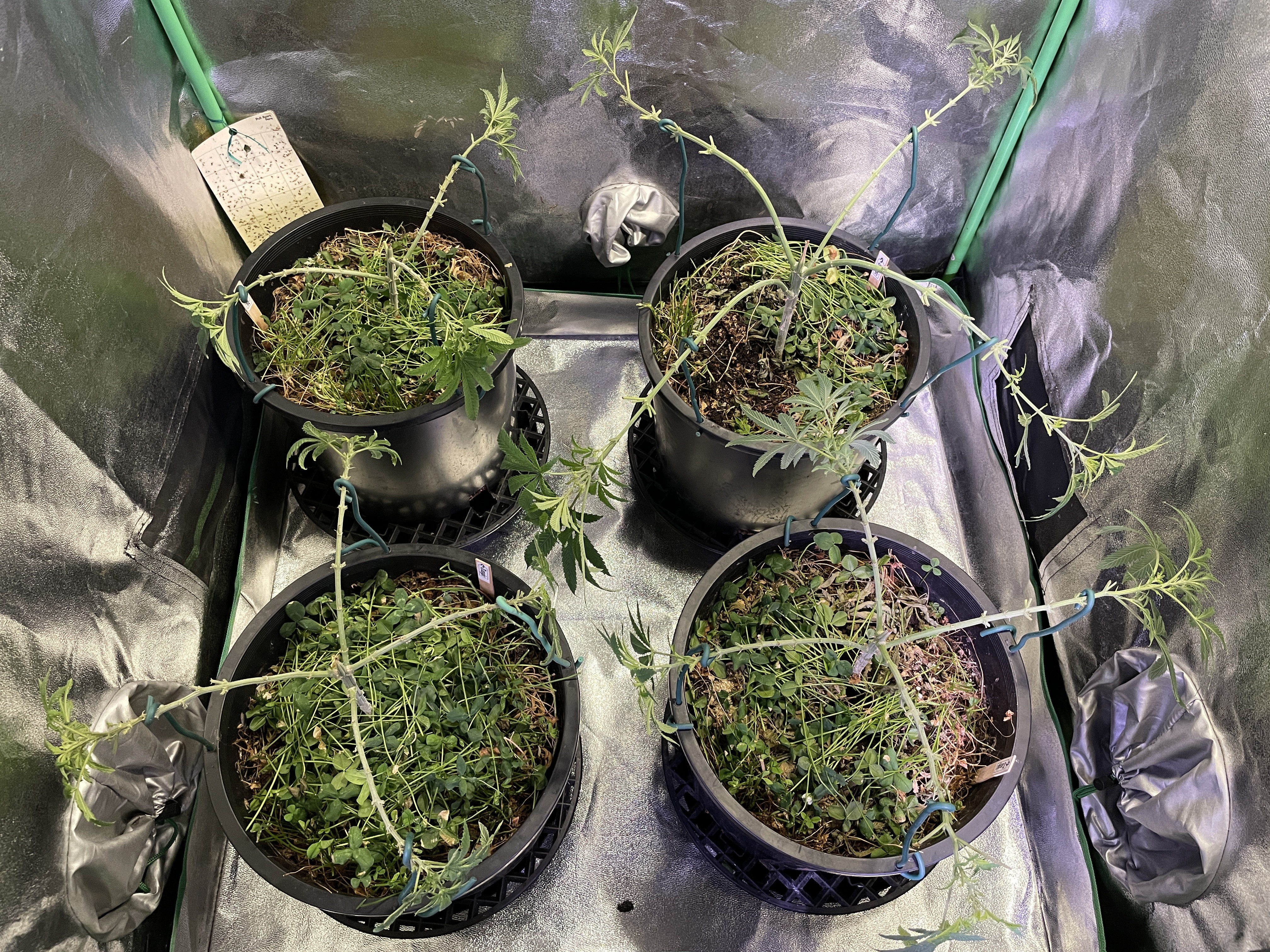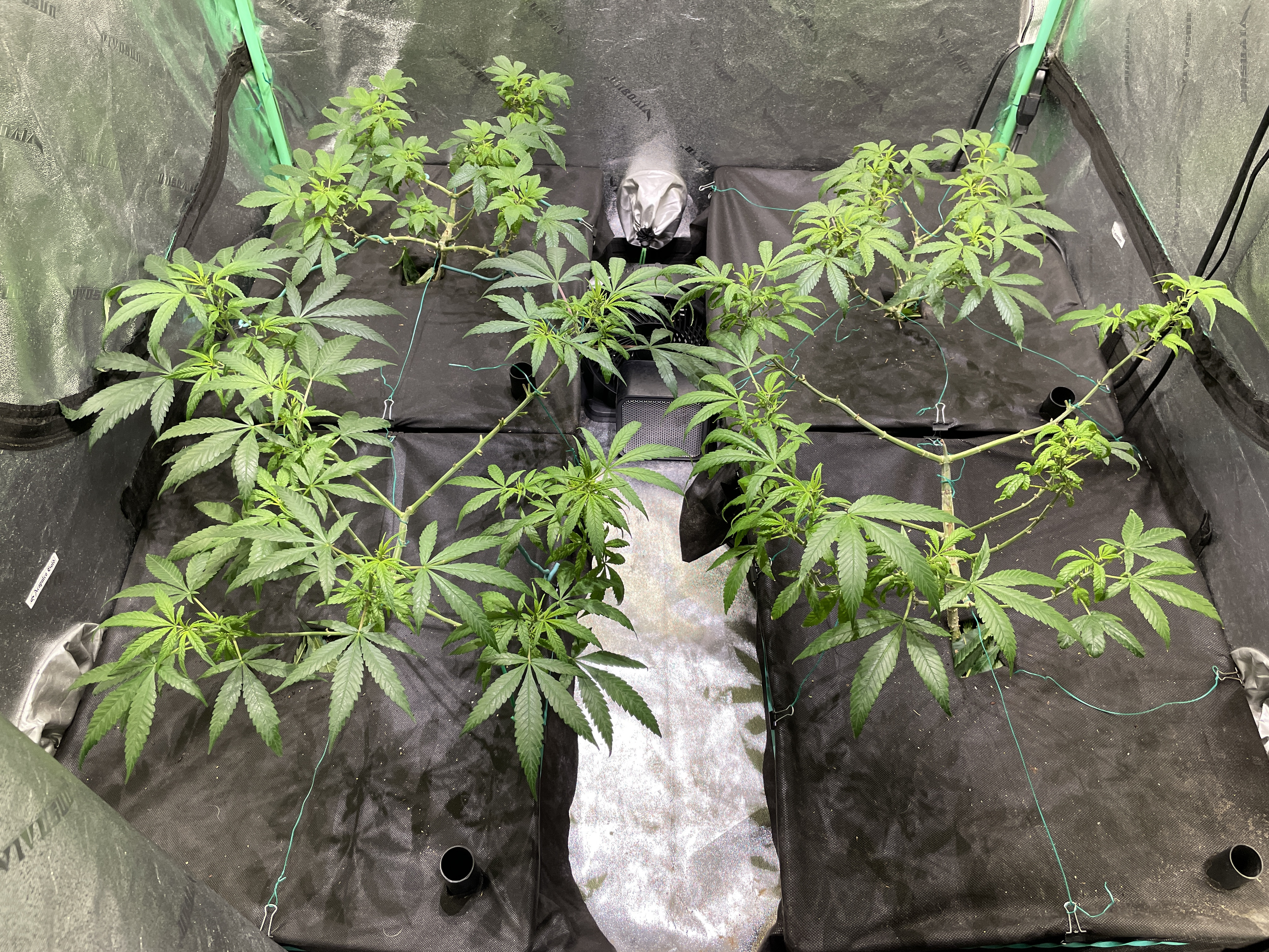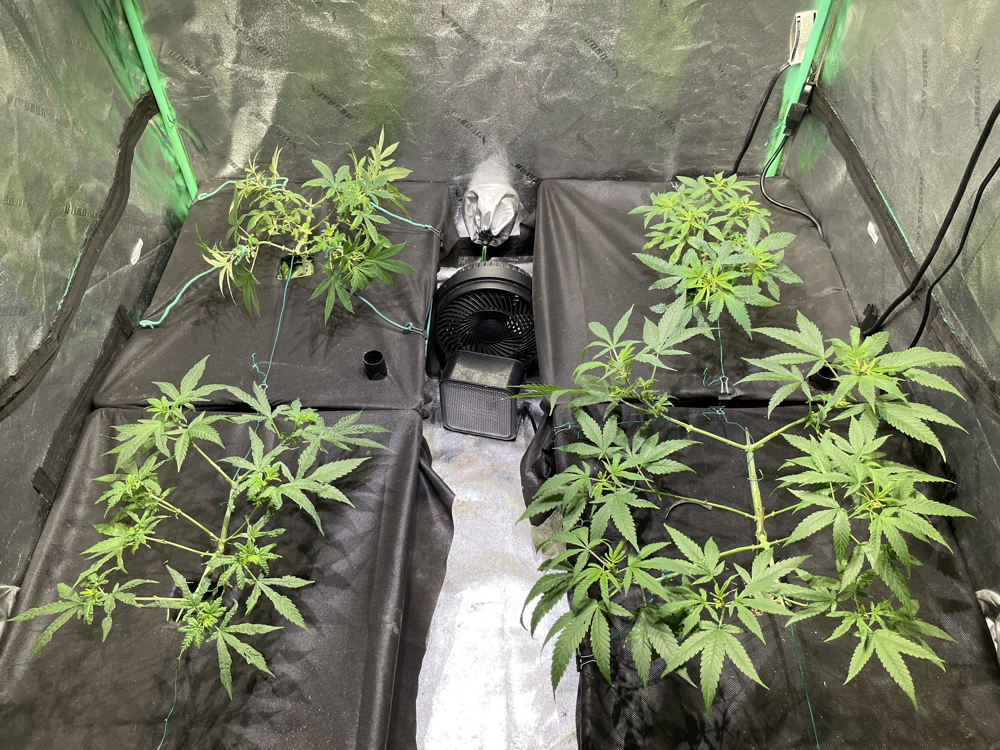 4x4 tent, Platinum LED P4-XML2, four Patio Pickers. Vegging Liberty Haze, Acapulco Gold, Lavender and Sweet Amnesia Haze.