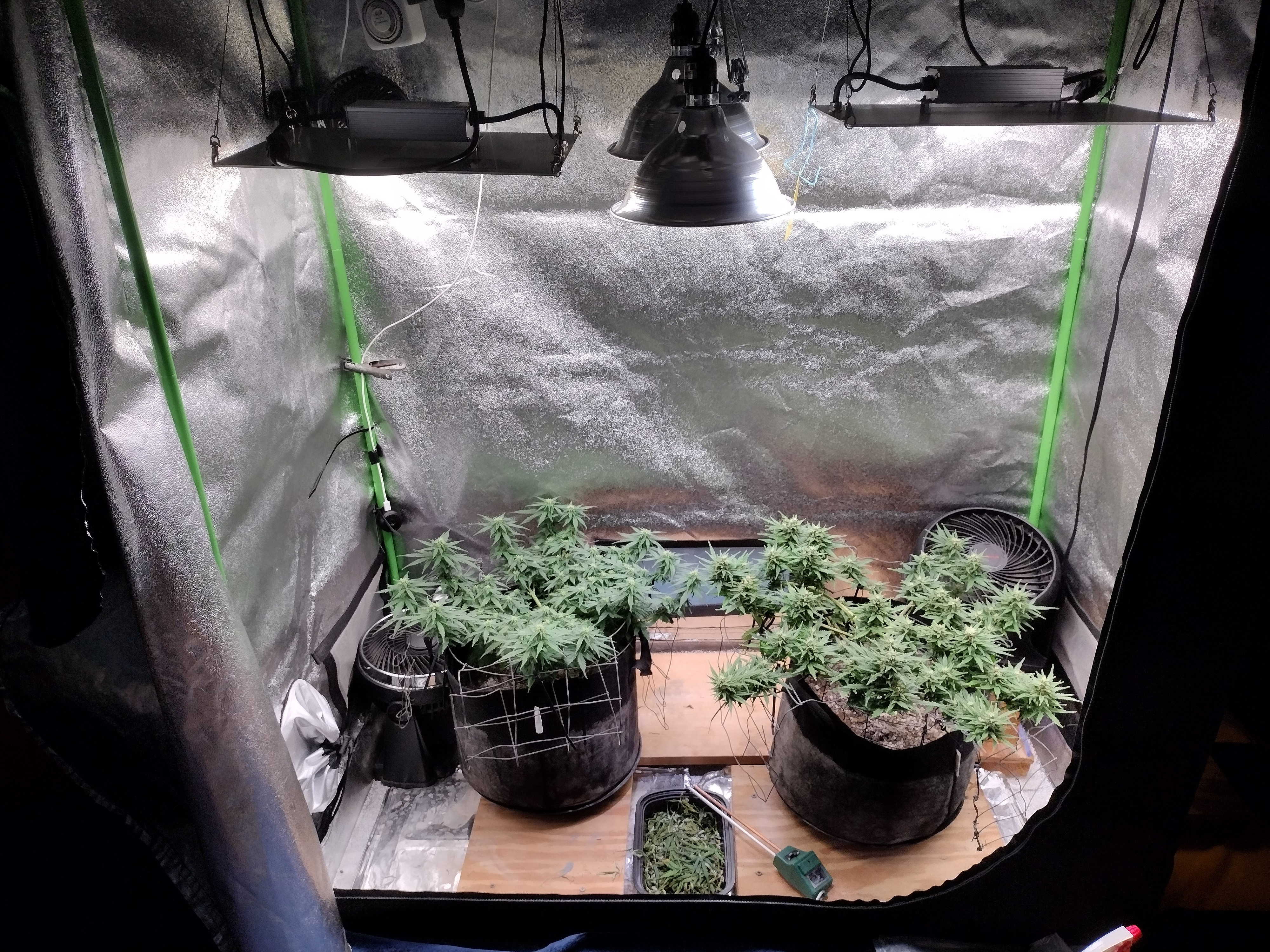 Classic Cheese is Day 57, Red Dwarf Day 54. About 3 to 4 weeks into flower.