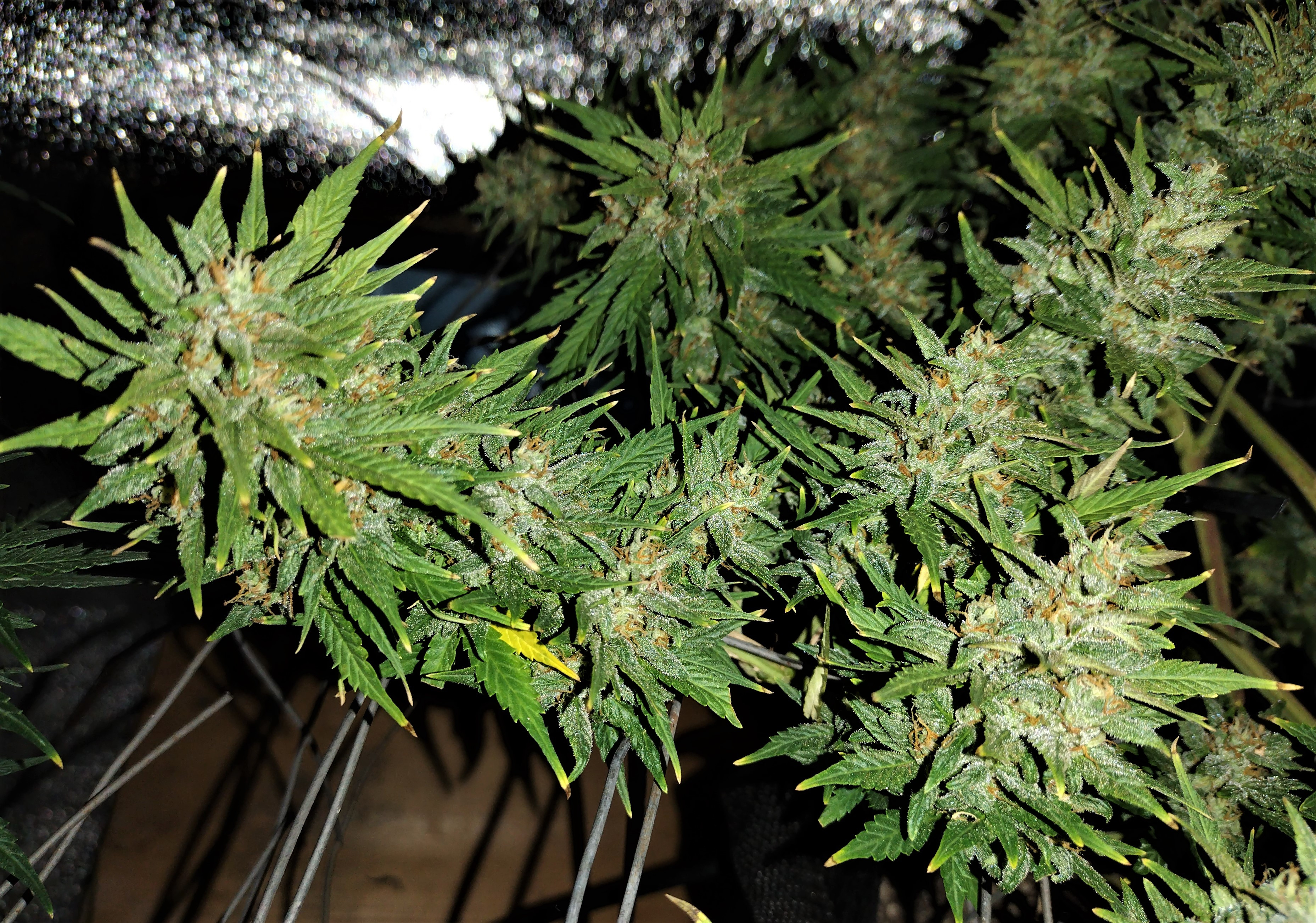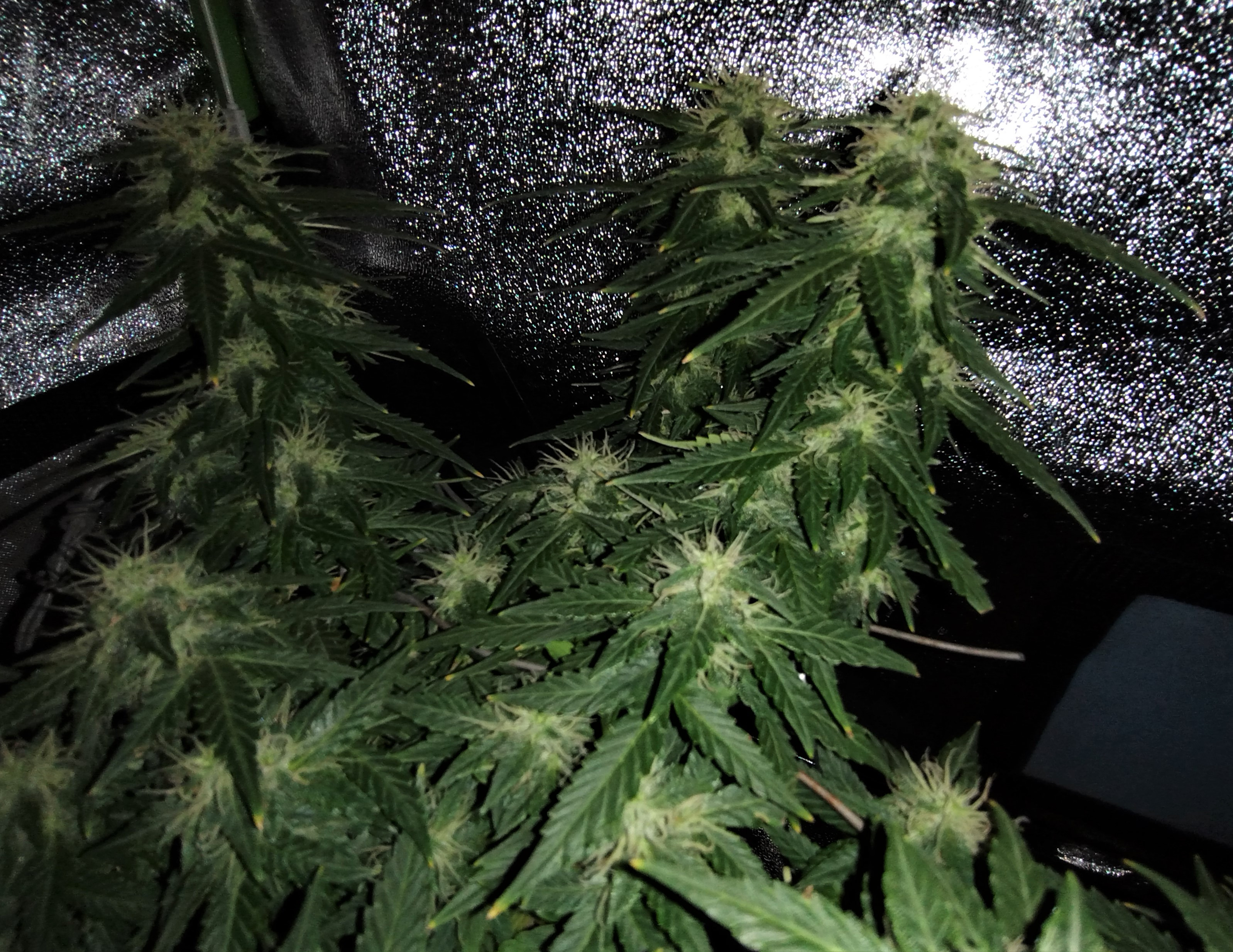 The temps have averaged 78-84 degrees with a humidity of 45-50 averaged. I am surprised by the low humidity but surmises it's because the girls are getting just enough water and moisture and we are all cumbia, it helped to spray distilled water on plants twice a day, as long as the humidity remained controlable so there has been no fear of mold, all water is being utilized properly. Bug has been non-issue after veg had an initial bout of nates. Treated the soil and covered with sand to cut and smother.