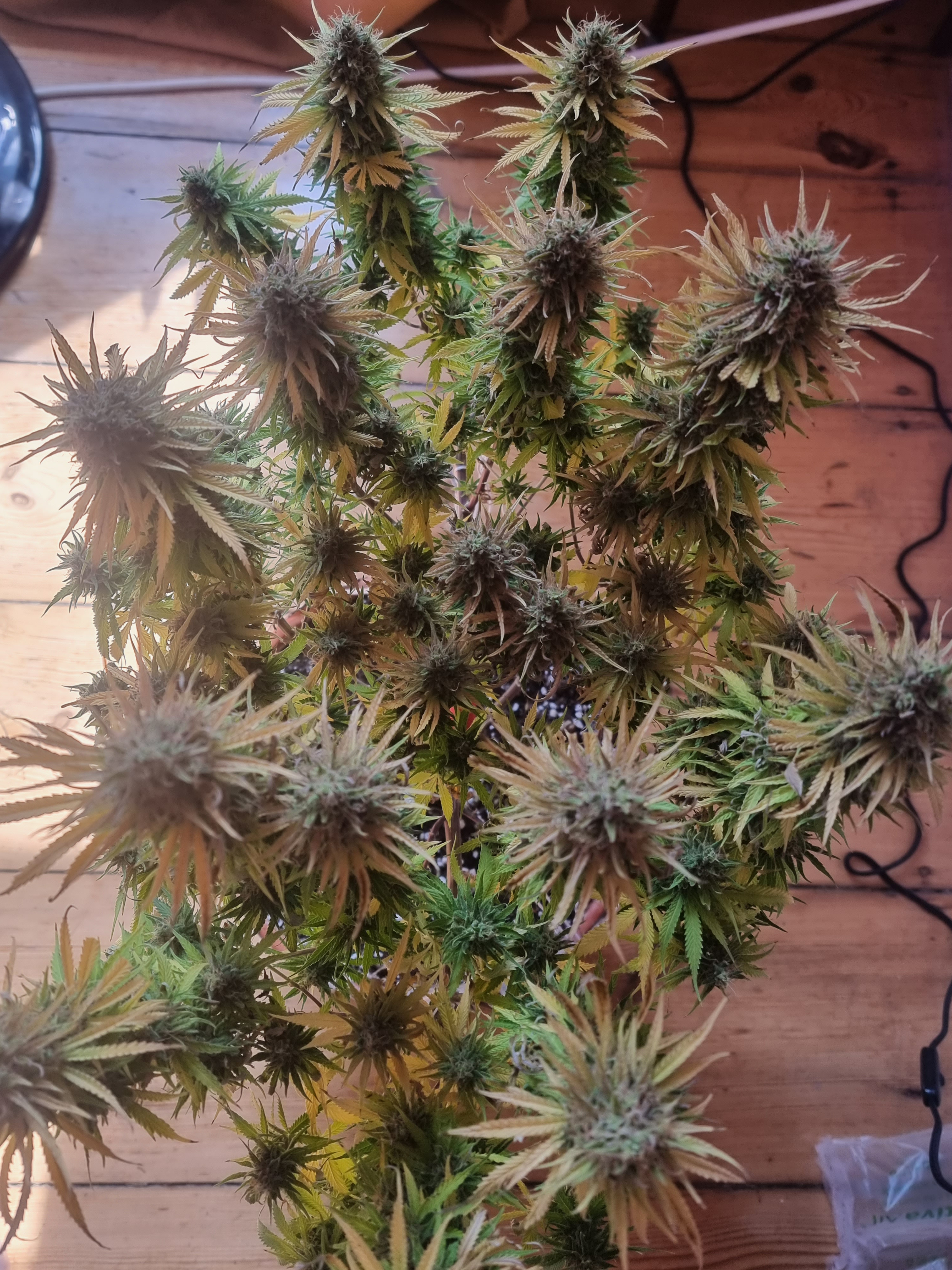 actual question: so I'm wondering if I should chop her down yet or not. this strain takes only 8-9weeks to flower according to the packaging. so I know im a bit early. however, 80% of the leaves are yellow, and I'm a little worried. can't tell by the trichome color if it's really too early. I only used some bloom nutes in flower, stopped about a week ago and did a flush. I think my girl ran out of all the nutes available and is milking her leaves for all that they're worth. I appreciate all your input, again, first grow, I suppose I could have fed her more but got a bit too stingy after watching a ton of videos about overfeeding.