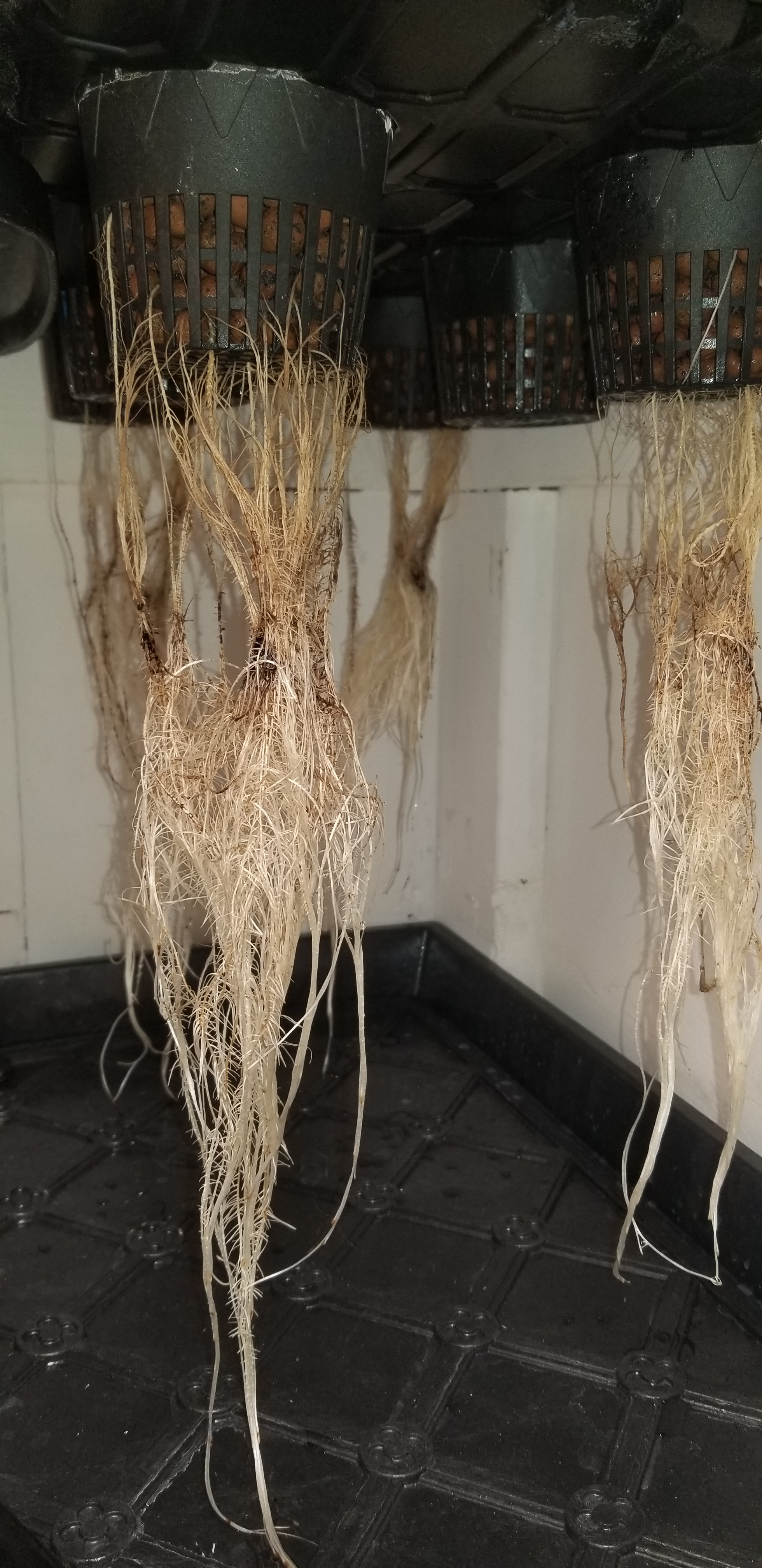 First, the darker material that develops in the reservoir over the course of each week. The first two weeks I did not have Hydroguard, and it was much worse and slightly pink. So I would wash everything with h2o2 before the new solution. I removed the recirculation pump last week and began using Hydroguard. I have just darker colors on the air stones and the surface roots now. Is this just nutrient stains?