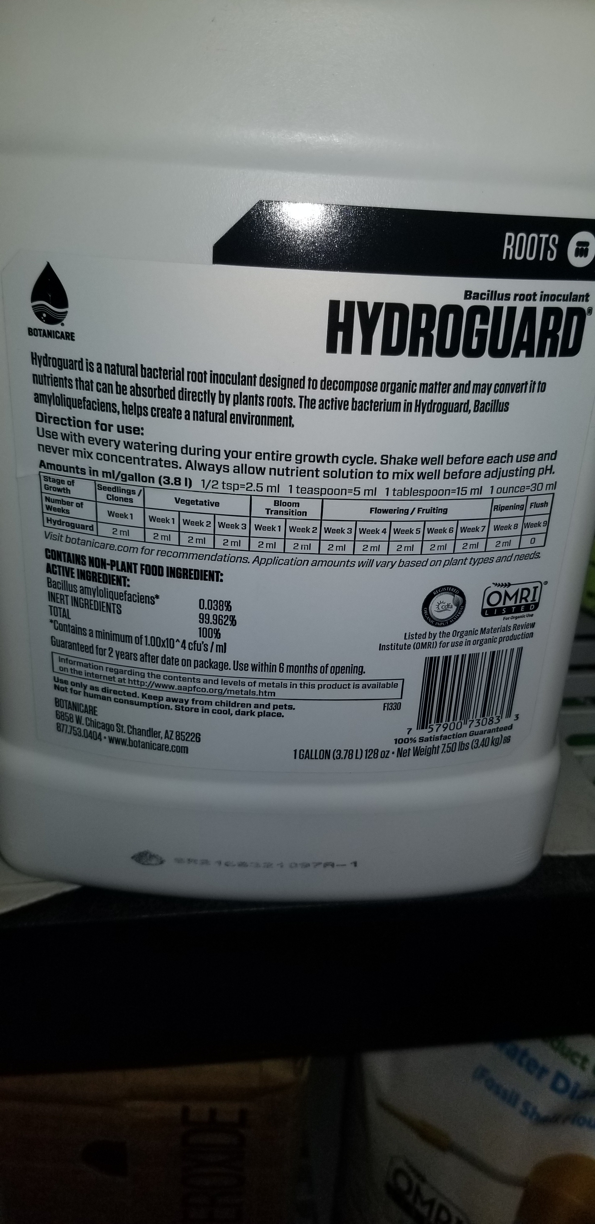 Howdy Blowedout2269. I am about to start my 12th DWC grow. I tried using the Hydro Guard long ago but did not get the results that I wanted. I have, over the last eleven grows, have found that keeping light completely out of the reservoir, keeping the water temperature between 62° F and 70° F, and by keeping the water very well aeriated the plants will thrive. The root rot (brown algae) will not be a problem for the plants. I use four 2in. x 4in. air stones in each of my 6-gallon (10 gal. tote) reservoirs, use ice bottles (changed out as needed) to keep the temperature down, and I also wrap the reservoirs with bubble wrap for insulation.