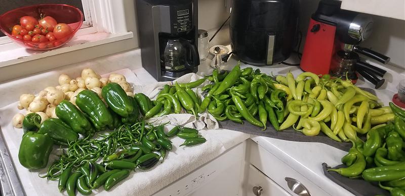Lovely harvests hmm tomatoes yes i use to have that issue never got red except my cherry toms on the porch? But now at my new place oodles of sun all day and the best large toms i ever grew, i'm giving them away i don't can anymore like you.