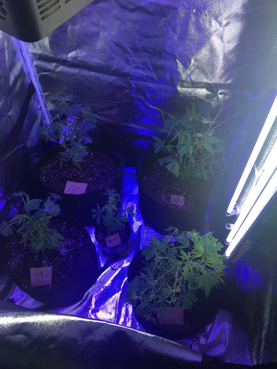 I was told the guy had clones of a bunch of strains and teens of only gg4, when he gave them to me I just assumed they were all gg4 because they were all fairly big but after I put 3/5 of them in I noticed the Sharpe lables on the black pots with strain names... so I'm only sure the gg4 and tangie are the right strains and I just guessed which were which on the others.. I'm sure I'll figure it out when I get the buds based on the smell - I've have smoked each of these strains accept jack the ripper. I have jack the ripper, gg4, gsc, nyc diesel, and tangie. This is my first grow and I was expecting 4 plants but because this guy was 4 days late he gave me a free plant so now I have 5 plants (strains listed) and I'm in a 3ftx3ft tent, I know this is really small for this but I'm not just gonna let the fifth one die.... do you think I'll be ok? they're all different sizes (wish they were all the same but oh well) I wanted to go straight into flowering but I think I should grow the smaller ones up a bit but then the tall ones are going to get too big and they can't get above 36" because then they'll get light burn - my lights are supposed to be 24" away and the pots are 12" tall so in my 72" tent that leaves 36" for them to grow. Should I go straight into flowering and get a low yield from a few of them or just say fuck it and let them grow and see what happens? the tallest one is about 19"