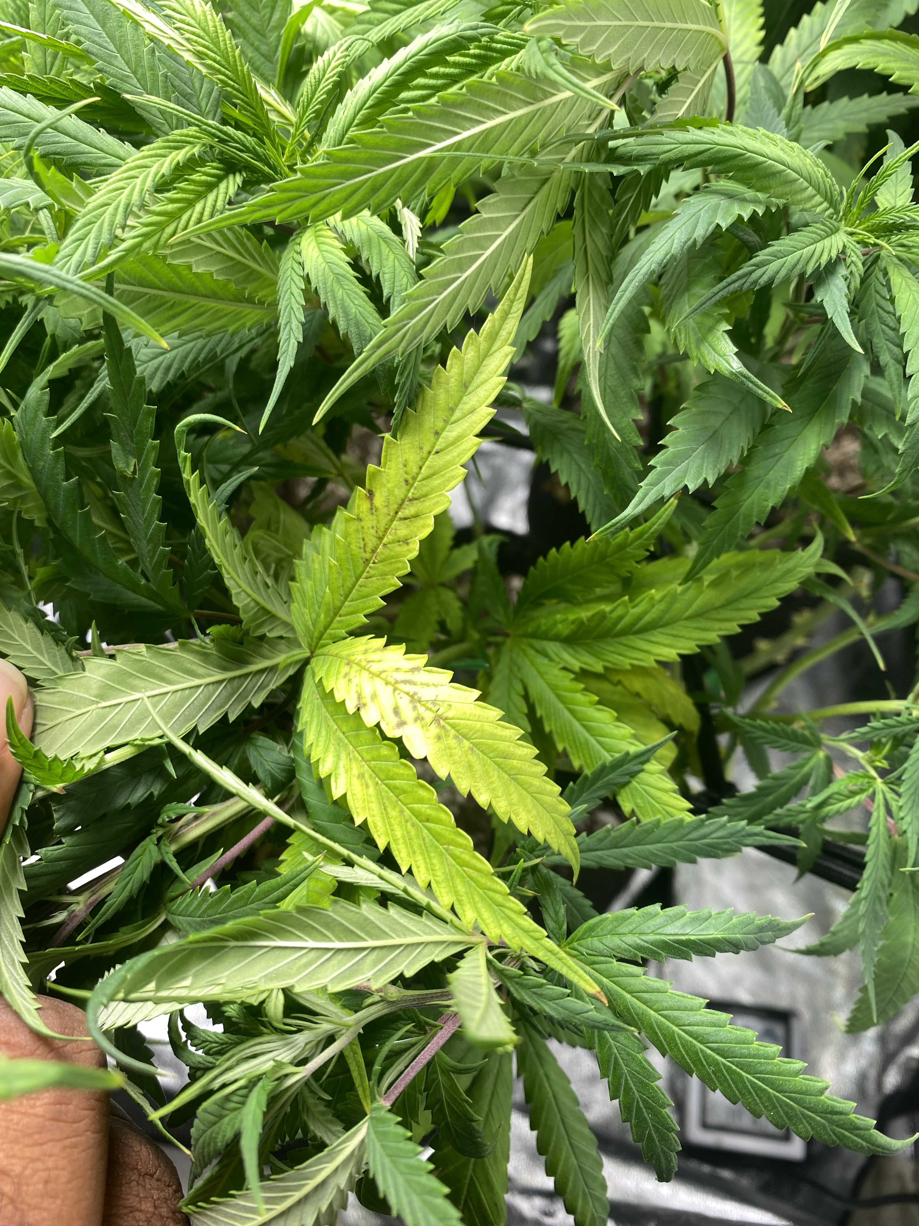 OnDRockGrower I have the same damn thing with my alcupulco gold and amnesia at 4 weeks flowering. A few people have said the same nitrogen. And the ph probably has been locked up with 6.1 ph so your roots maybe effected. A big douche will help out you know a flush.