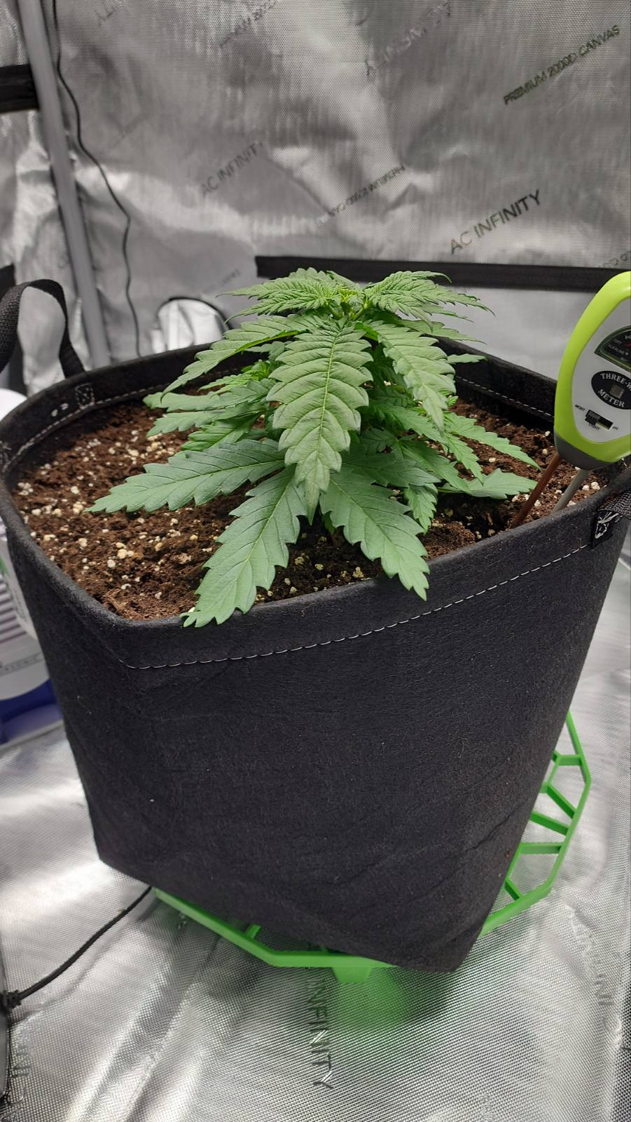 This is my first ever grow, it's a wedding cake (from seed) which have been in the big pot for about 2 weeks and it's just over 4 weeks old since germination.