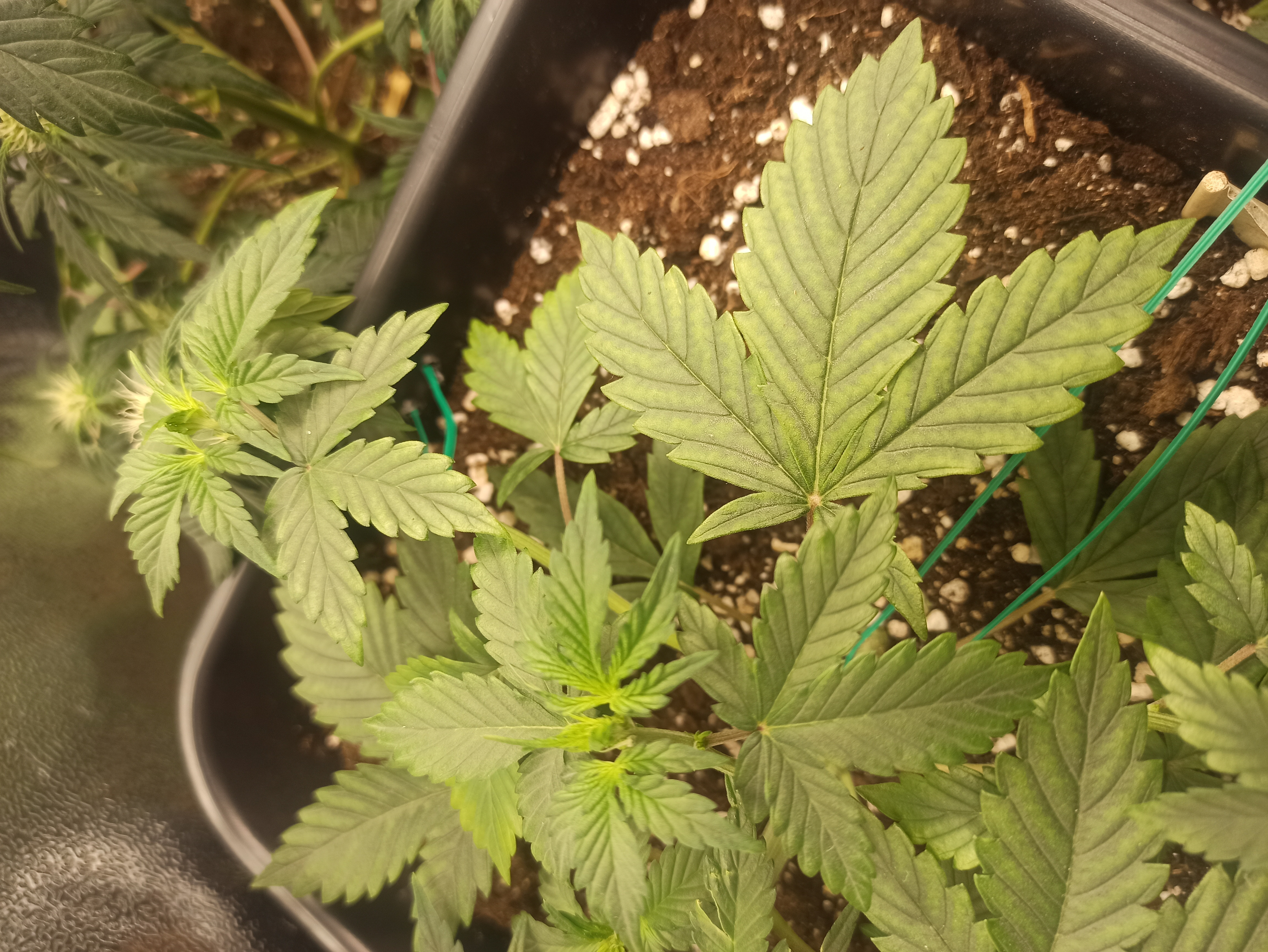 air filter for 4×4 grow tent. Airfan for ventilation . 25 11lt pots with fastbuds auto. Lightmix with 10 percent wormhumus all biobizz. Day30 at flowering watering around 400 ml ph 6.4-6.8 tap water aroun 260 ppm every 3-4 days untill completely dry soil. All going good exept some little issues i want to ask. First as you can see in fwtos lower fan leaves and mostly bigger an older ones are a little light grren fade. Second i watered them 2 days ago and since then some of them are dropy with red purple veins. Isthis magnesium deficiency. Ifed them about a week ago 1 biogrow 1 ml biobloom in 1.5 lt water only once . Light distance is around 30 -40 cm temps 20 celciusat night and 26 celcius at day humidity 50-60 .Tell me what you think this is.