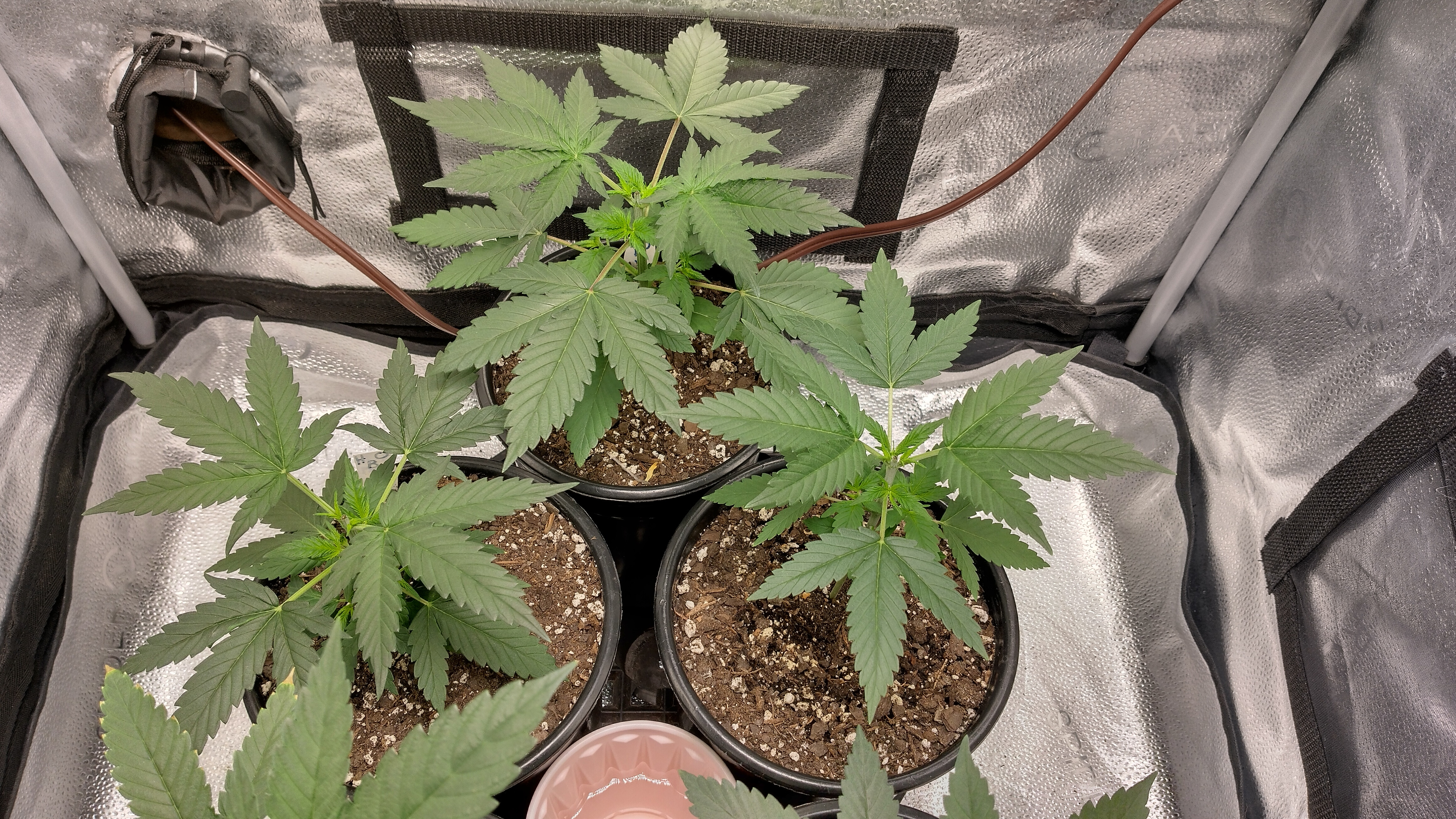 The next breeding phase has begun. Several months ago I successfully reached the sour diesel x (orange barb x Skittles) cross that was a goal of this endeavor, now I'm working towards stability. Just planted a sour Skittles feminized seed to reverse so I can get a collection of pollen. Also planted three regular seeds from changeofpace2014 that are (cotton candy kush x strawberry cough) x blueberry (sounds fire, right?). Hoping at least one of these is female so I can reverse to collect feminized pollen. After this I'm running a sea of green with nine different plants to pollinate.