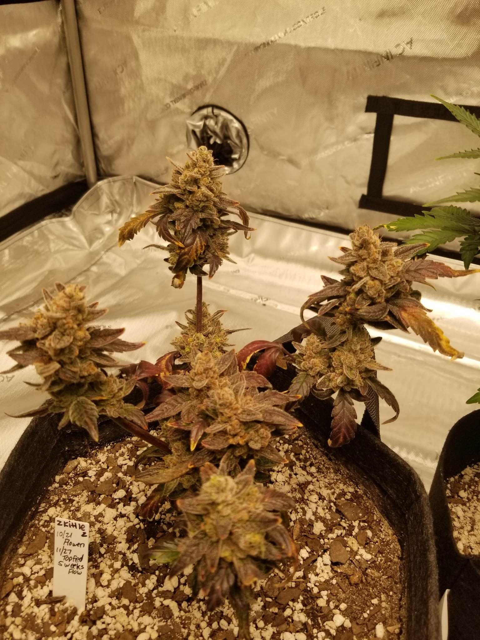 10-31 Zkittlez (new calyx growth is popping up on some buds--last ditch effort to get seeded?)