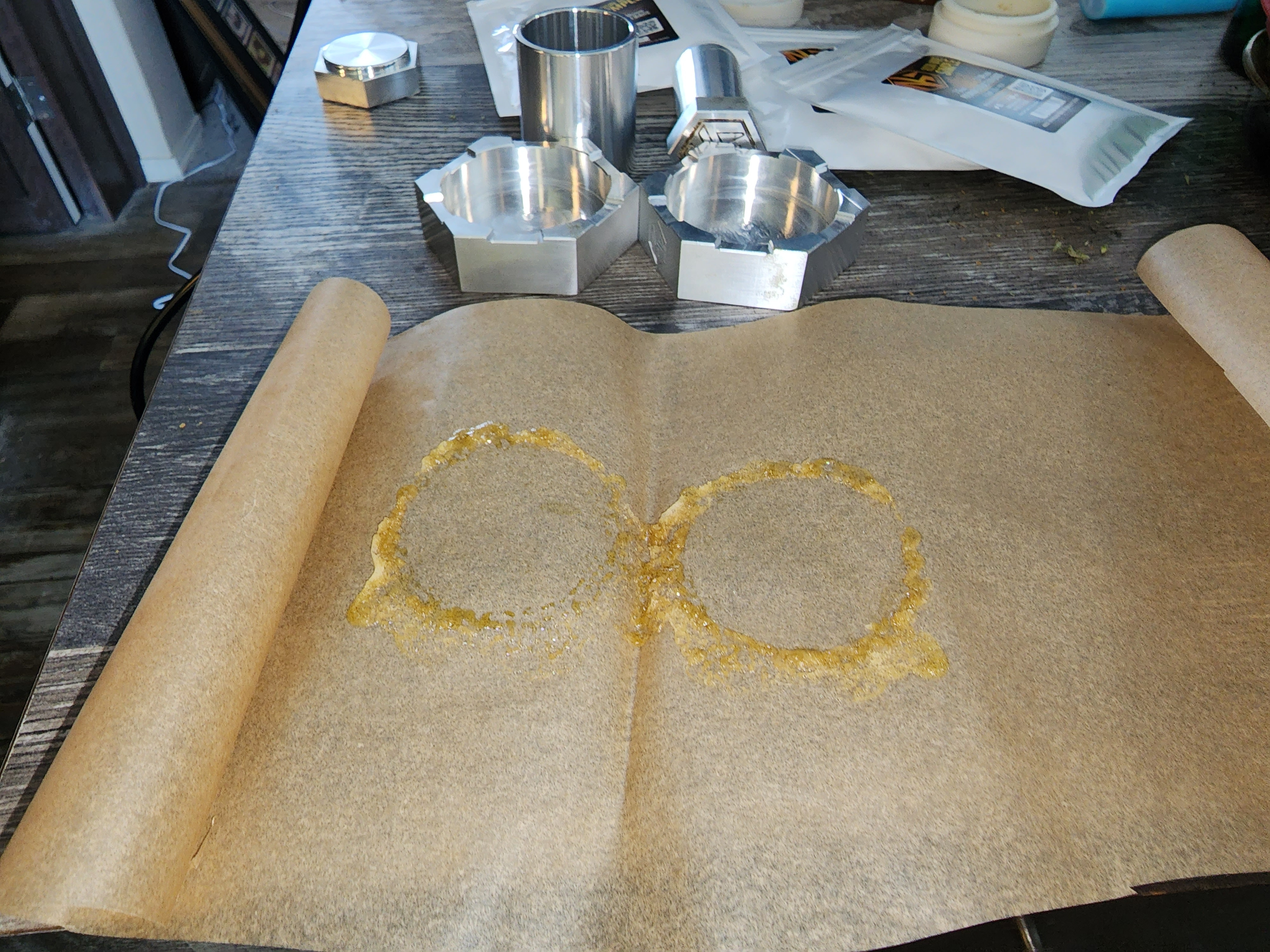During the last few weeks I visited a friend for a few days. He had recently gotten a hybrid tabletop vaporizer. Needless to say my press also made the trip. My friend had purchased a gram of live rosin. I’m not positive of the brand but I’m pretty sure this is a good representation