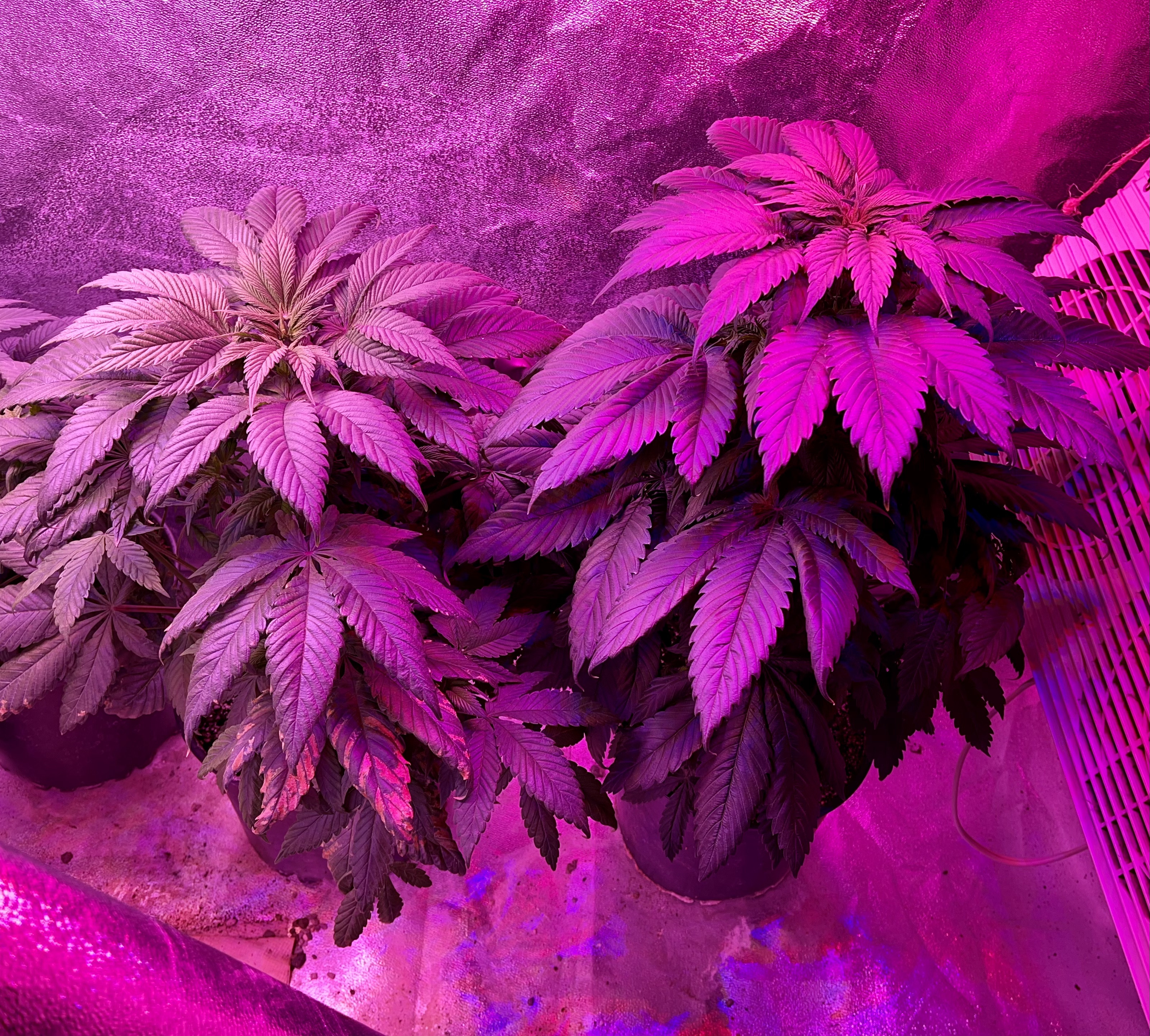 Removed 4 150w highbays and 3 80w floods....and all 14 of the 13w 405nm deep violets....these throw down lots of roots. I may rewire (PITA) and install next crop but I don't think I need them.