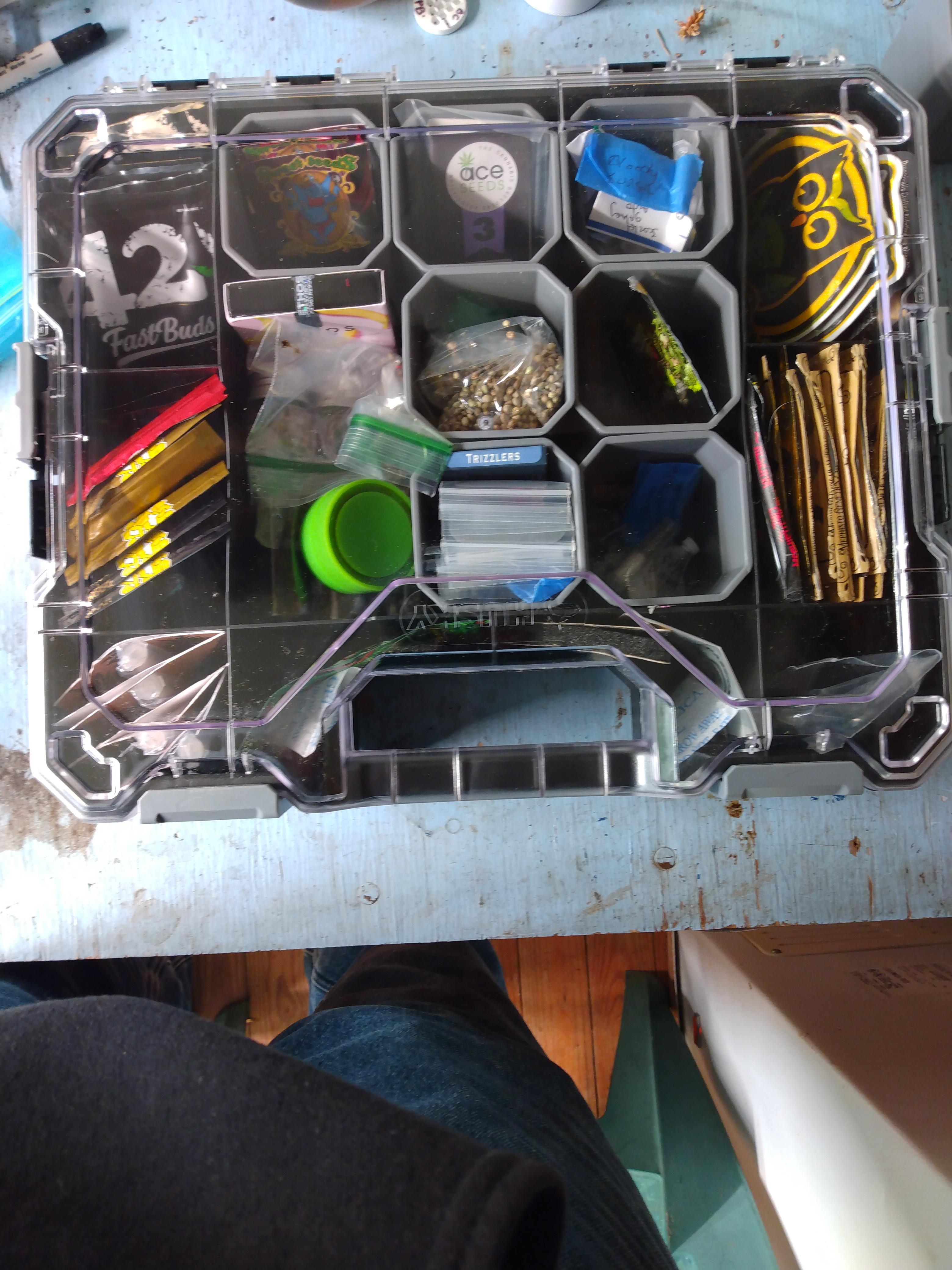 So I got a new organiser for my beans. Whilst reorganizing I came across these. Completely forgot about them. When I made this seed run I also reversed a bloody skunk from Sweet Seeds in hopes of making some s1 seeds. The reverse was successful but she produced no pollen. Just empty flowers. as with scarlet sunset I only reversed half the plant so I pollinated one bud with sunset but it was late in the run and I didn't think they would mature. Ended up getting 11 nice dark beans off of the bud but as scarlet grapes has taught me color isn't a good indicator. I know what I'm popping next.
