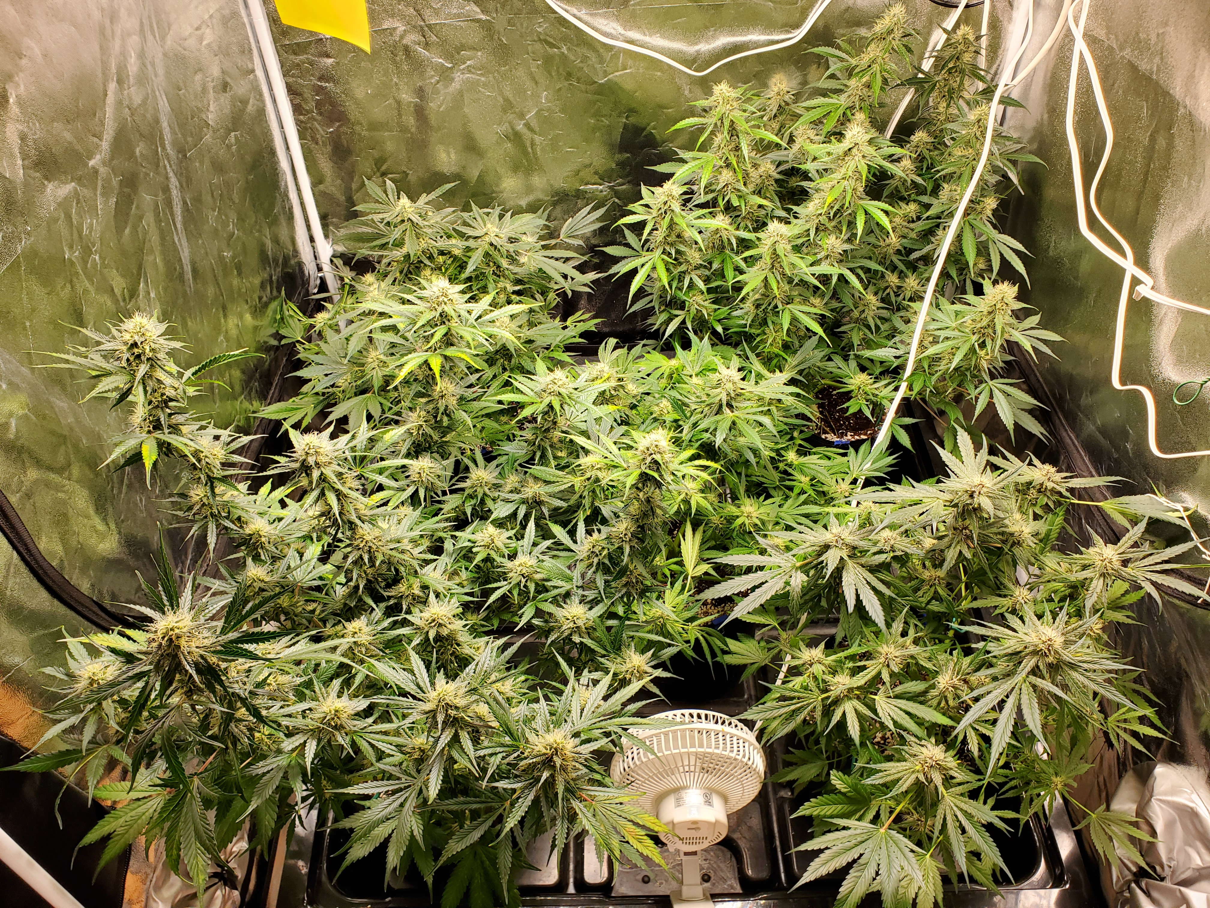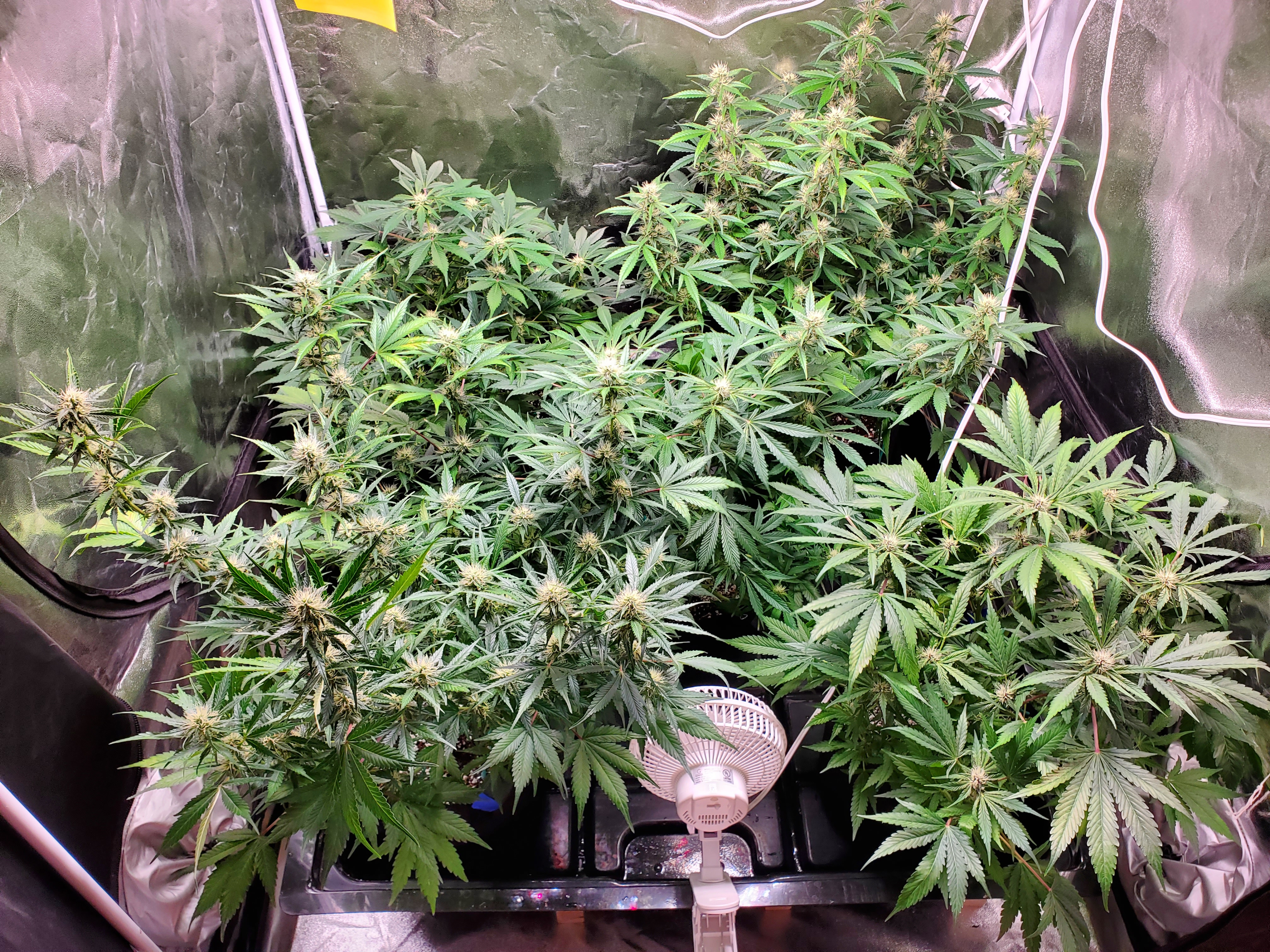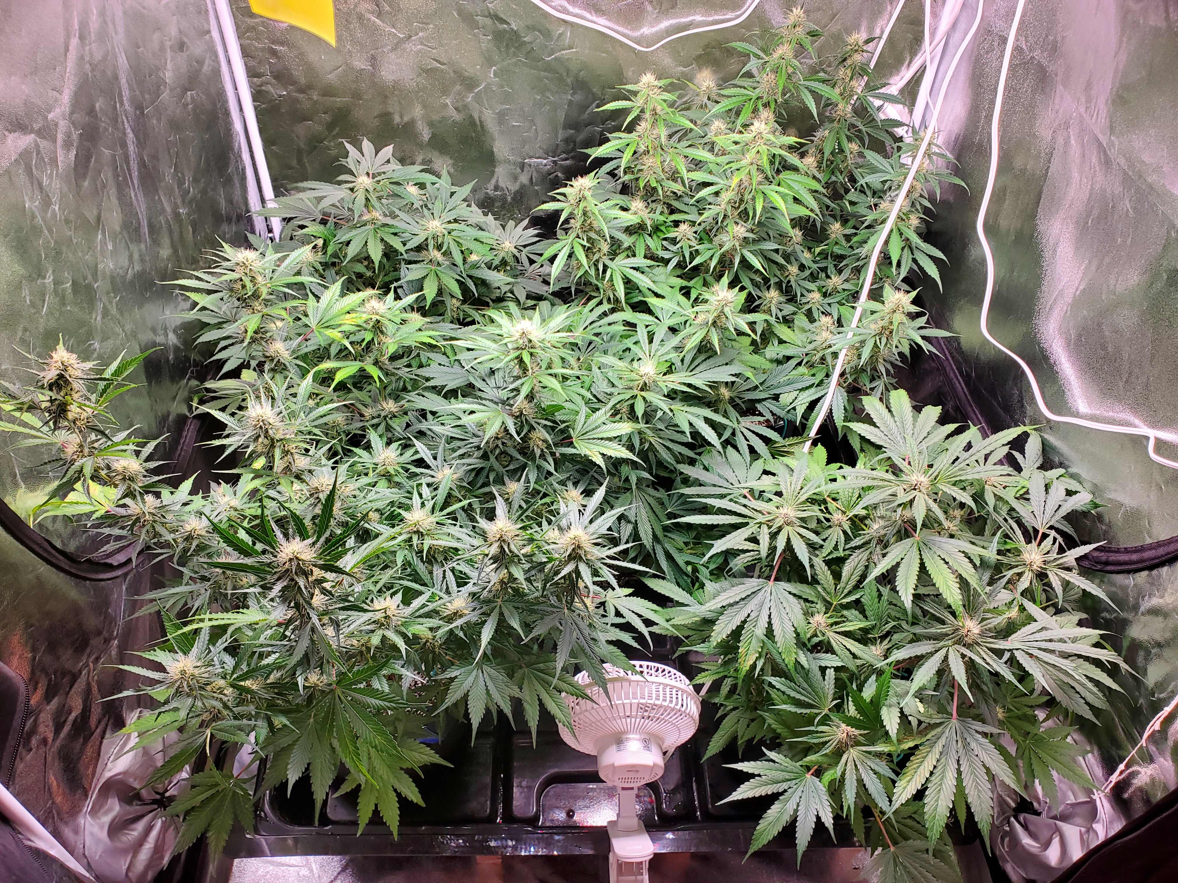 The scarlets are doing well. They are starting to dank nicely. Buds are starting to fill out. Waiting for sunset to finish stretch so I can work on a defol to let some light in and maintain air flow.