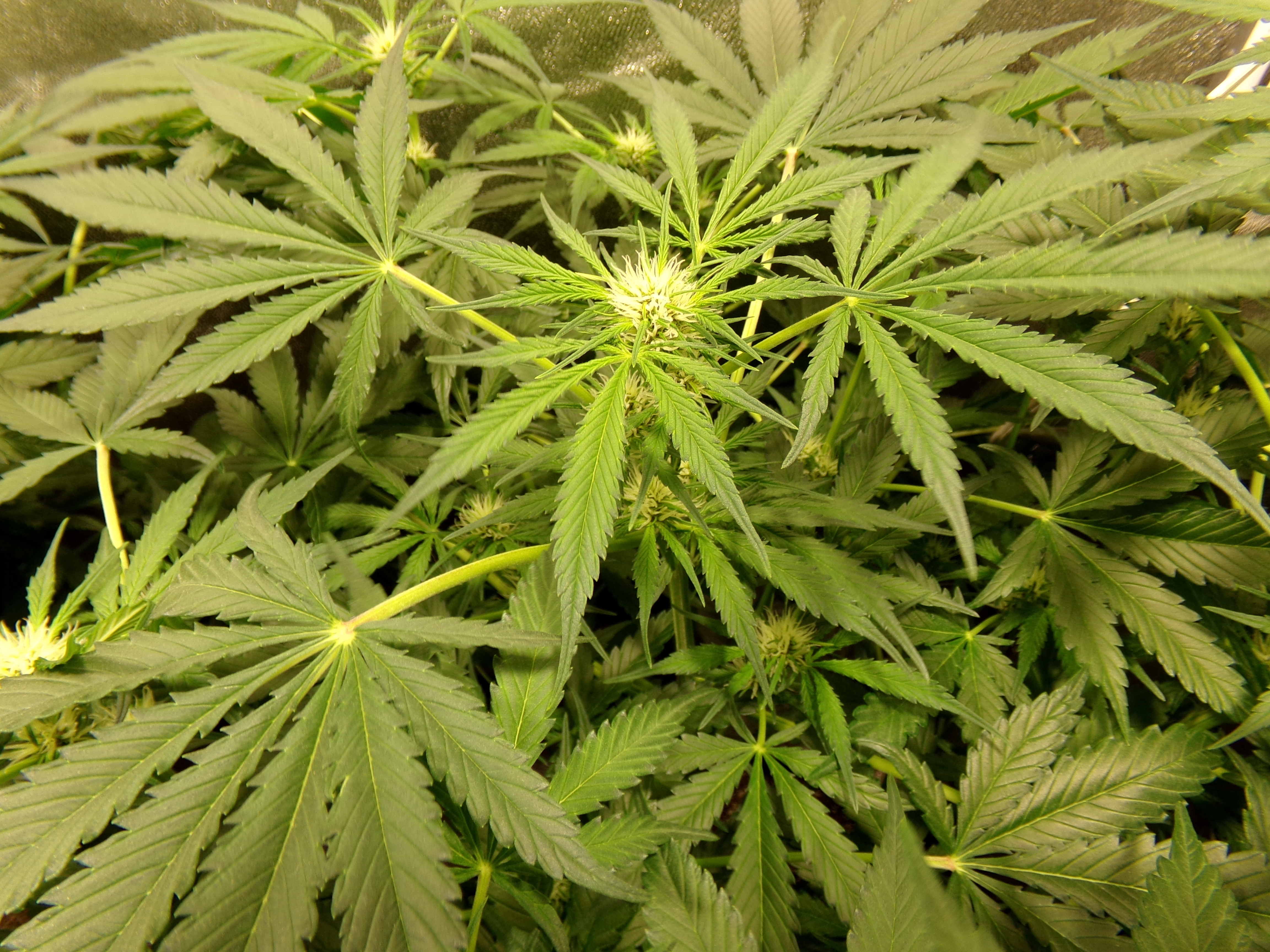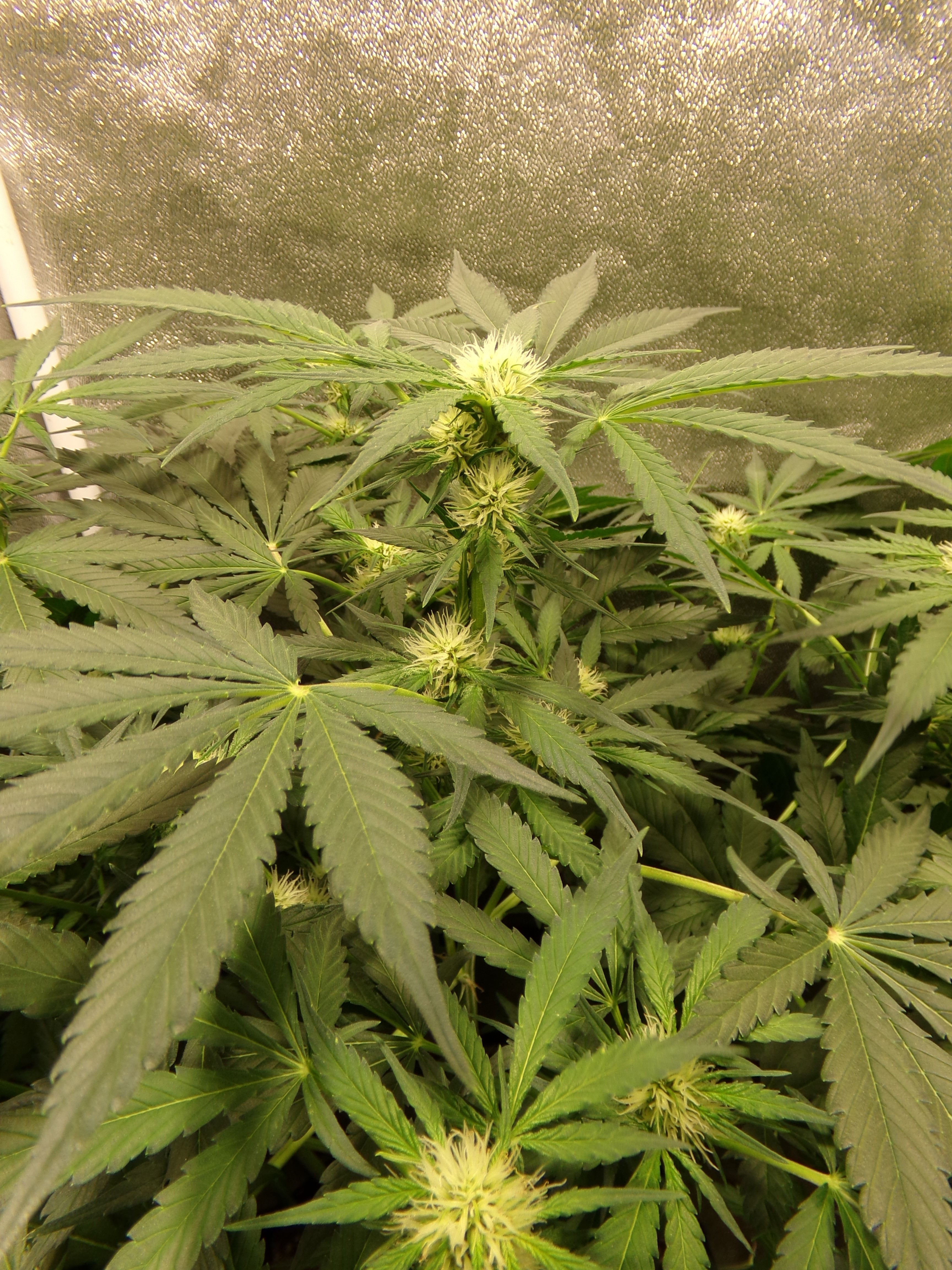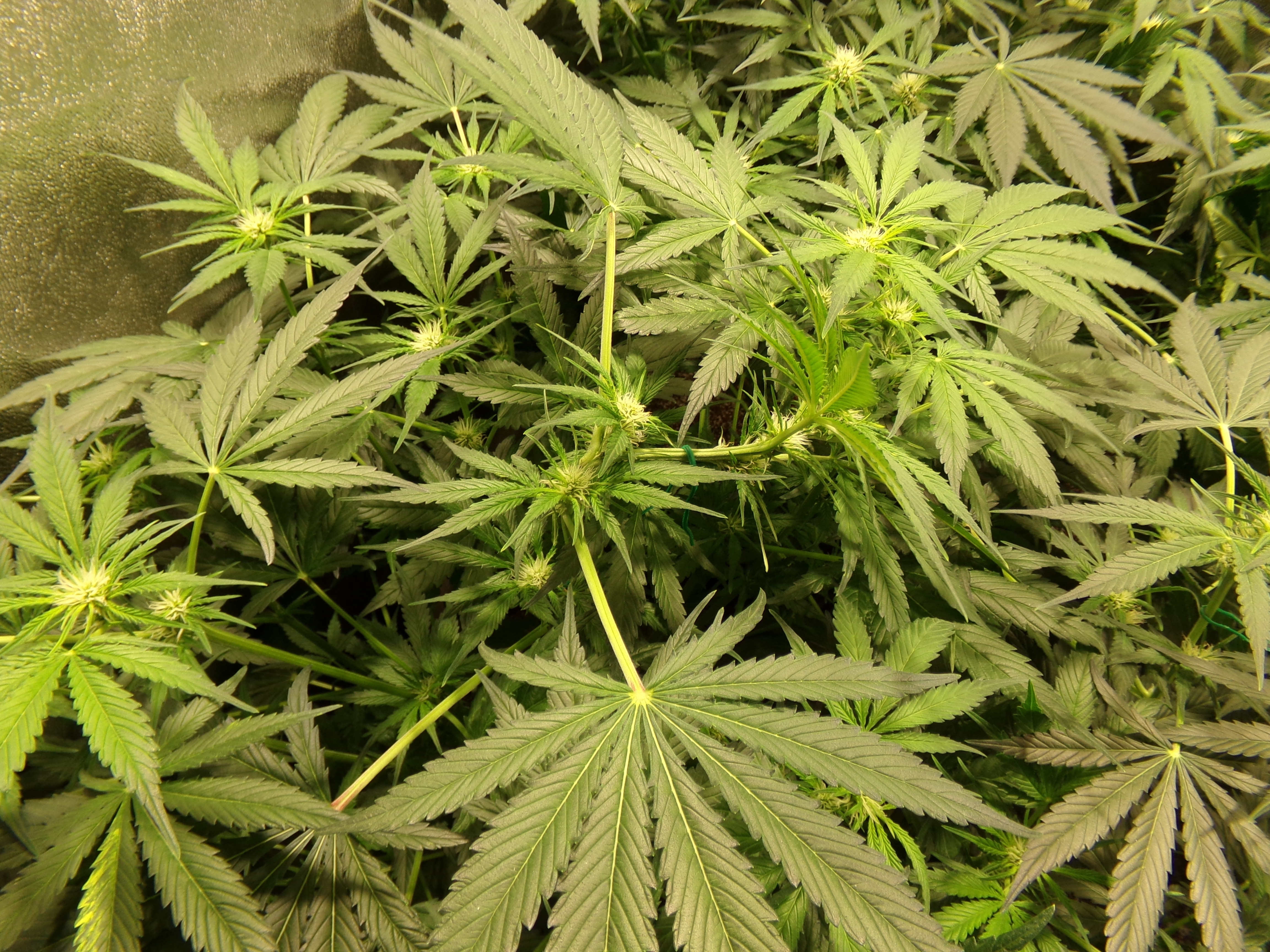 4 weeks. Flipped last night. The buds are as or more developed than I usually have. The plants are a few inches short of being my maximum height for feminized vegetation. If I get the same amount of stretch, the plants will be full size for my tent. I've only removed the soil sitter leaves. The more I grow, the less work I seem to do.