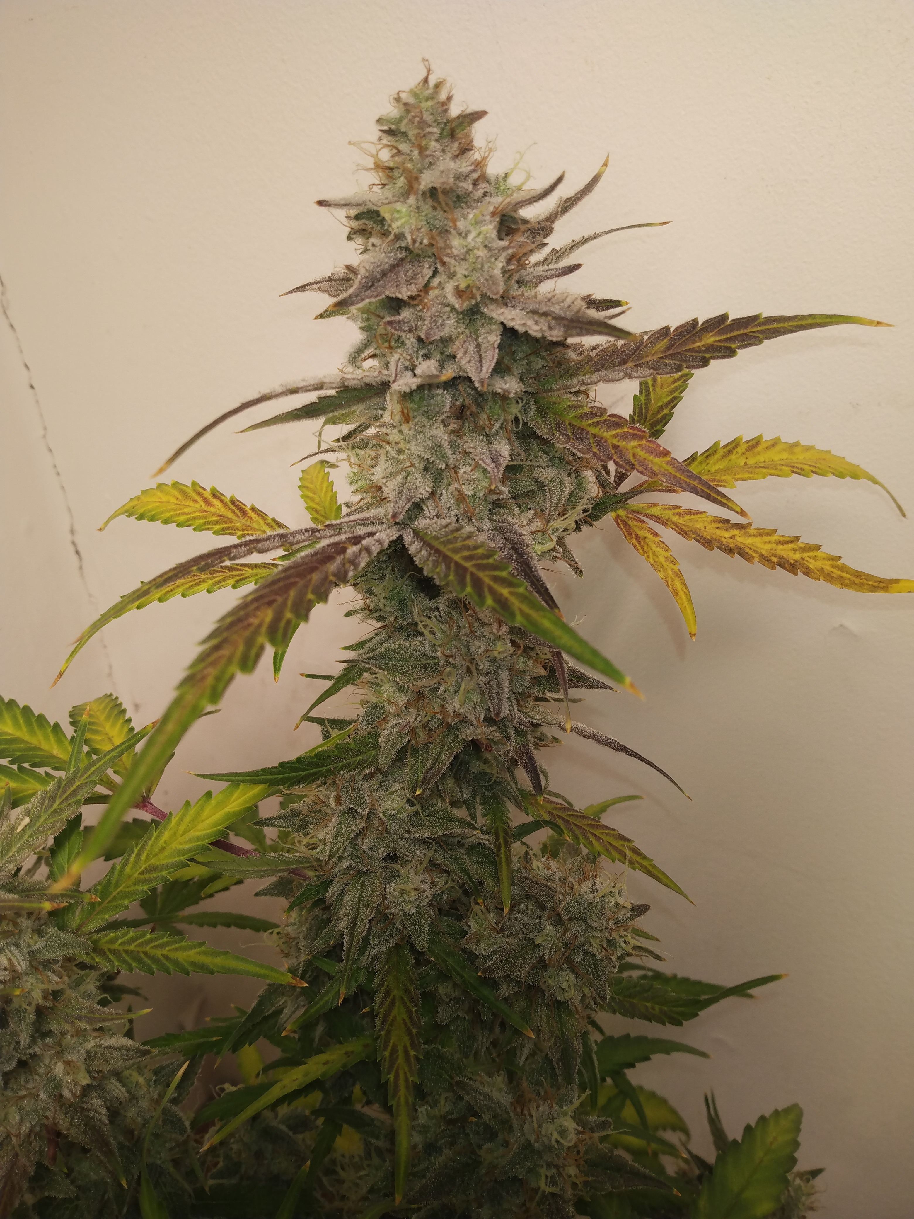 Oh y'all wanna see frost? Double grape was without a doubt the greasiest weed I've ever grown. She was a no brainier for a cross. I've had two phenos with her consistantly. The indica leaning golf ball nugs with the fruit/sour smell and the sativa leaning piney/ citrusy donkey dick buds. Chose the latter for my experiment. The few I've grown out have been surprisingly consistent in structure for an F1.