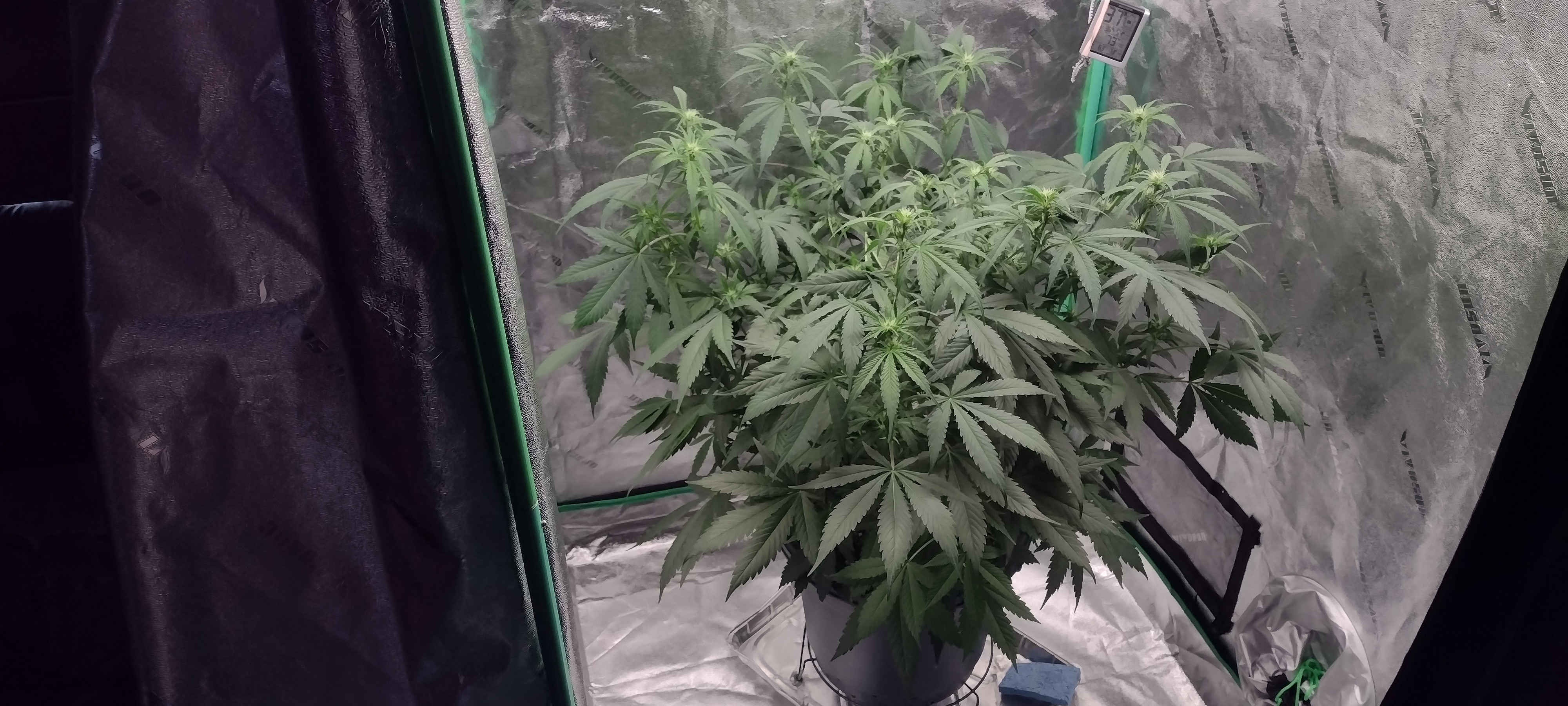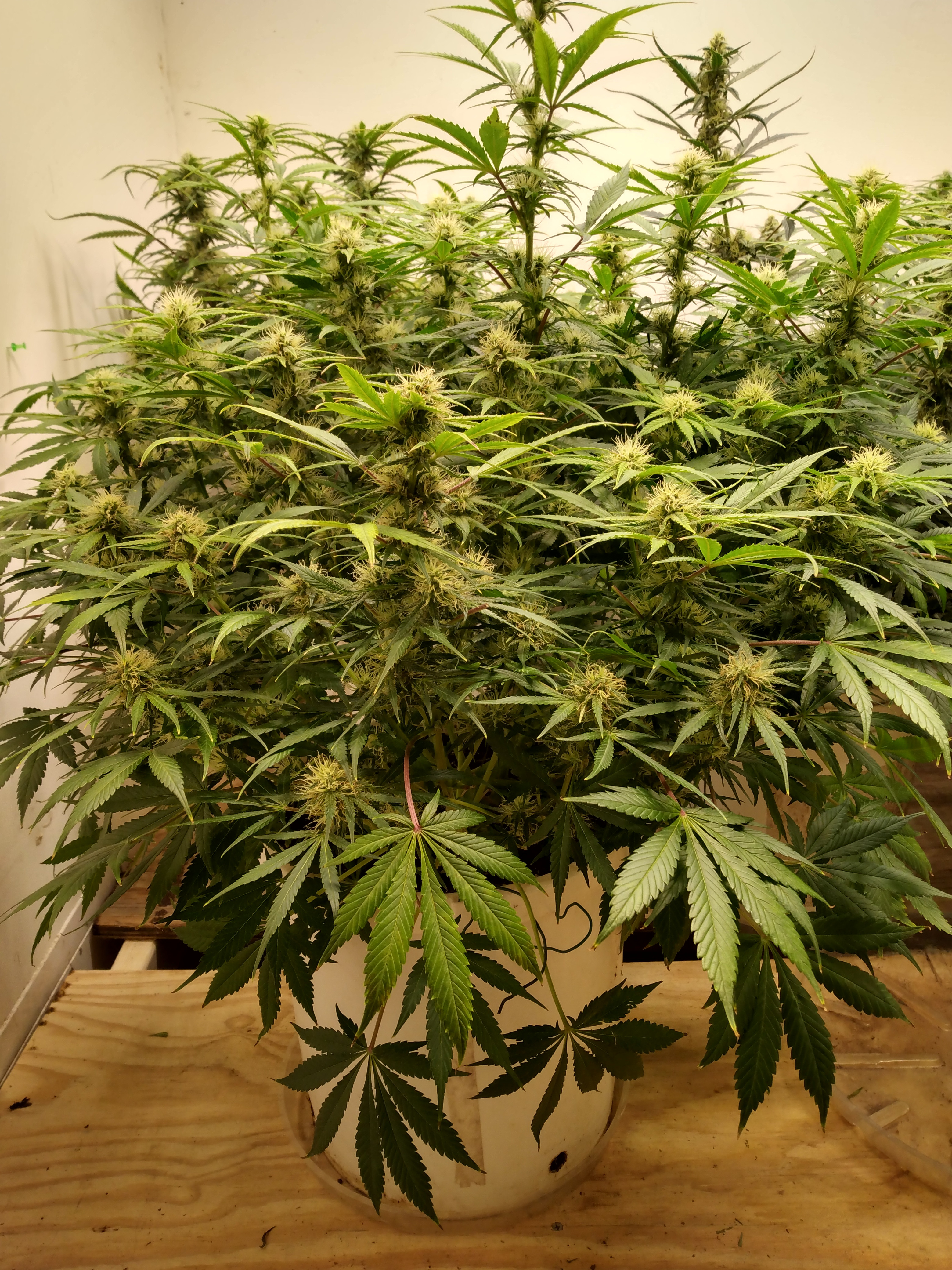 Happy Sunday. Galaxy at 56 days. She's going thru 3quarts a day. Thirsty and hungry so I began supplementing bloom nutes. Probably more deserving of a ten gallon pot. Click image for larger version