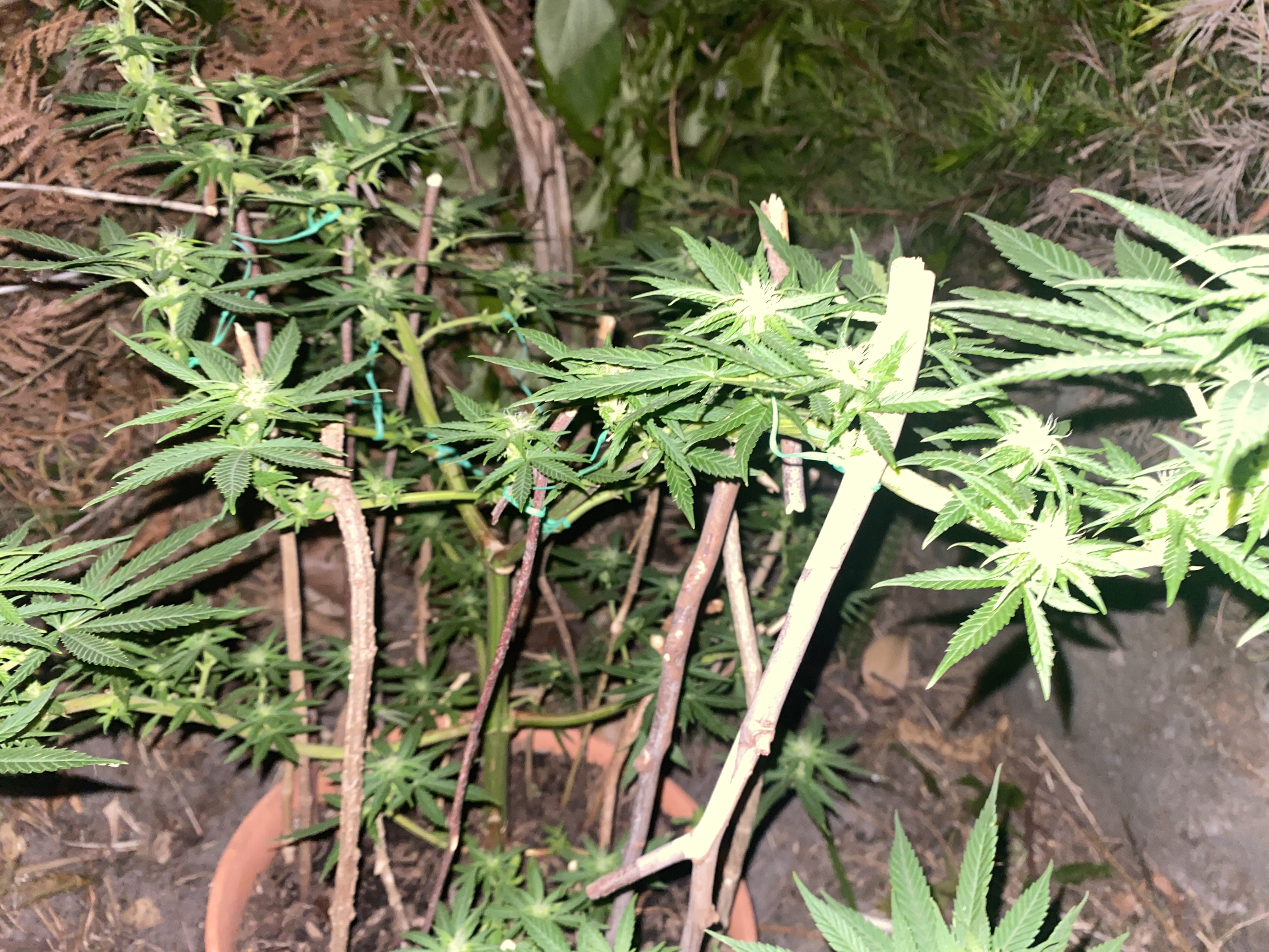 My last question is to do with my LST TECH. I didn’t have easy way to make it figure a way to make a set up for wire ir for string or how to do so. So I figured using branches with broken edges that are like a 7 but with the top on the 7 pointing down.. so it’s like a hook and I push lightly into the soil mostly 1 inch or until it holds it which isn’t normally far.