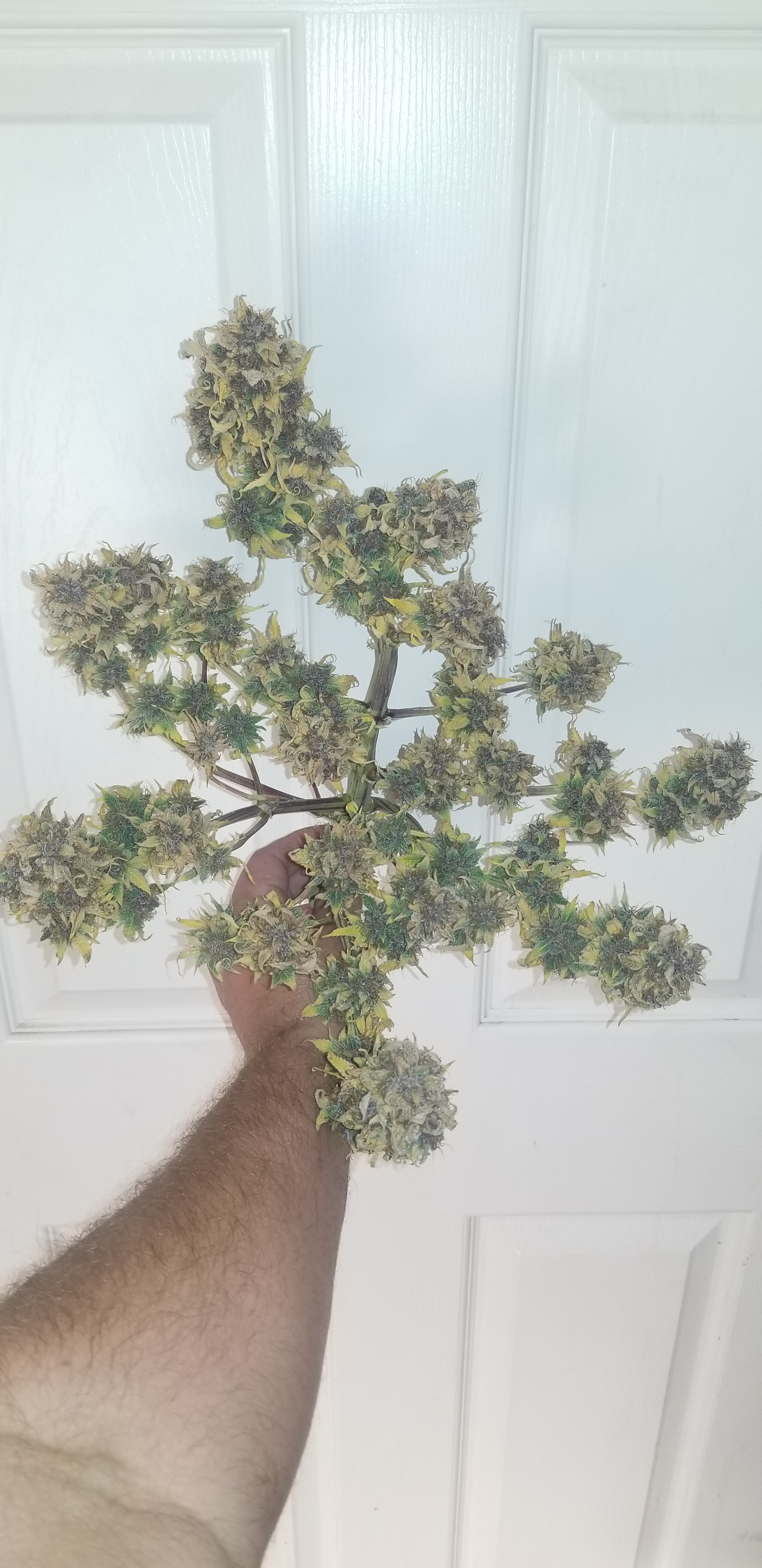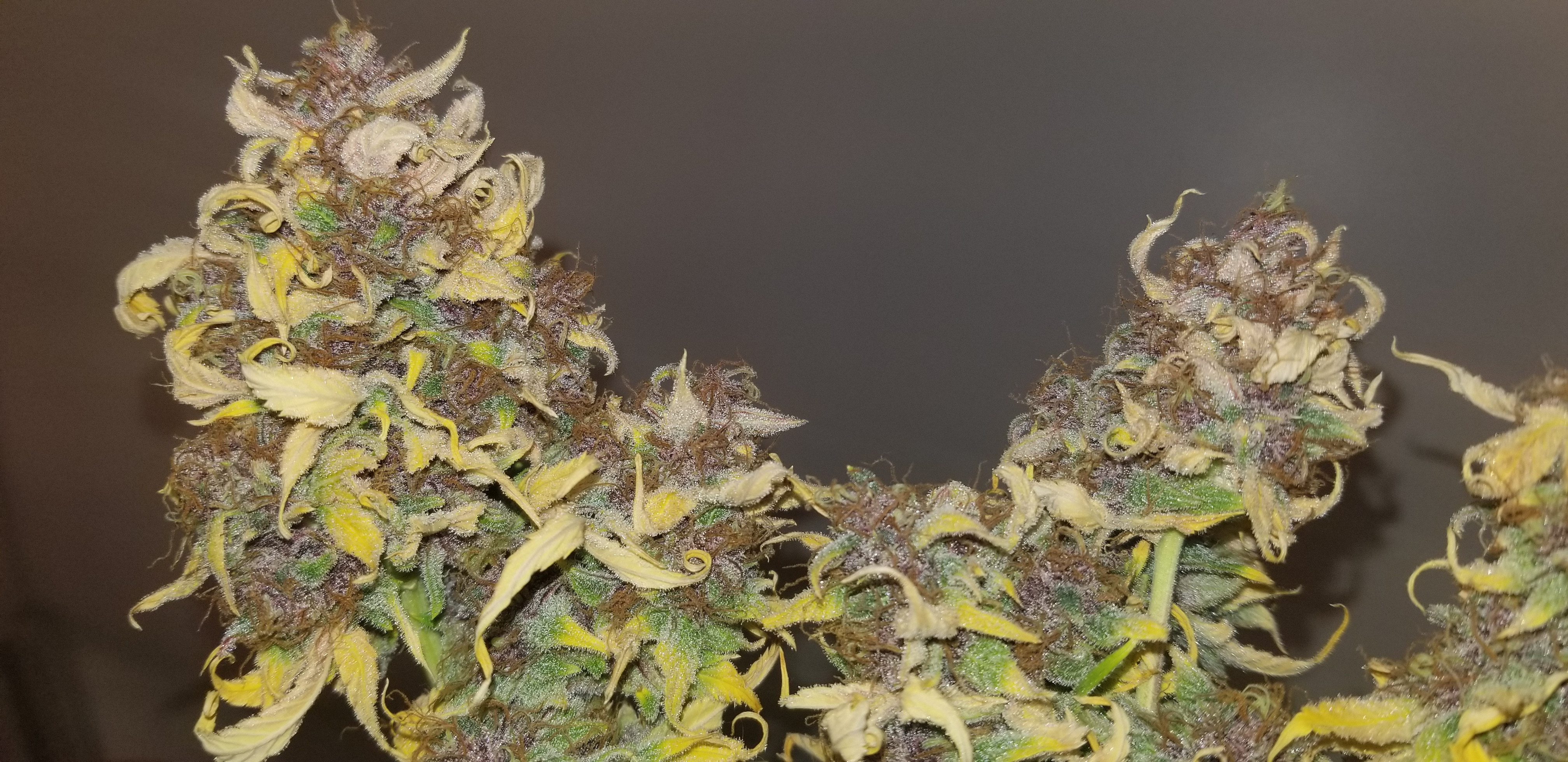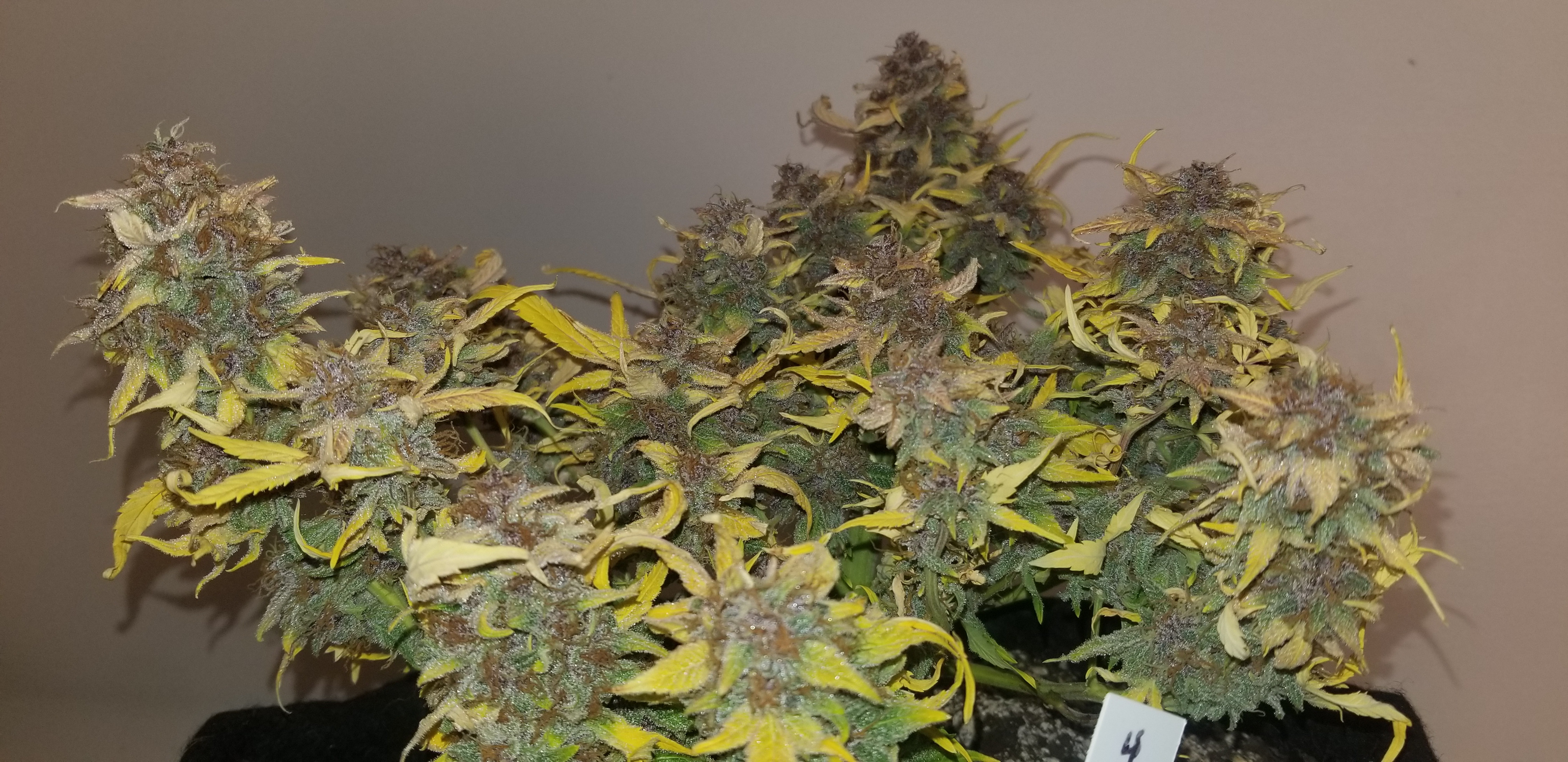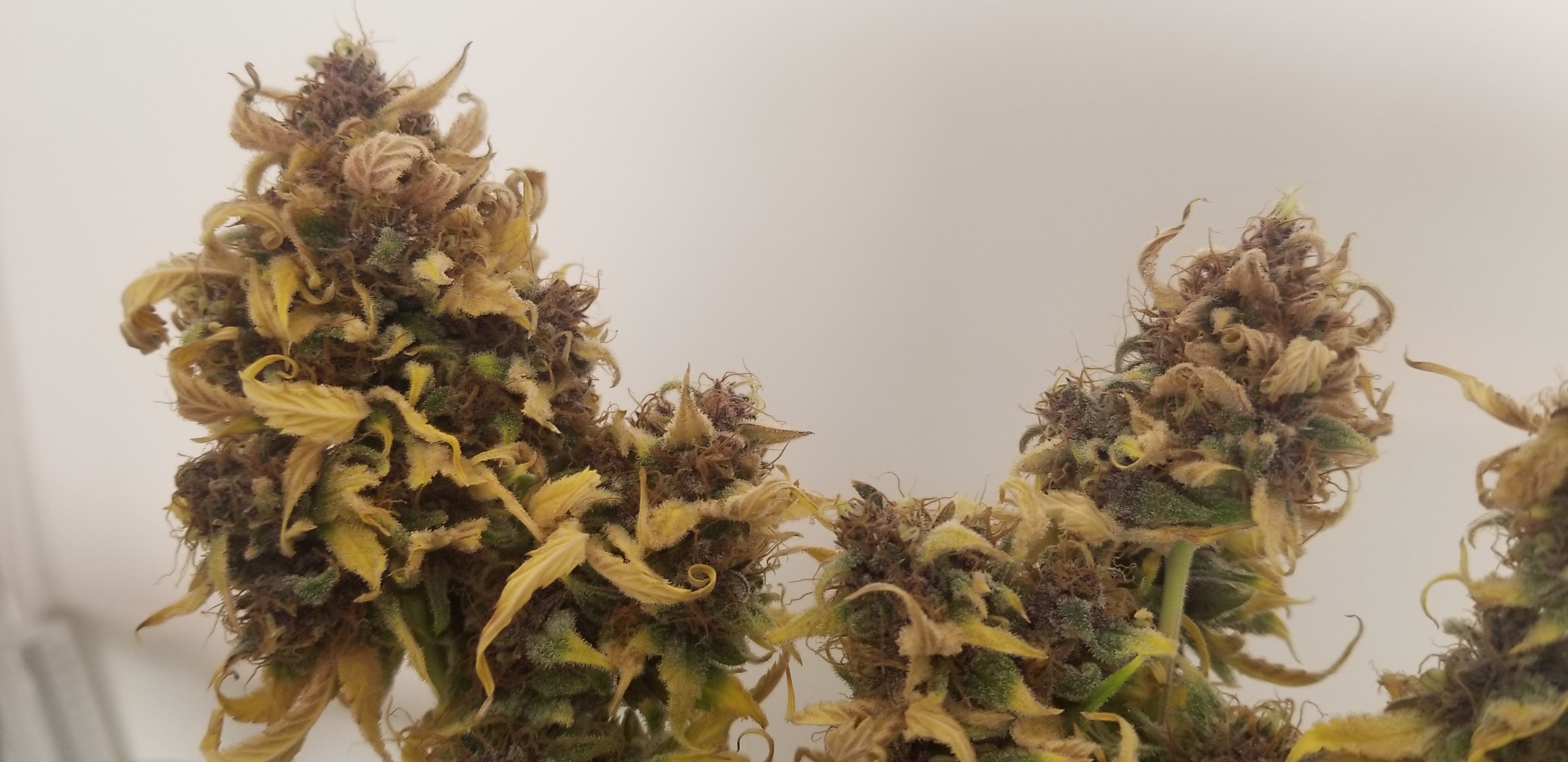 Don't beat yourself up bro. That's a fine harvest considering you got the beans from some random nobody on the net lol! No really. Hey I learned a lot from you being nice enough to grow them out. Them being nute sensitive on top of several other things. Thank you. I love her potency but she's still got a few kinks. Now I wish you had of done a 4 x4 grow like you suggested at the beginning just to see if it was soil related. They still look nice and sticky. Would like to here a potency comparison between scarlet and not scarlet buds by one of your buddies.keeping it green with the soil thing
