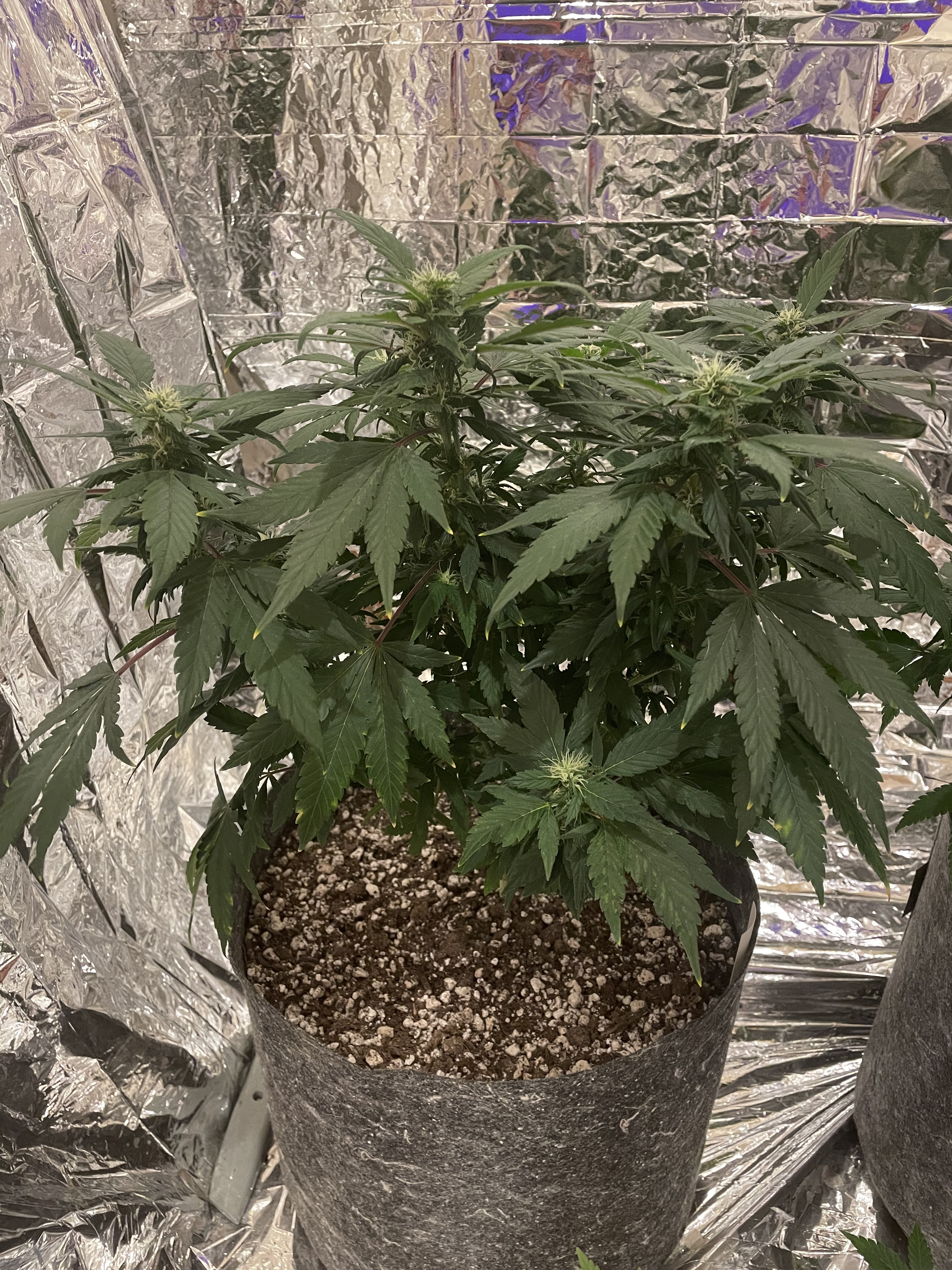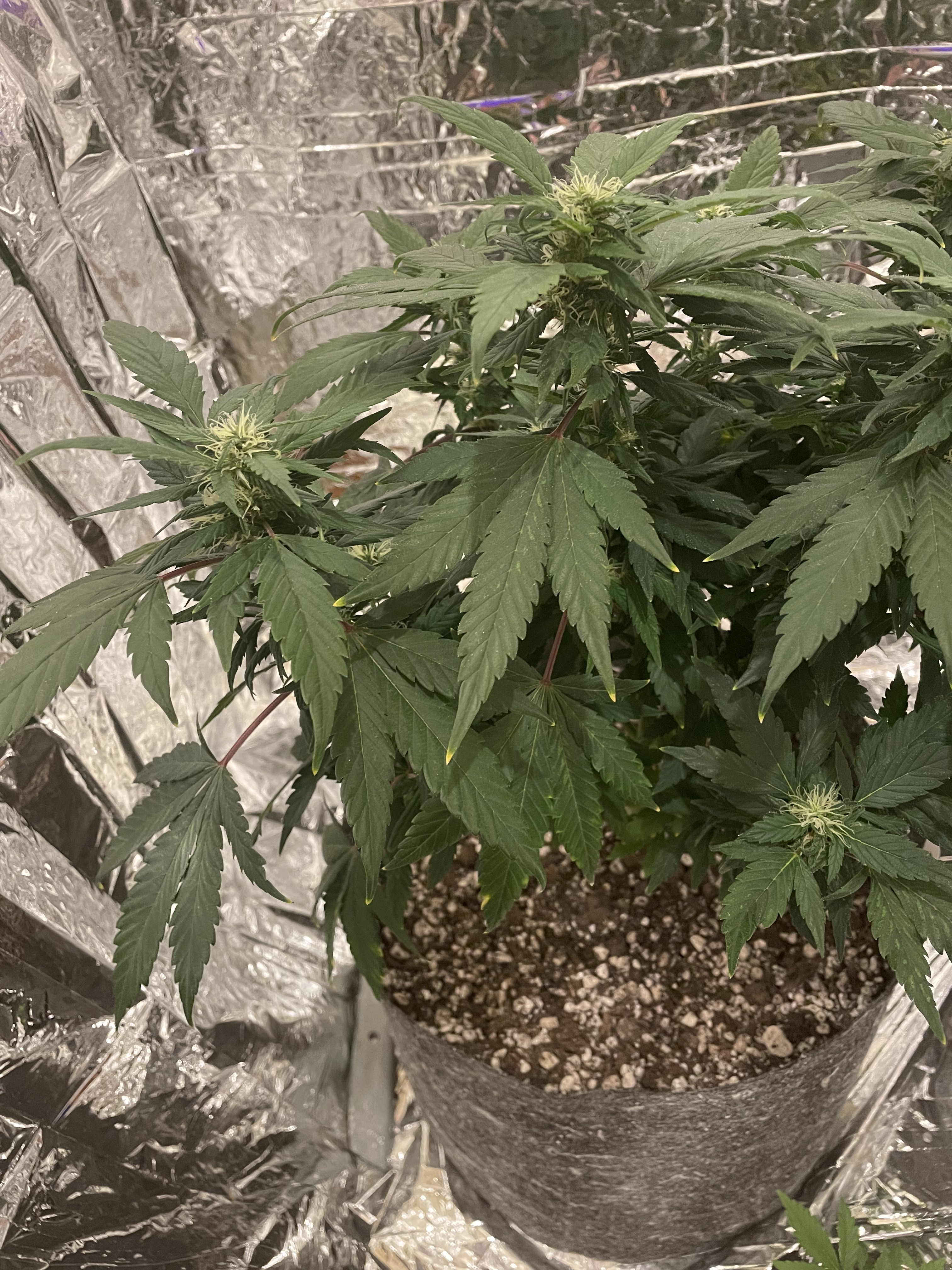 They are a bit darker green than I'd be comfortable with which may indicate some nitrogen toxicity from memory..a bit of nute burn too...but they'll probably go to flower just fineFlower Room: 11' x 7' x 7.5'H, 480w AC, 13gal/day dehumidifier, 1.5gal ultrasonic humidifier, 60gal (27gal usable) nute tank, 16" pedestal fan & 18" wall fan. Lighting and climate automated. Hand watering.