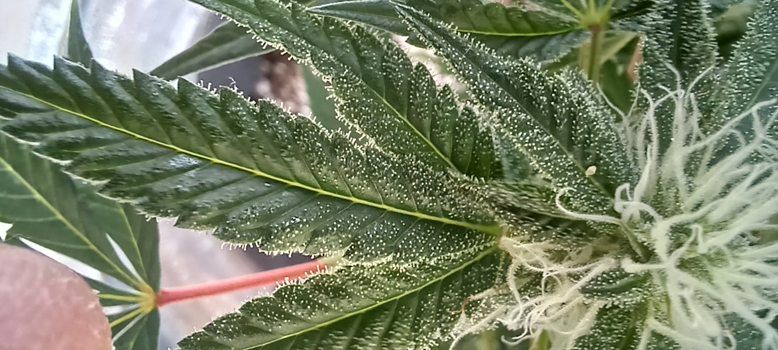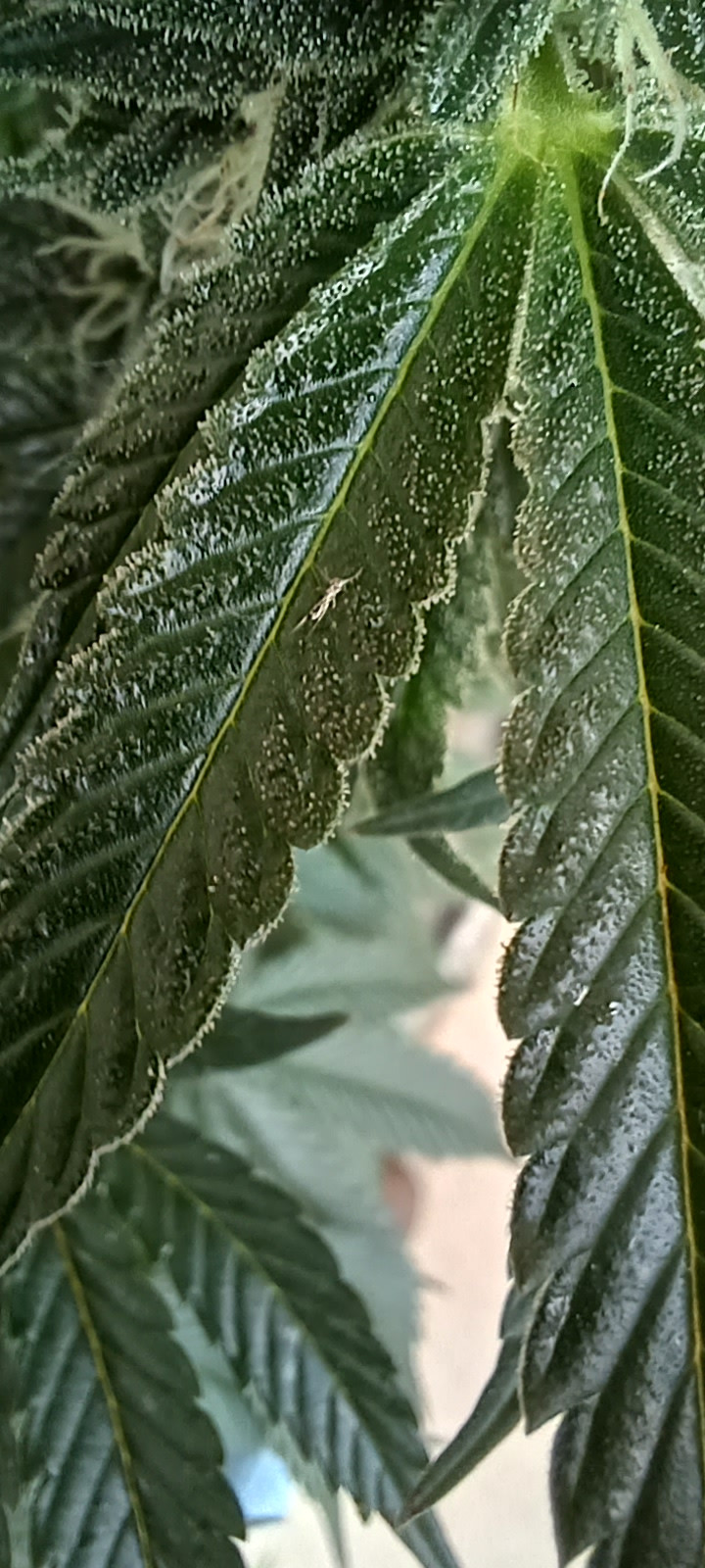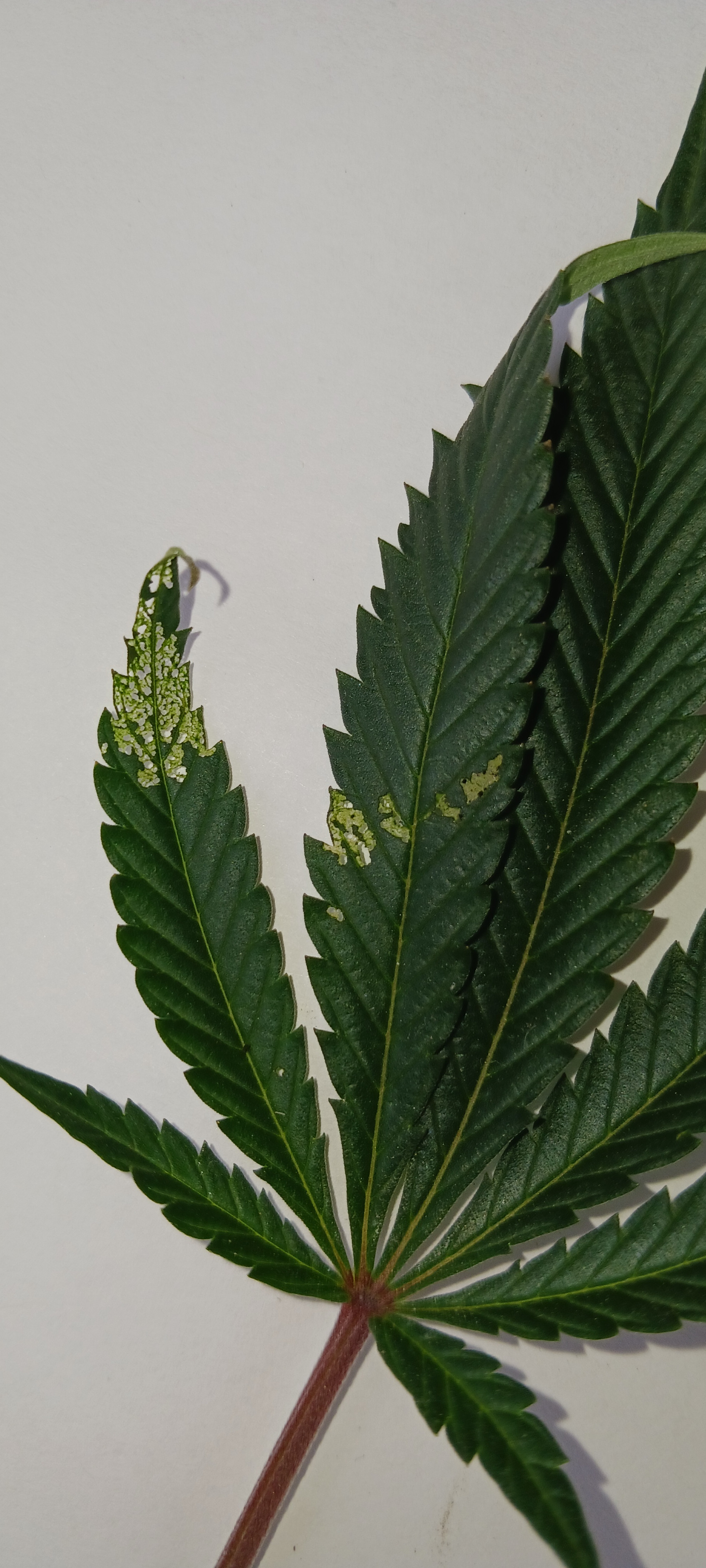 So yesterday I noticed the scary damage to some of the leaves of hindi kush in makeshift tent area... mites or some other pest that I am not really sure. At about 70x under the microscope I've seen what looks like little sperm shaped translucent larvae maybe.