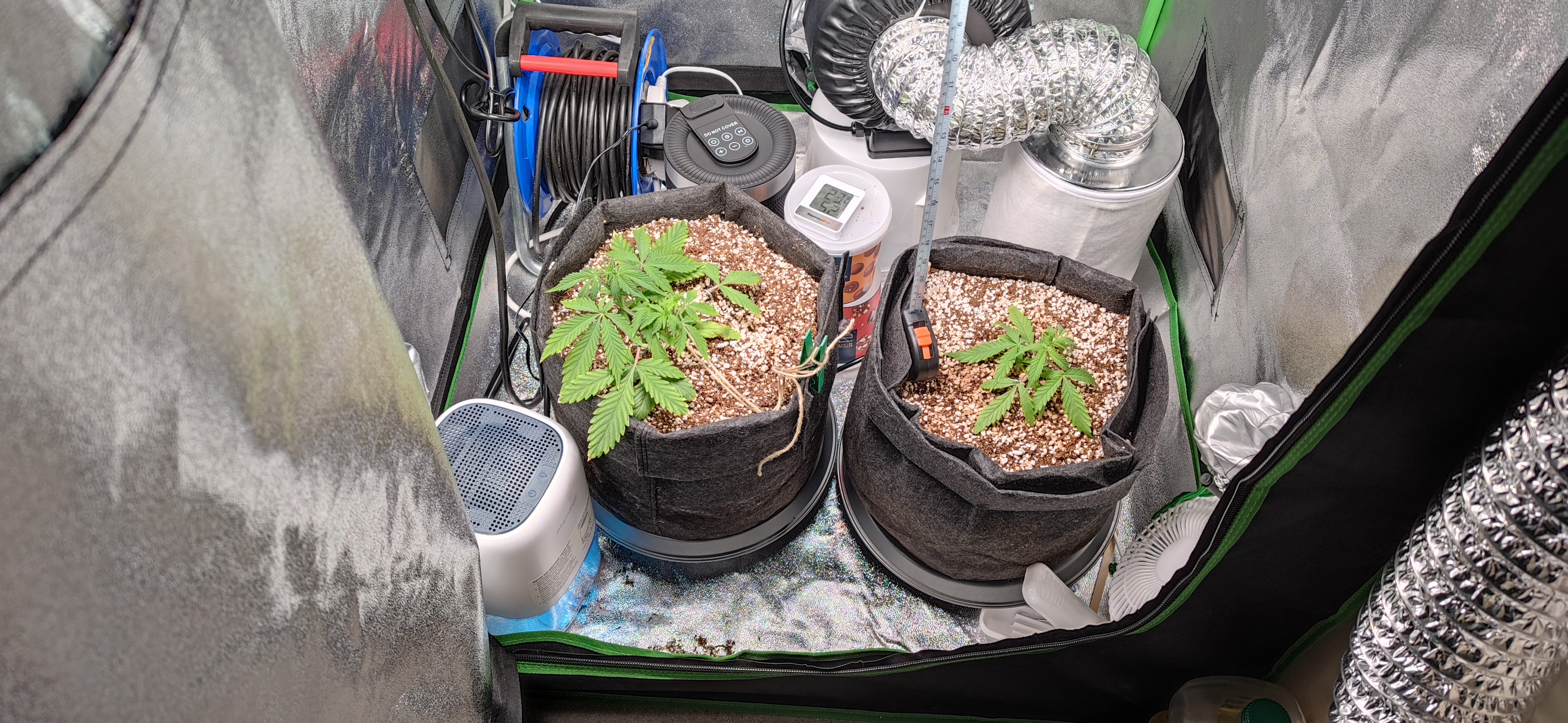 I have two autoflowers, titled big and small in the pictures, but they're both very small. I stunted them with overwatering during the start and ... they're still small.