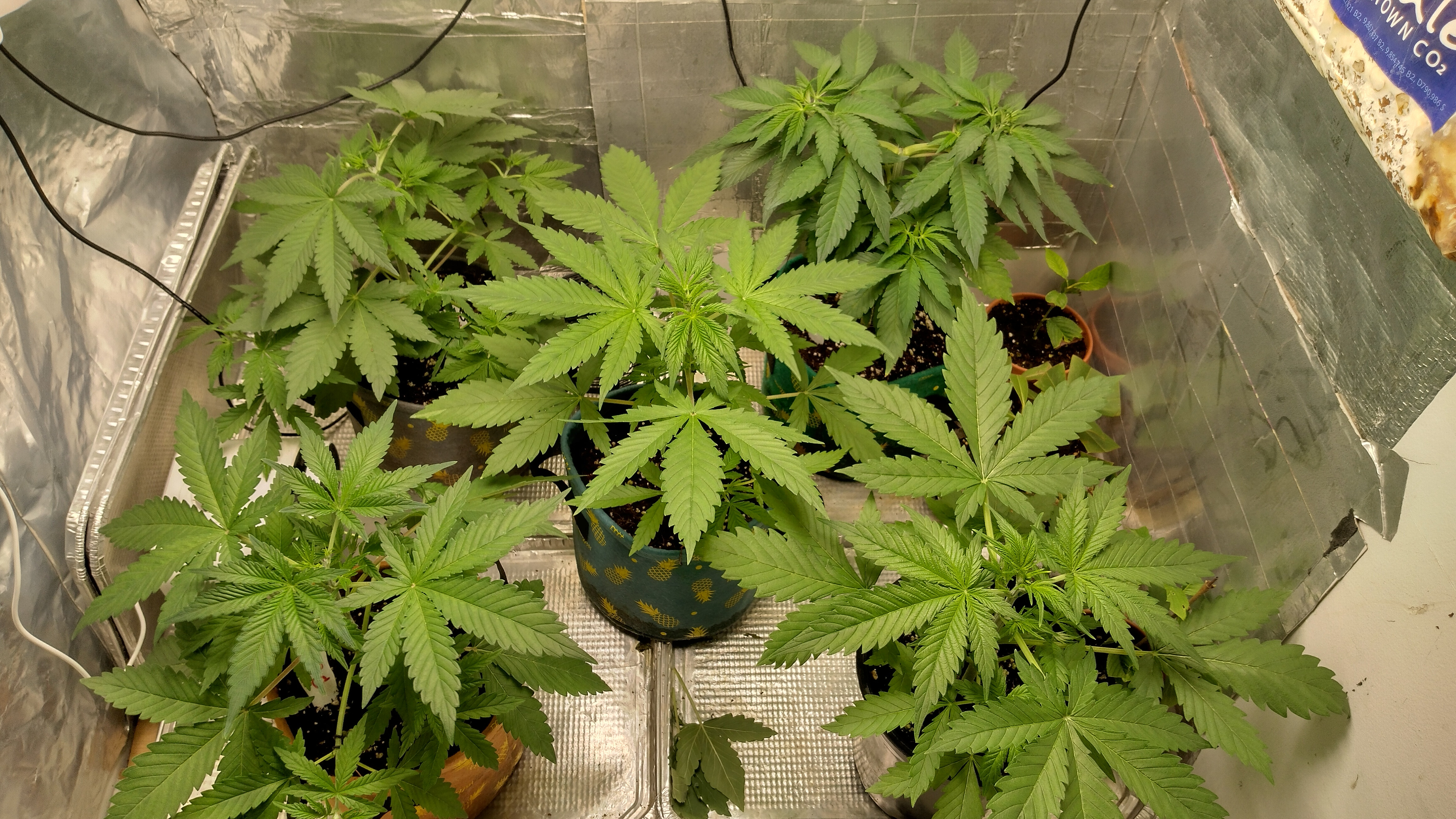I have struggled with vegetative time since i do the indoor thing now. Patience isn't my strongest characteristics. Is there a real key to the 12/12 switch. I seem to ruin autos or any sort of delicate strain. I have 5 now in veg. From Seed 2 at start date 3/6/23(day 43) - and 3 at start date 3/20/23(Day 29) Growing in coco, perlite 1 gal fab pots(move to 3 gal fab when switch)., berg mans starter/PH 6.3 in-6 out.. MH TS600-18-24" temp/RH extents so far 68/79f 48/80RH. I have topped 4 so far and they all healed up nicely.(5th node) They are at about 10-12 inches from dirt. Left the Pure Indica from seed supreme alone. Think ill plant that one in the city hall.LOL In your opinion do these look like they are ready to flip the switch?? Thanks Dirty