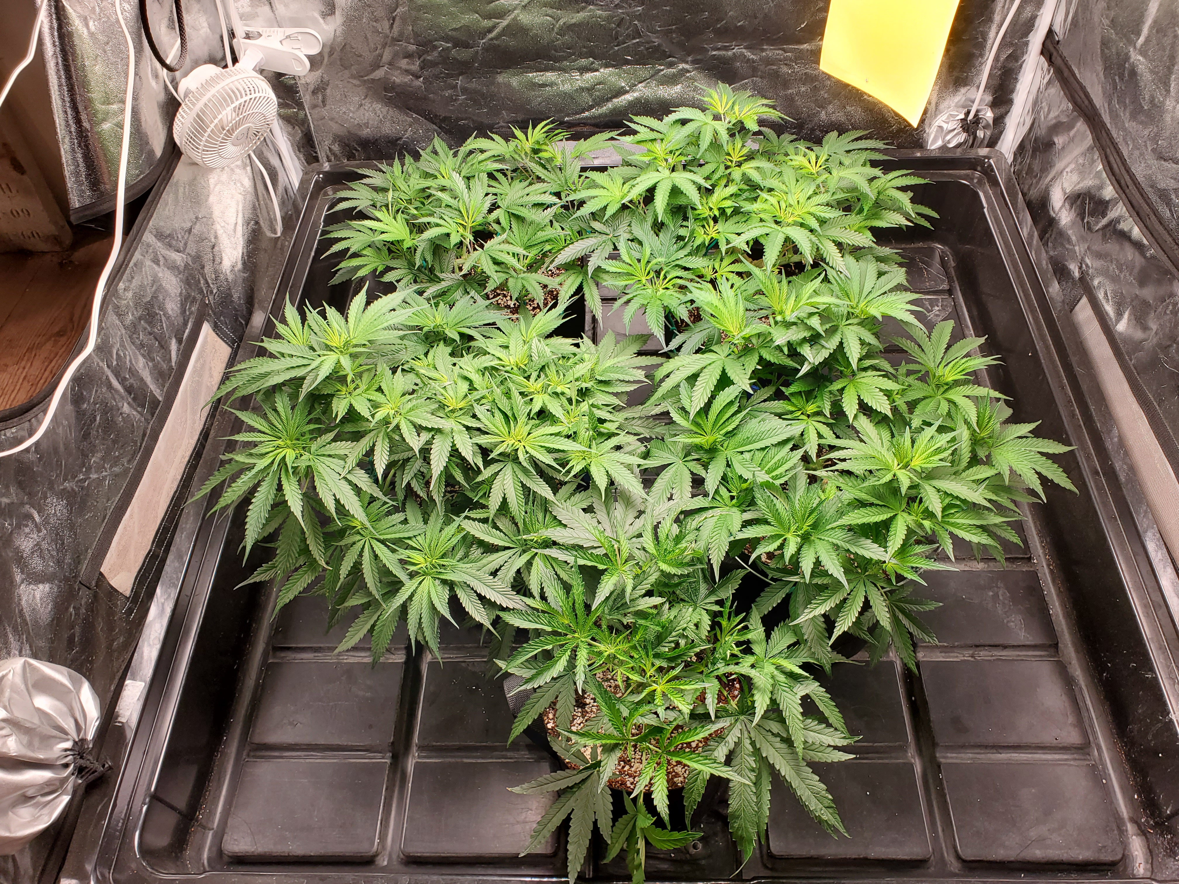 Not flipped, waiting their turn to explore the world. It has been cold and rainy for the last 4 weeks, not good for outdoor growing. But what did I do? there is one more tray that I left in the flip tent. I wanted to see what would happen if I flipped a plant this size. Time to find out.