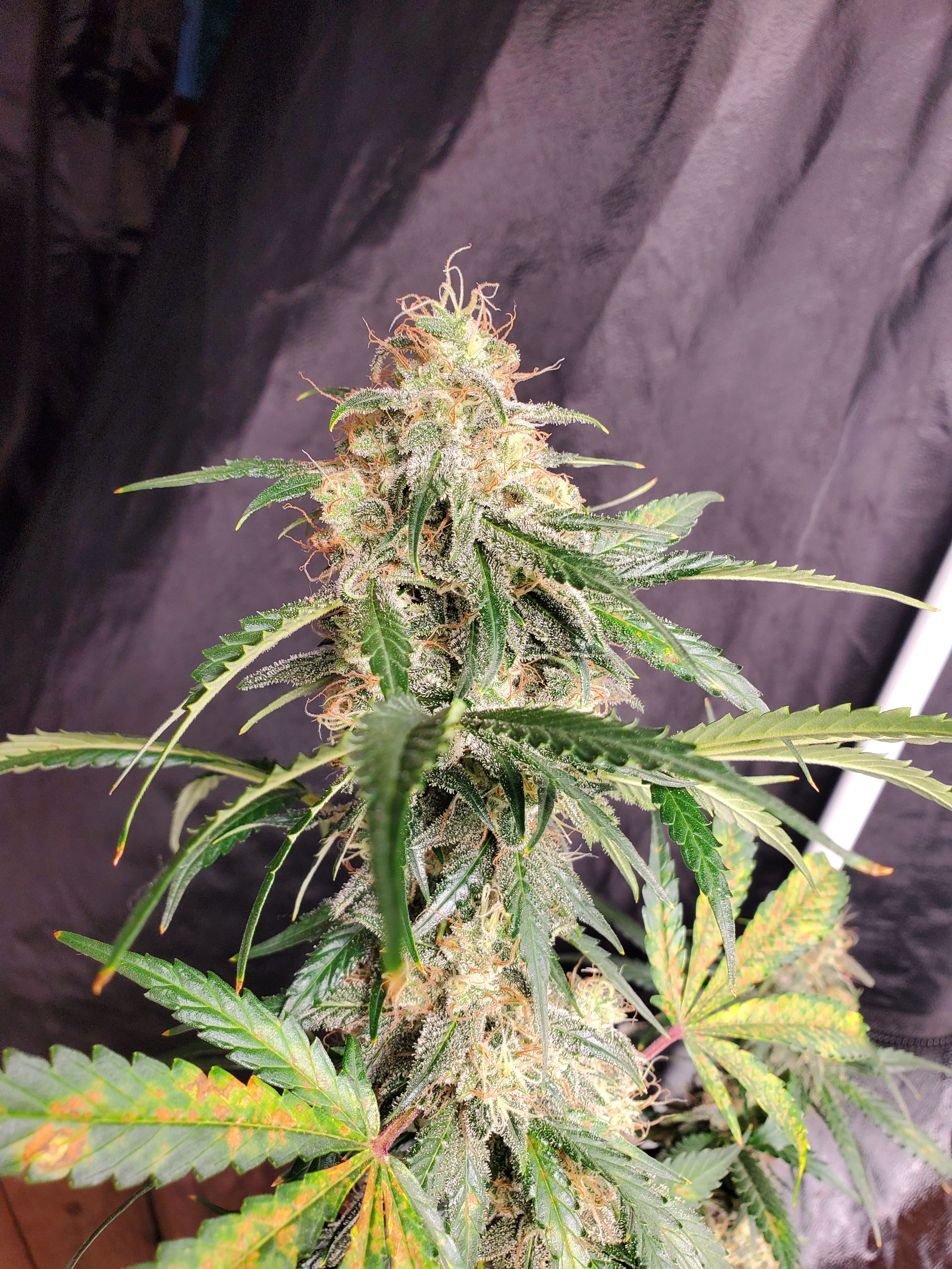 it's rapidly loosing it's stored up goodies. I clipped a rock hard lower bud just for a taste this a.m. won't smoke it for a few days let it dry. Trichs are cloudy still young to harvest. Are you still giving bloom to yours Ckbrew? Hey do you brew your own beer?
