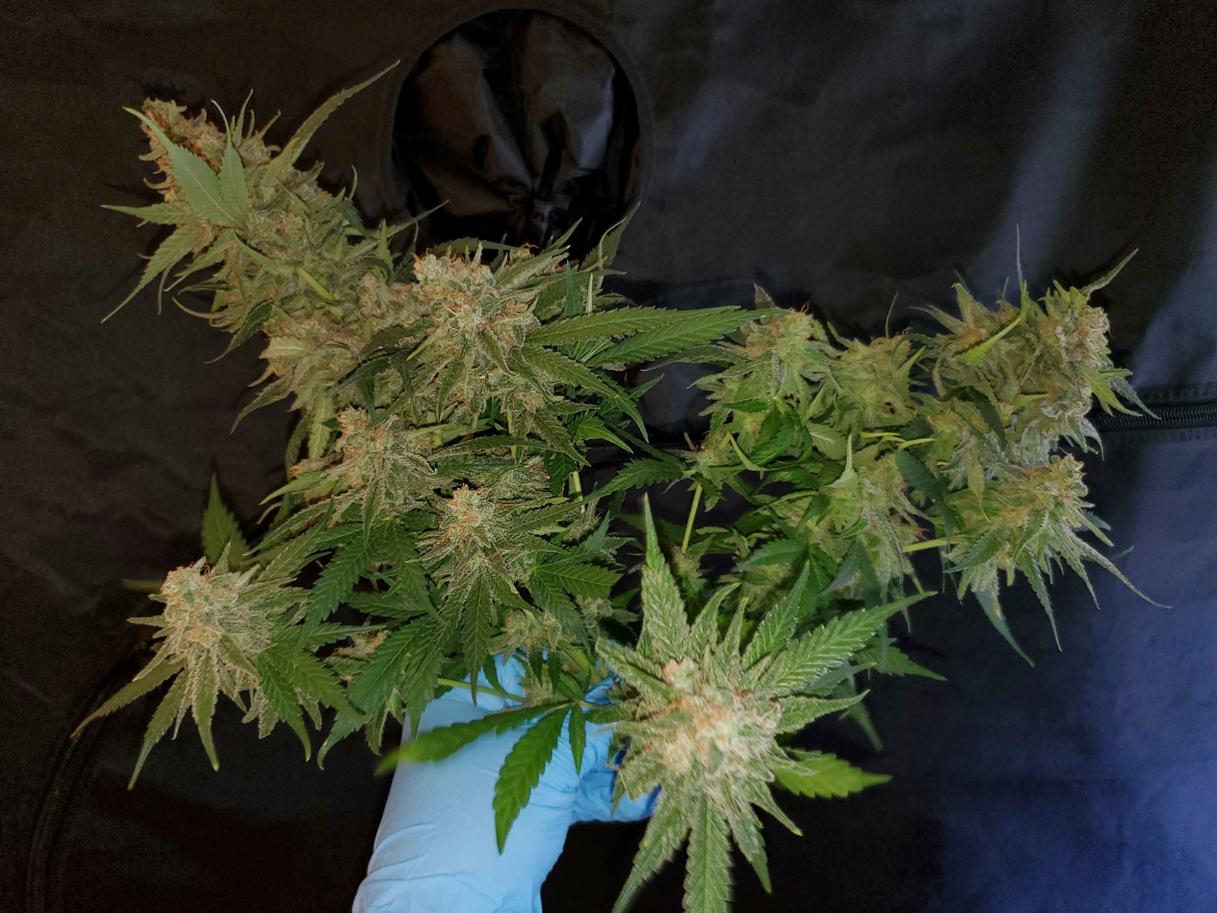 A follow up on the larf on the bones grow out. This is one of the blue cheese plants. There were two. After harvesting the large branches I let them grow in the tent for another 2 weeks. The increase was well worth it.