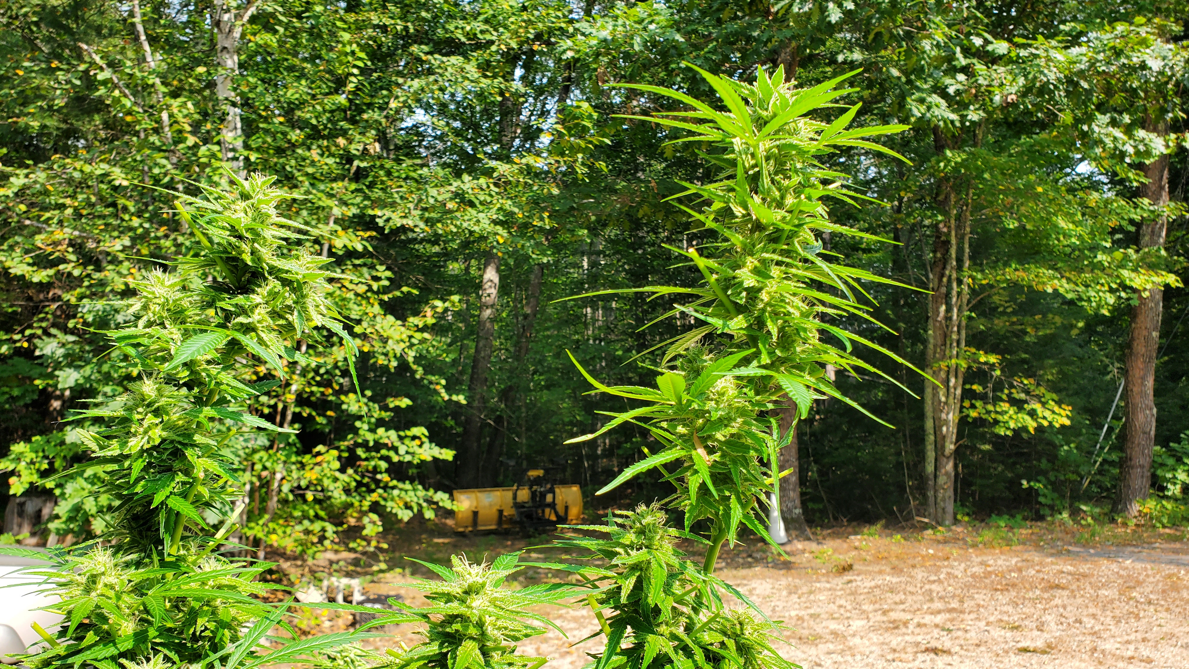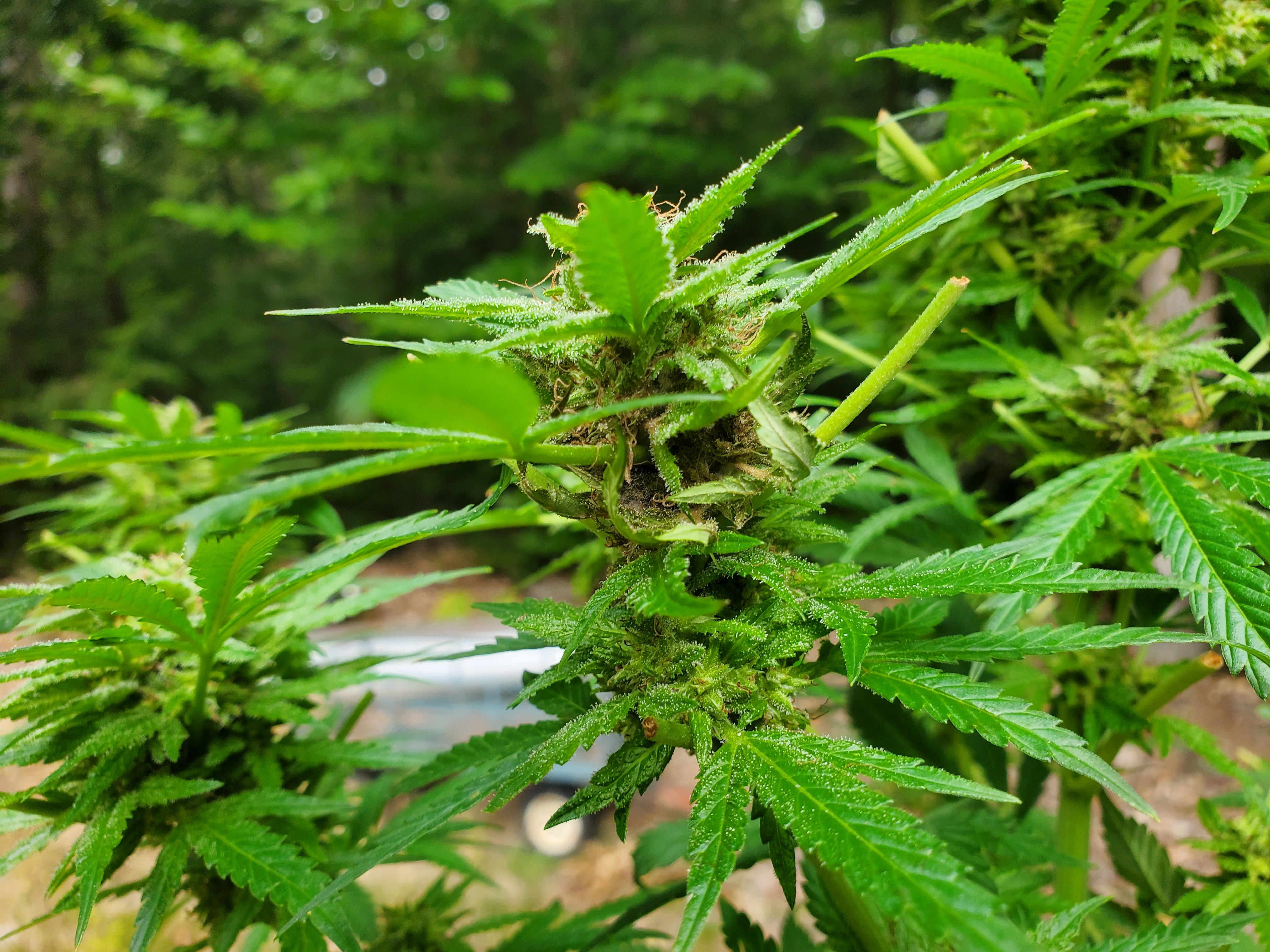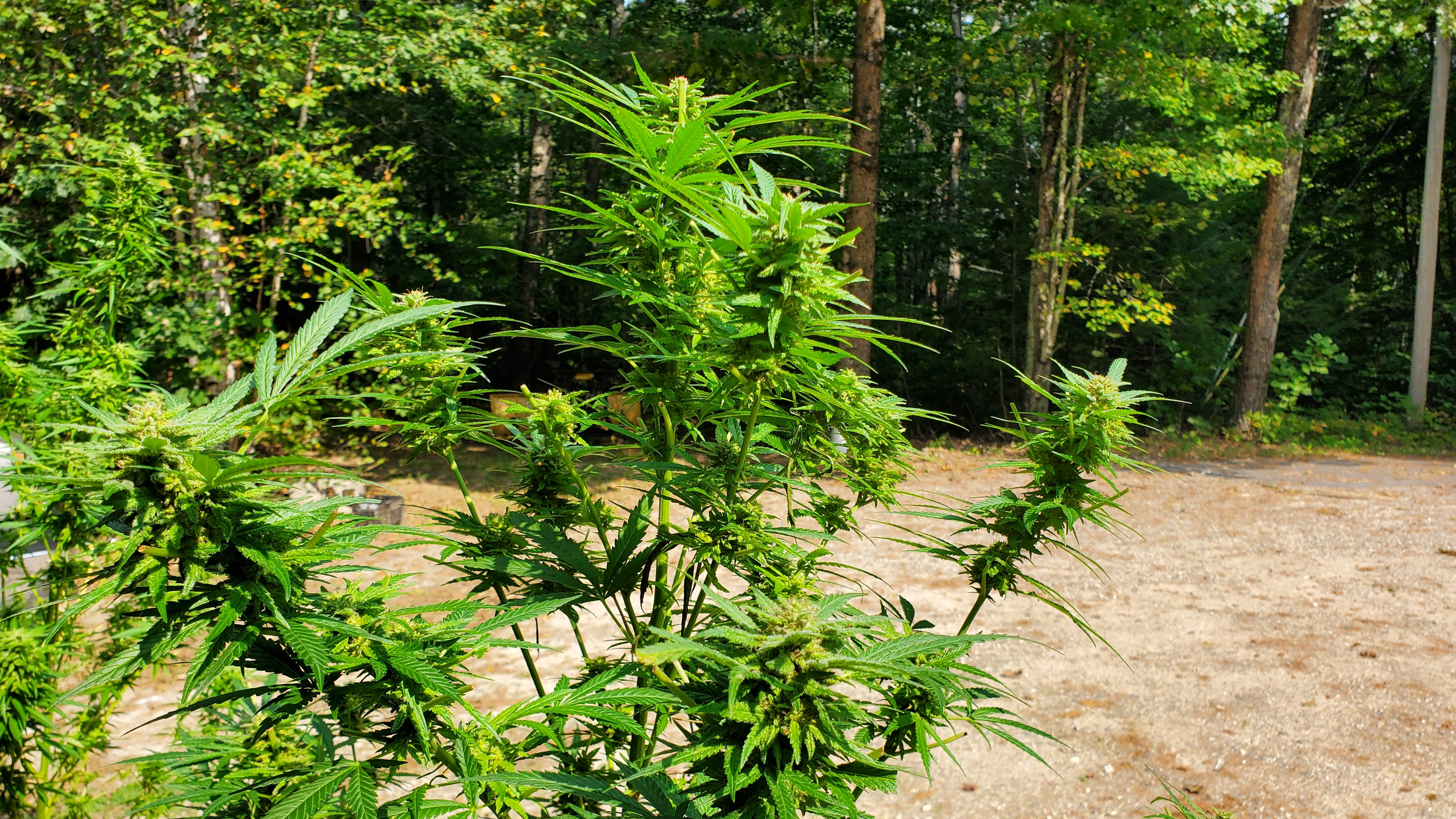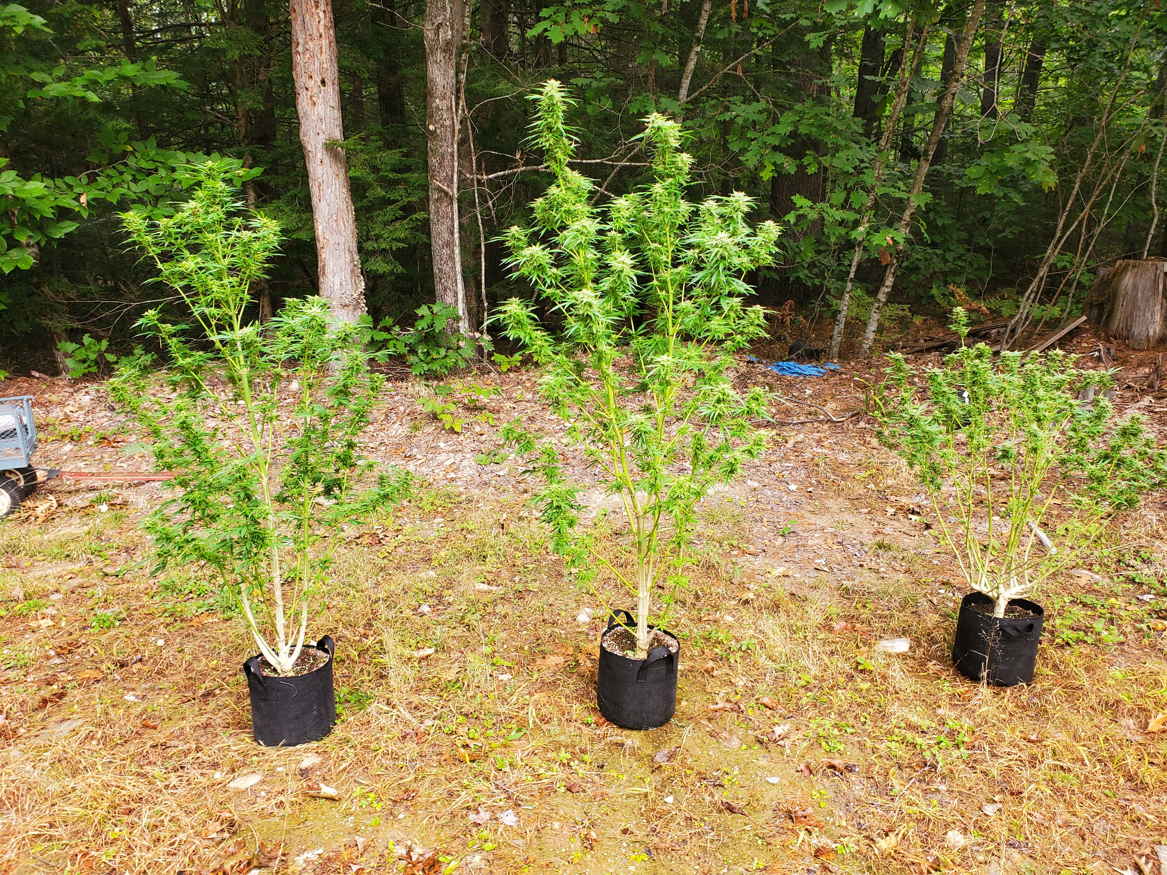 The outdoor plants are still chugging along. The fan leaves have been stripped, and there is a daily bud rot screening conducted every morning and evening. In the barn at night and outside in the day. I'm really pushing it having them out so late but as can be seen they just are not ready for harvest yet. The race is still on who will win, the buds, the cold or the rot?