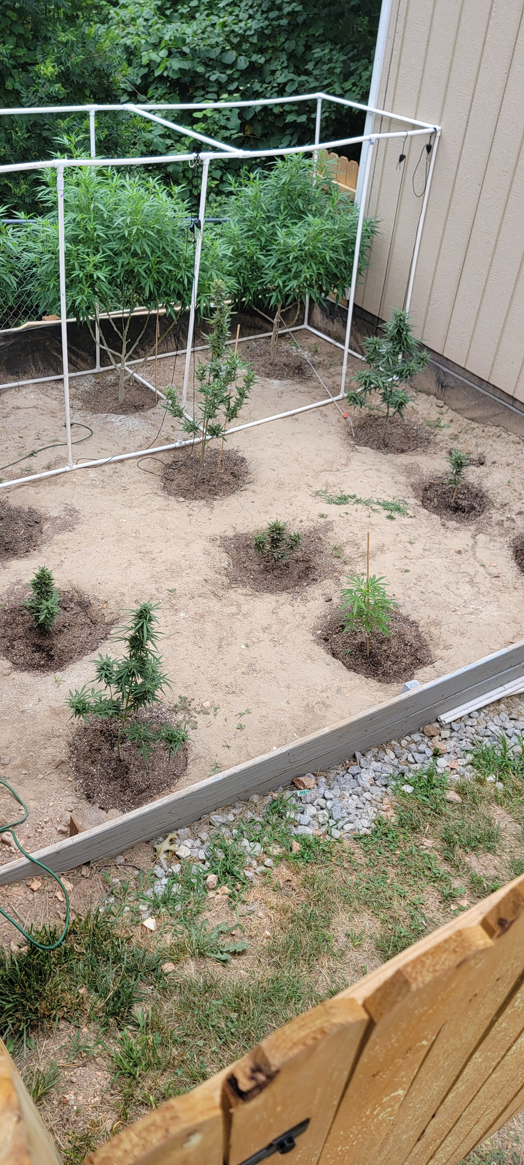 Howdy outdoor grow buds everything is going well with the garden thanks to the fine weather we're having here in So.Oregon. Temps are creeping up today will be 90f and will stay about that for awhile. First pic is the Freak show she's gaining height not showing any preflower but she's healthy 2nd pic are the 4 autos and in the wagon. All autos in early flower I did'nt top them they've had it kinda rough being outside from the beginning so i really don't see at this time anything positive about placing them outdoors so early without getting them big indoors for a month under lights then tossing them into the sunlight. Anyway it is what it is I won't start them like this again. 3rd pic are the photos nice managable Indica strains short and hopefully heavy later in the season.