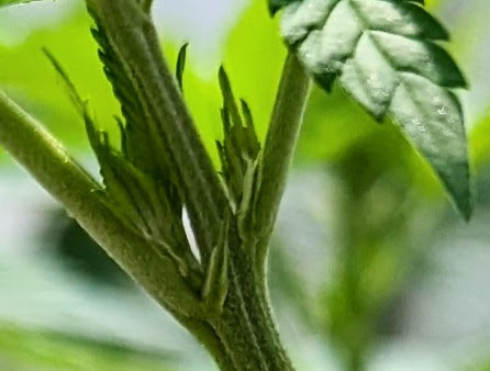 Just barely, pistals are starting to appear at a few nodes. New growth are appearing at the same nodes so maybe that means some big colas will form?